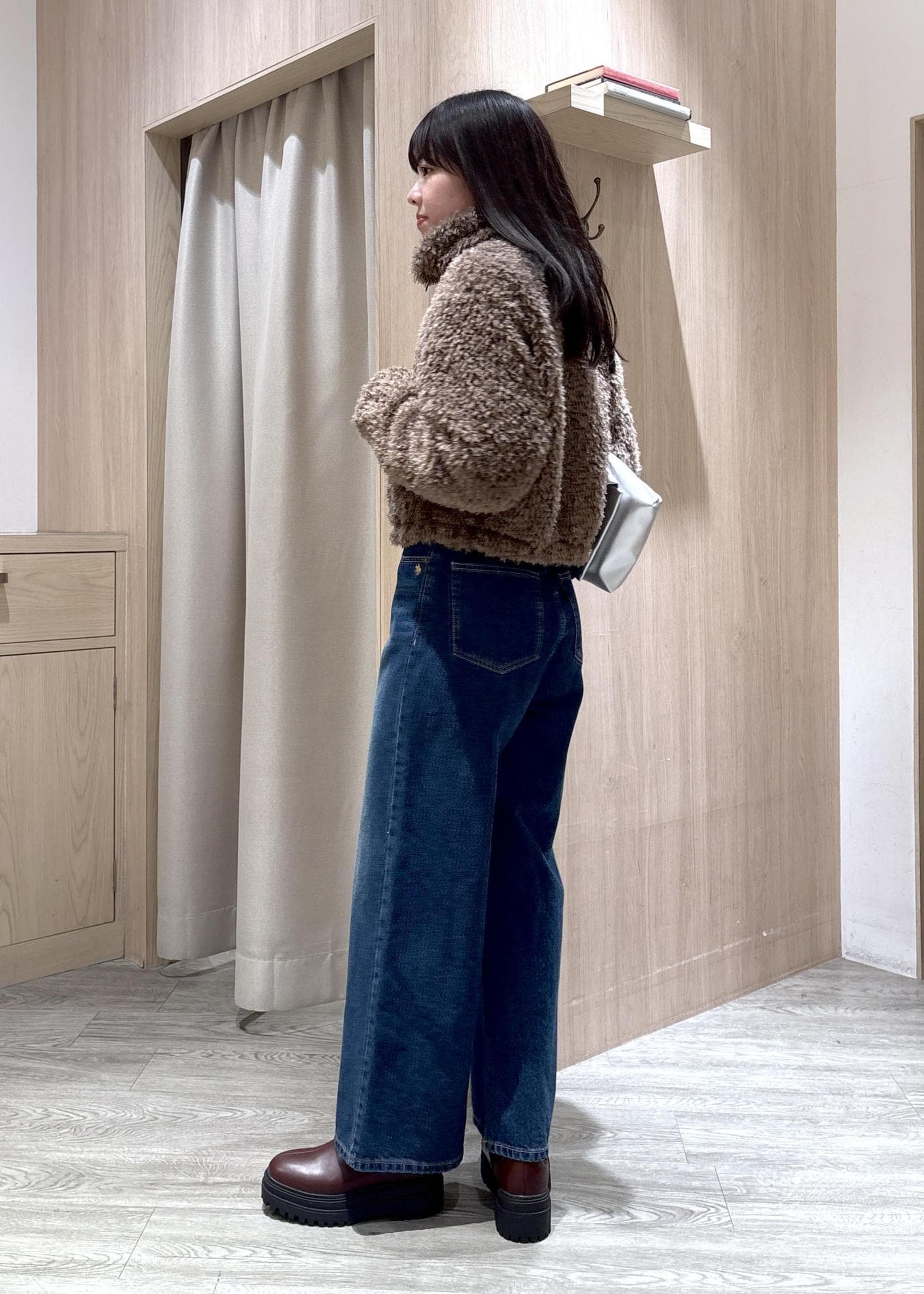 高身長の方には少し短く感じるかもしれませんが、フラットシューズや靴下を見せて着ると可愛いです。