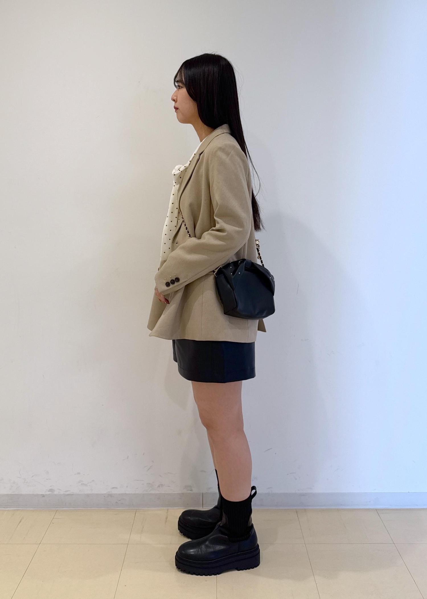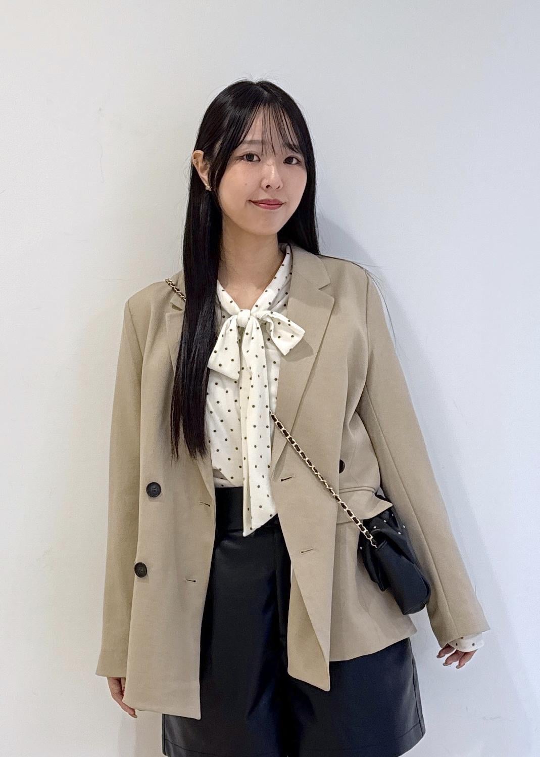 リボンのベロアインナーに、リボンのバッグでリボンが主役のコーデに♪