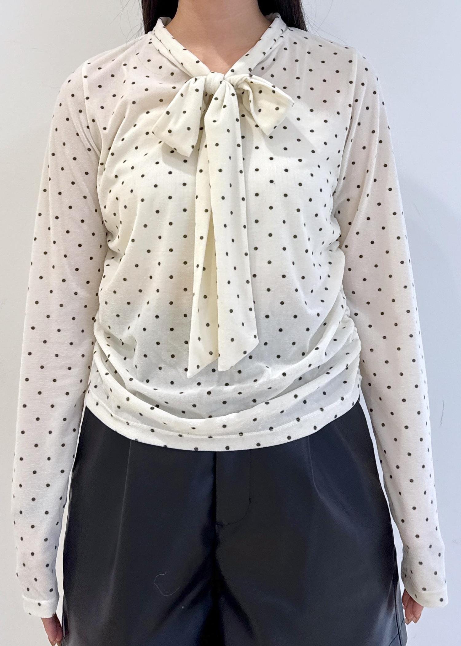 VISベロアボウタイドットカットソーオフホワイト / F¥4,389レビュー1枚で着ても可愛いです。カーディガンなどとレイヤードすると、さらに可愛く、ベロアでしっかり暖かいので真冬に着れるのも嬉しいです。リボンも大きすぎないので結びやすく、程よくアクセントになってくれるサイズ感です