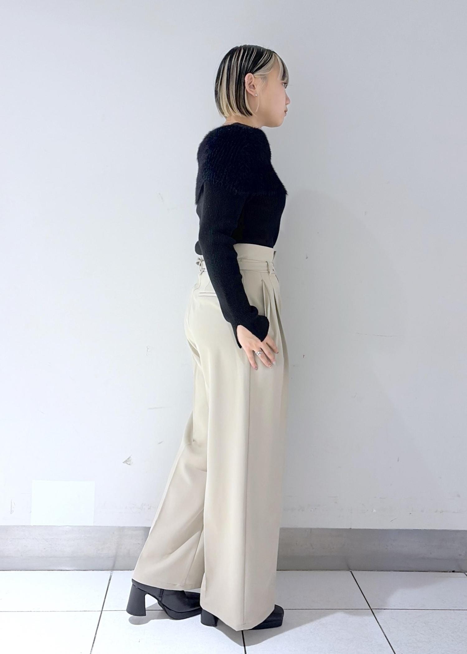 VISベルトディテールタックワイドパンツ/イージーケアベージュ / M¥6,589レビュー160cmでMサイズを着用しました。