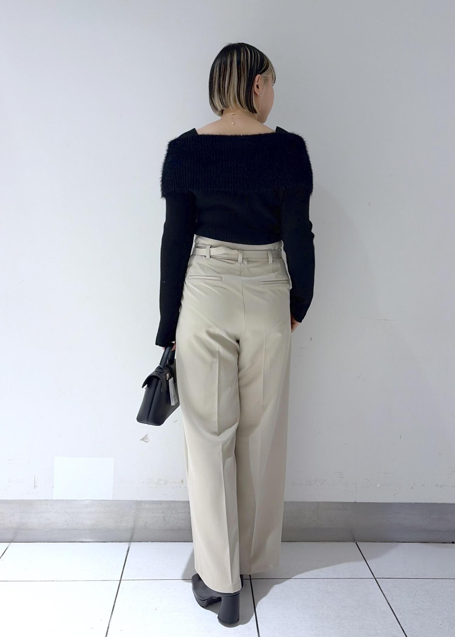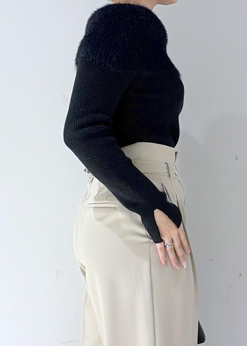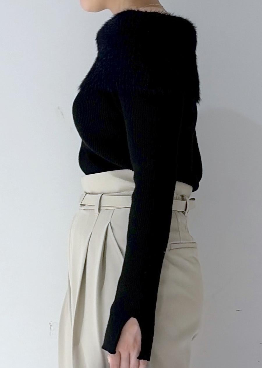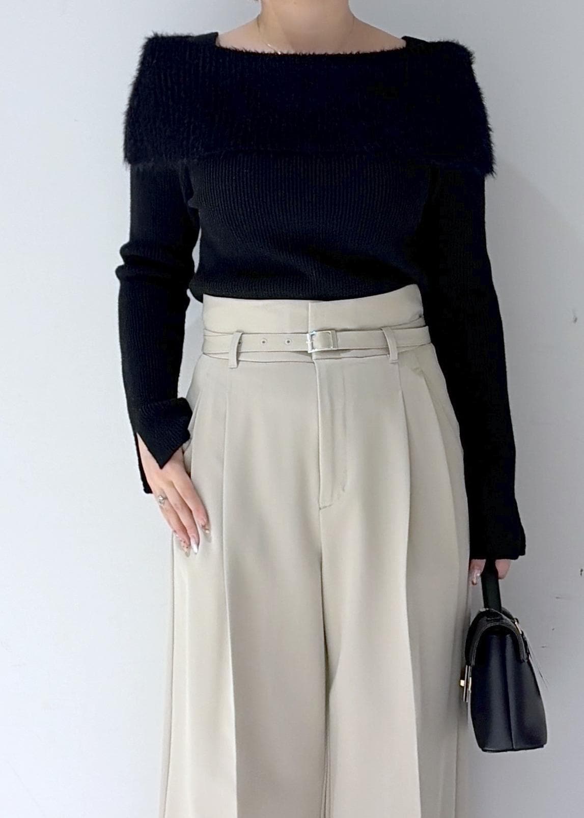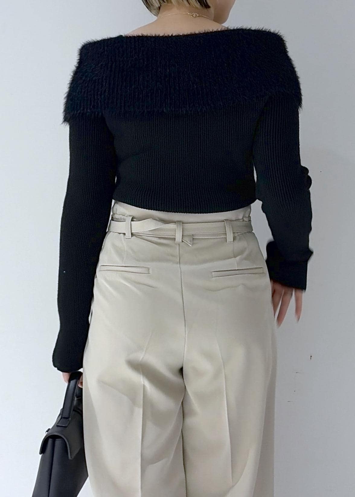 NEW!VISフェザーヤーンオフショルもちもちリブニット/イージーケアブラック / F¥5,929レビューフェザーの部分が冬らしくとても可愛いです♡