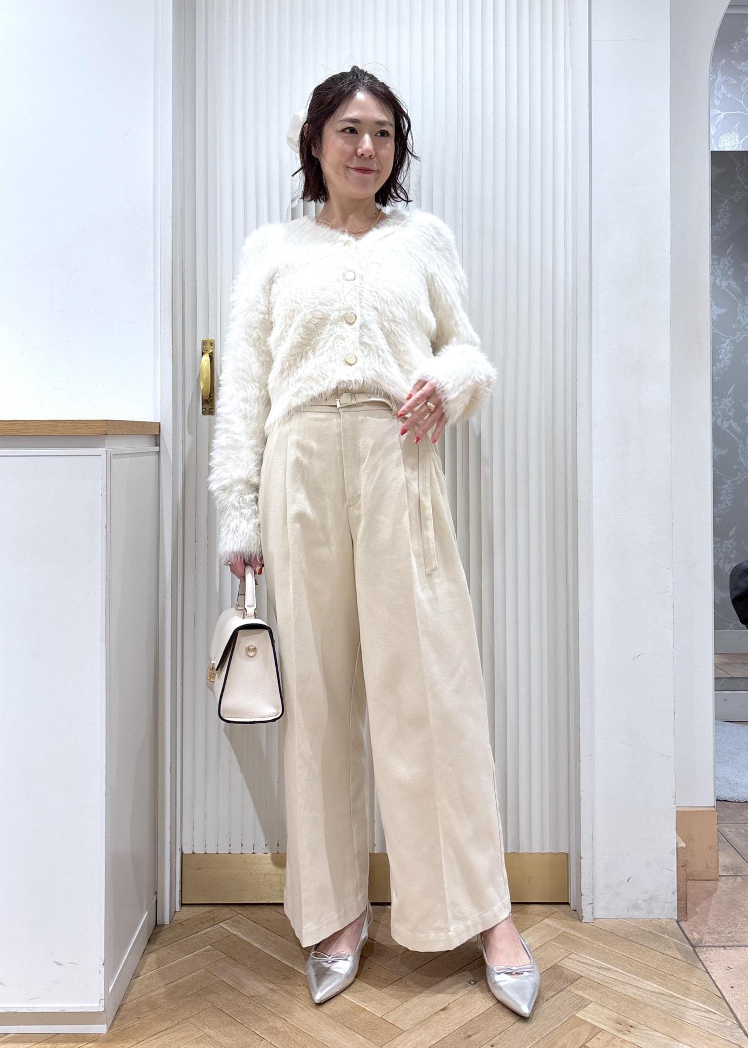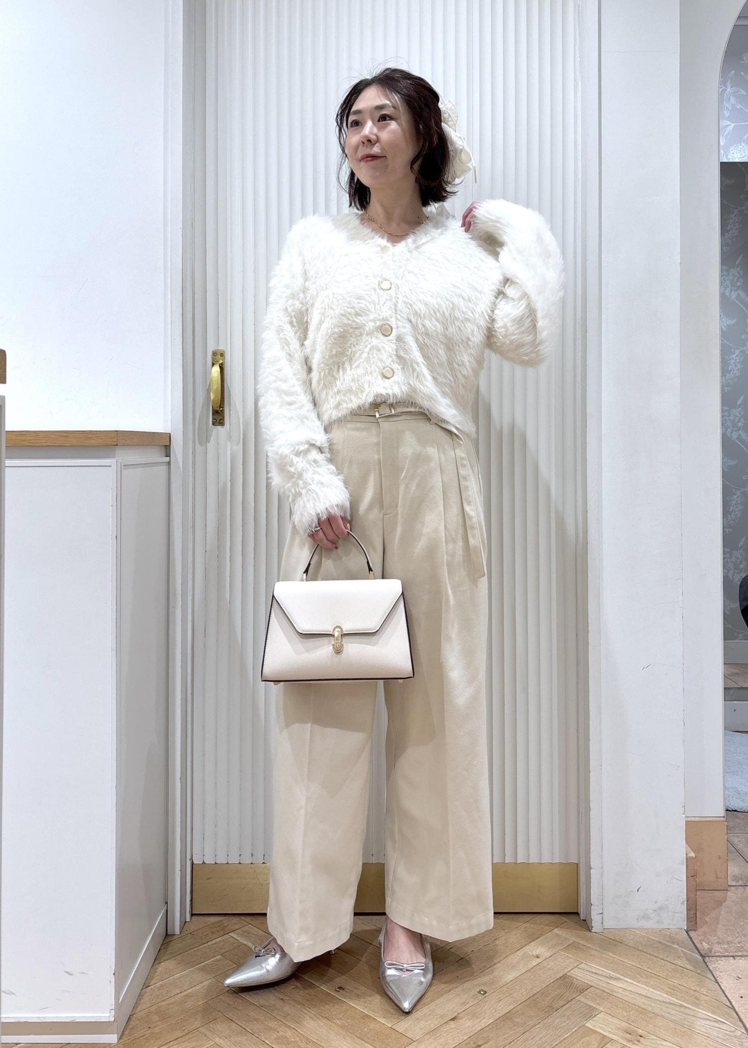 VISラビットファーVネックカーディガン/イージーケア・WEB限定カラーオフホワイト / F¥5,929レビュー毛足の長いファーのカーディガンですが、触ってみるとそんなに厚地すぎないのでアウターの中にも着やすいです◎