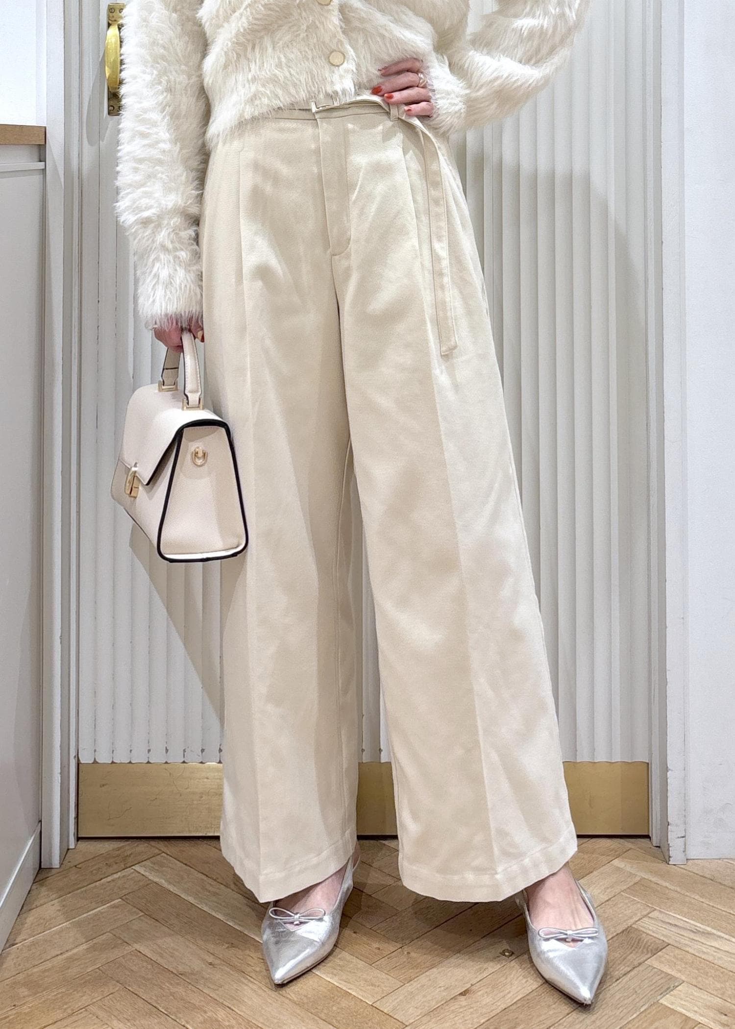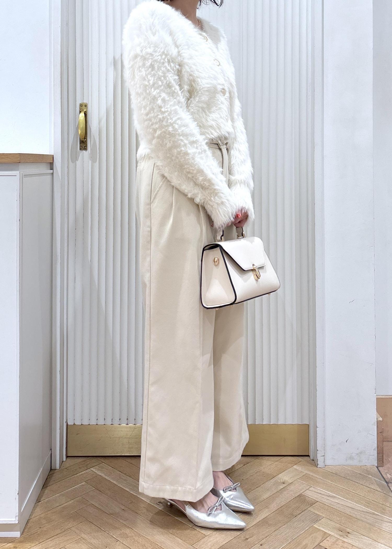 VIS起毛ウールライク版ベルトディテールタックワイドパンツキナリ / M¥6,589レビューハイウエストパンツの冬生地バージョンです!あたたかみのあるウール見えする素材です。ハリがある素材でハイウエストなので腰回りのシルエットがとても綺麗に見えます!