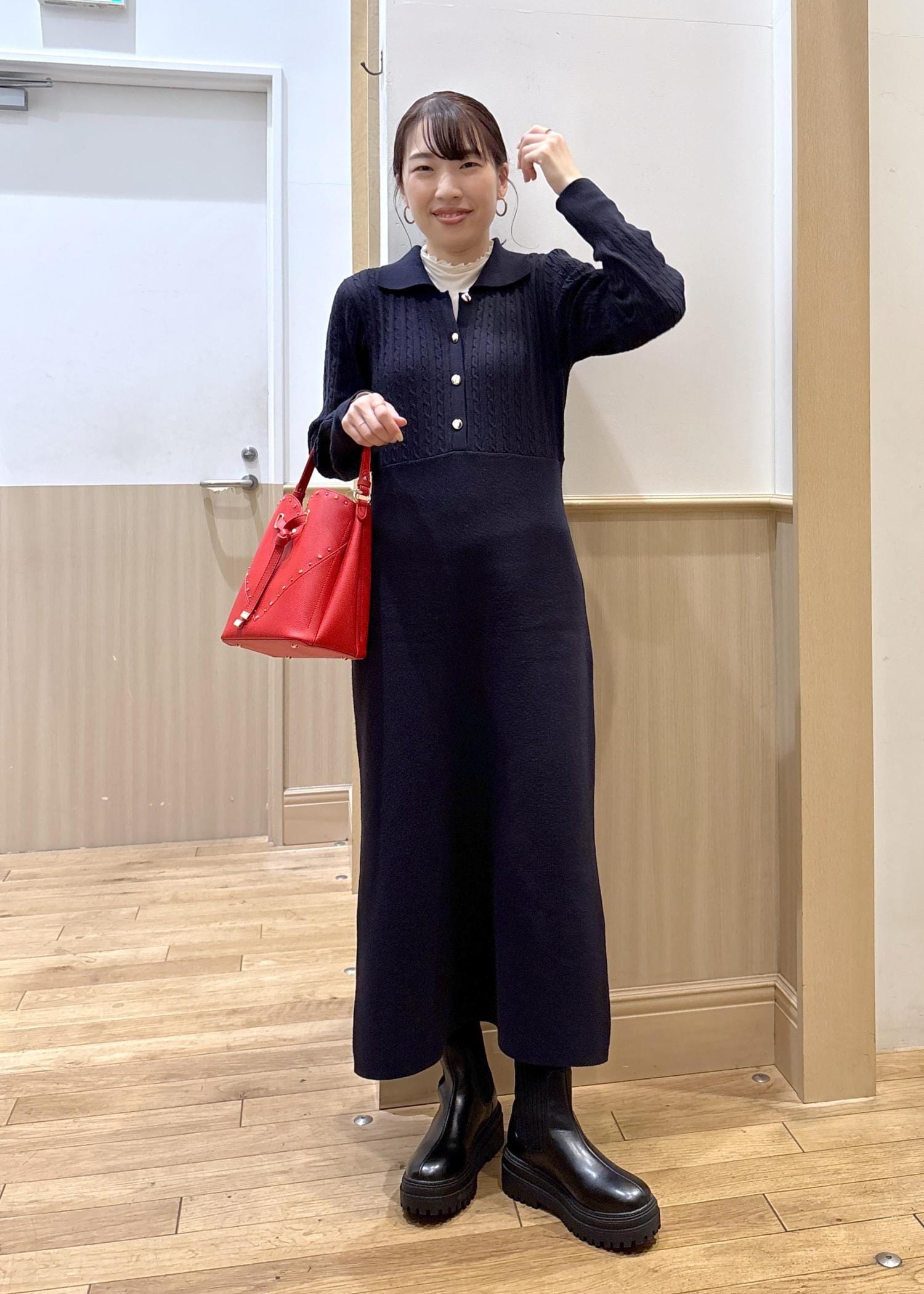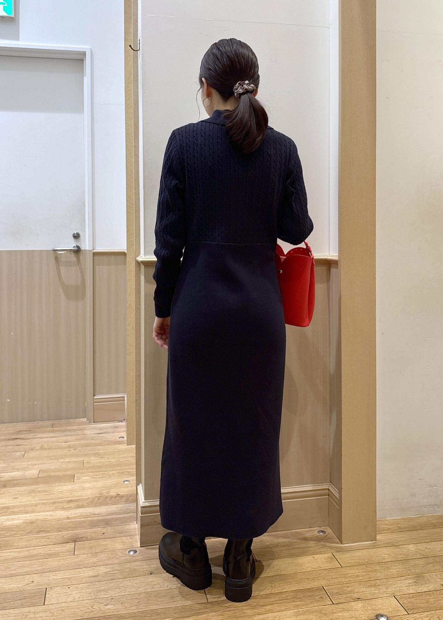 VISポロケーブルモチモチニットワンピースネイビー / F¥8,899レビューウエスト高めの位置で切り替えが入るので、