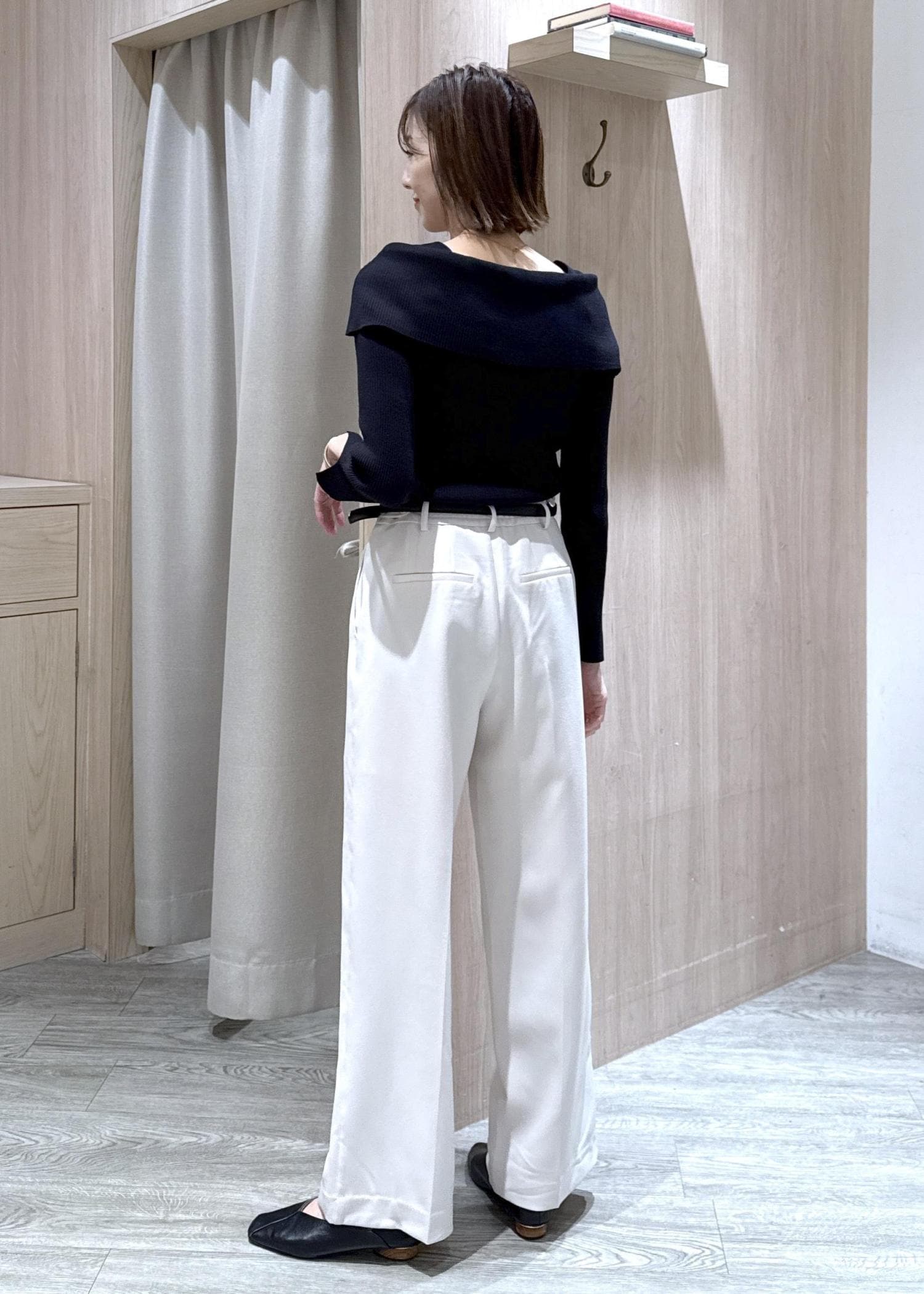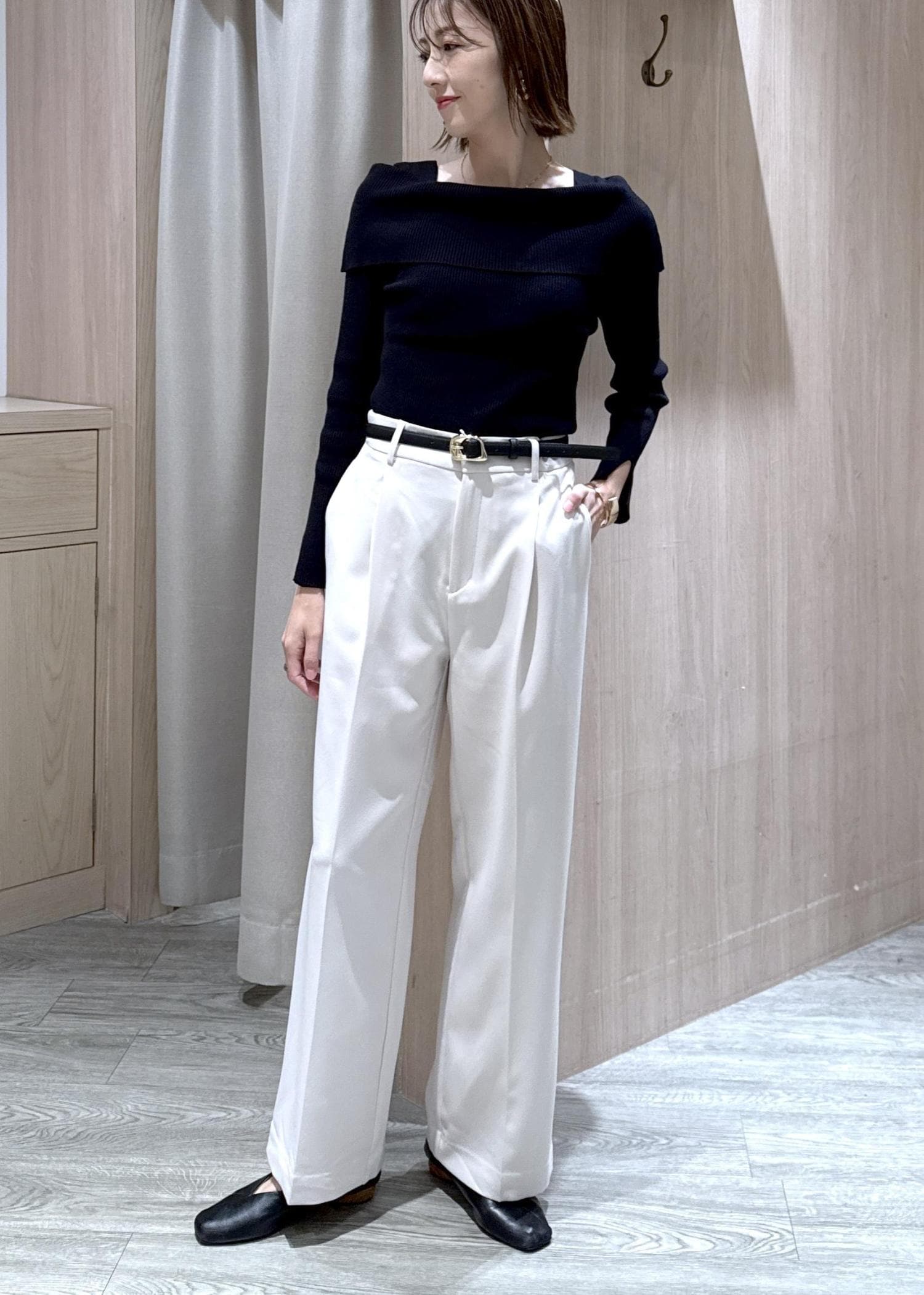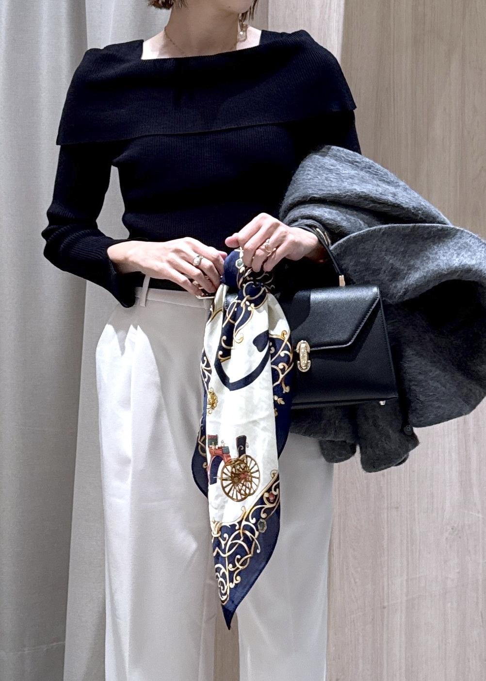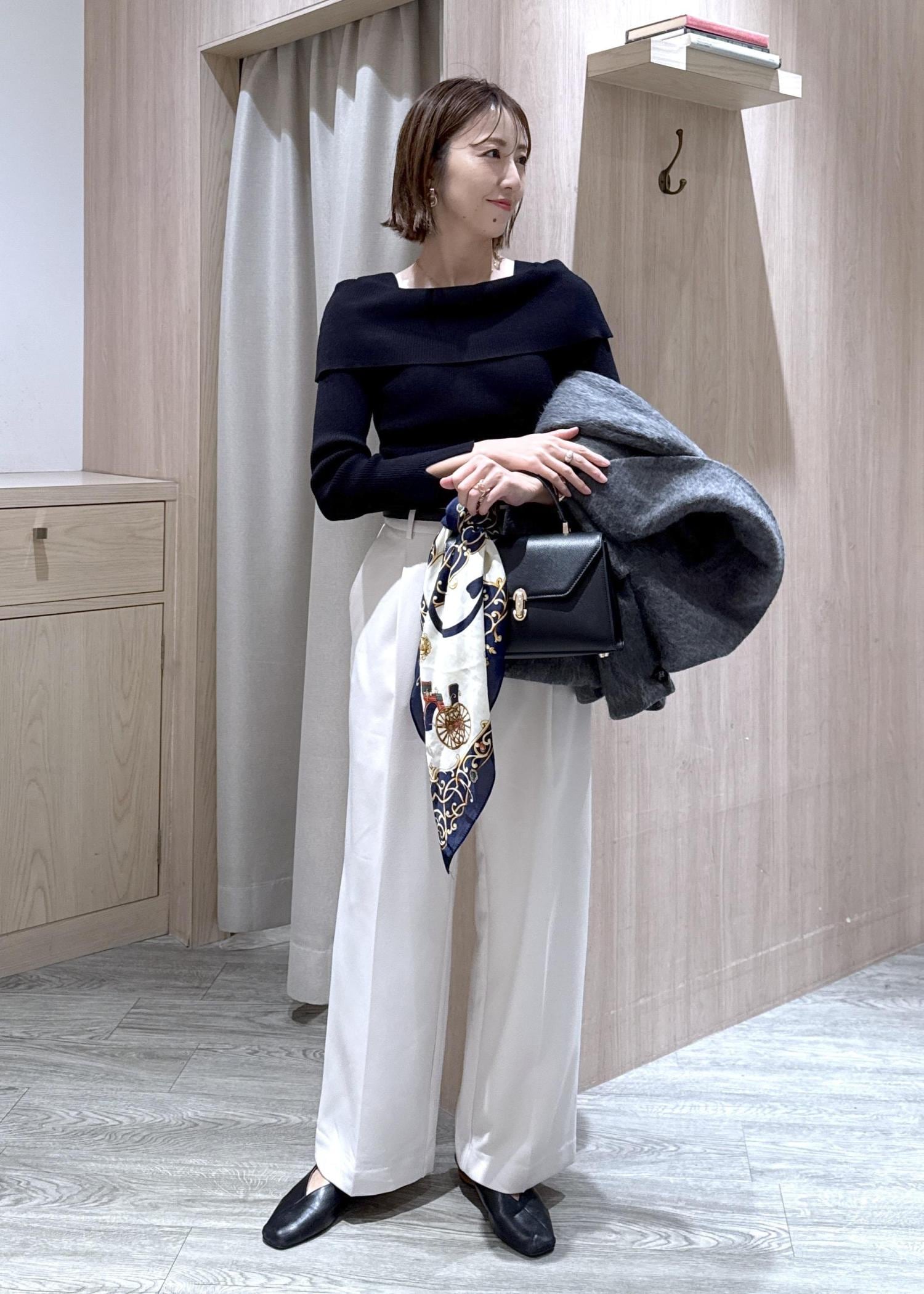 大人気のオフショル風ニットをモノトーンでコーディネート!