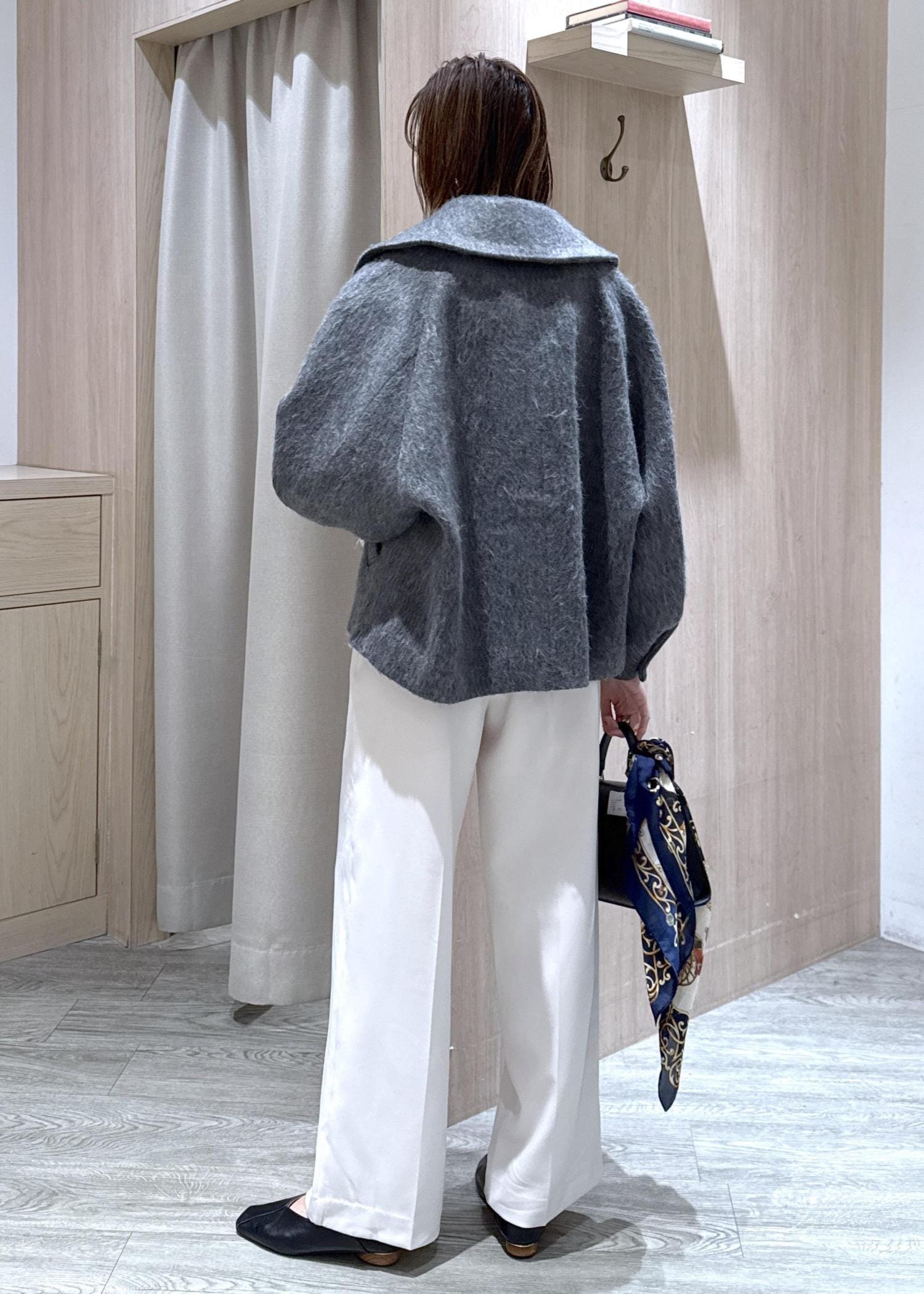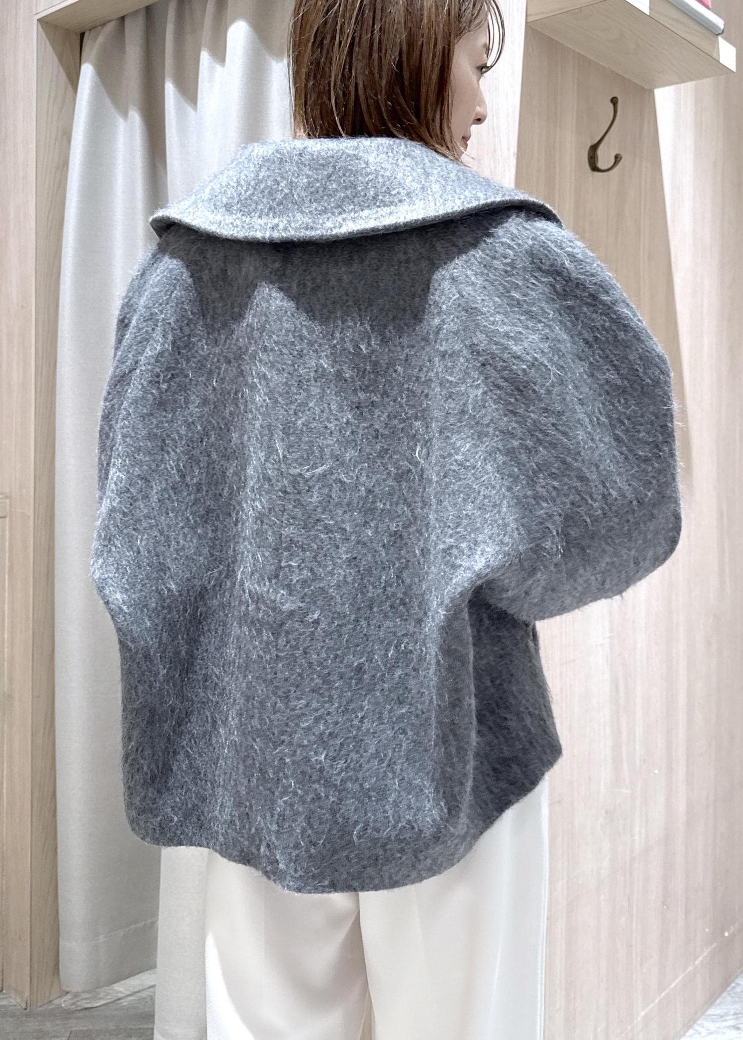 予約VIS【アウター総選挙1位】ビッグカラーモモンガシャギーショートコートグレー / M¥10,989レビュー身長166センチでMサイズ着用、お尻半分隠れる長さでした。