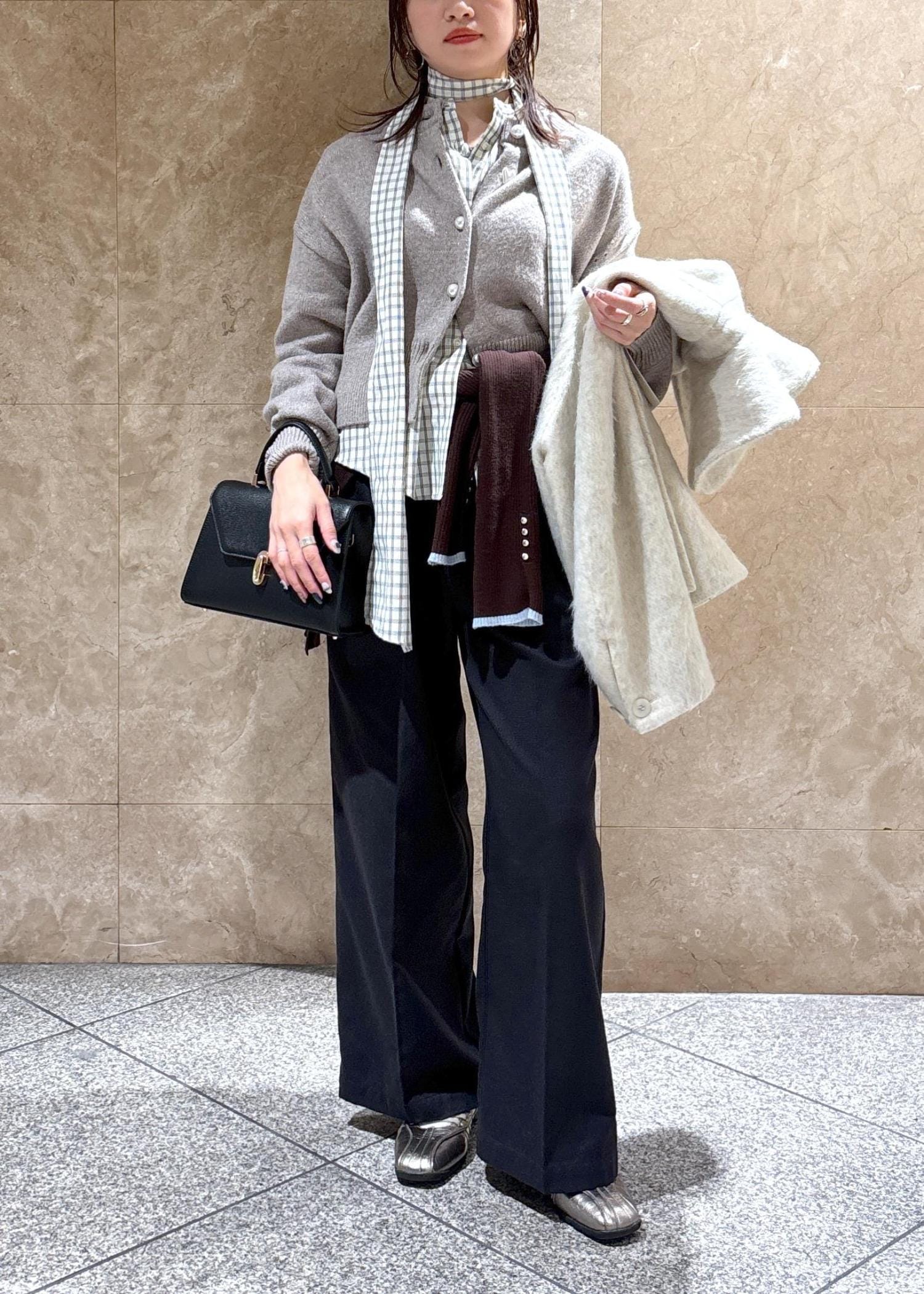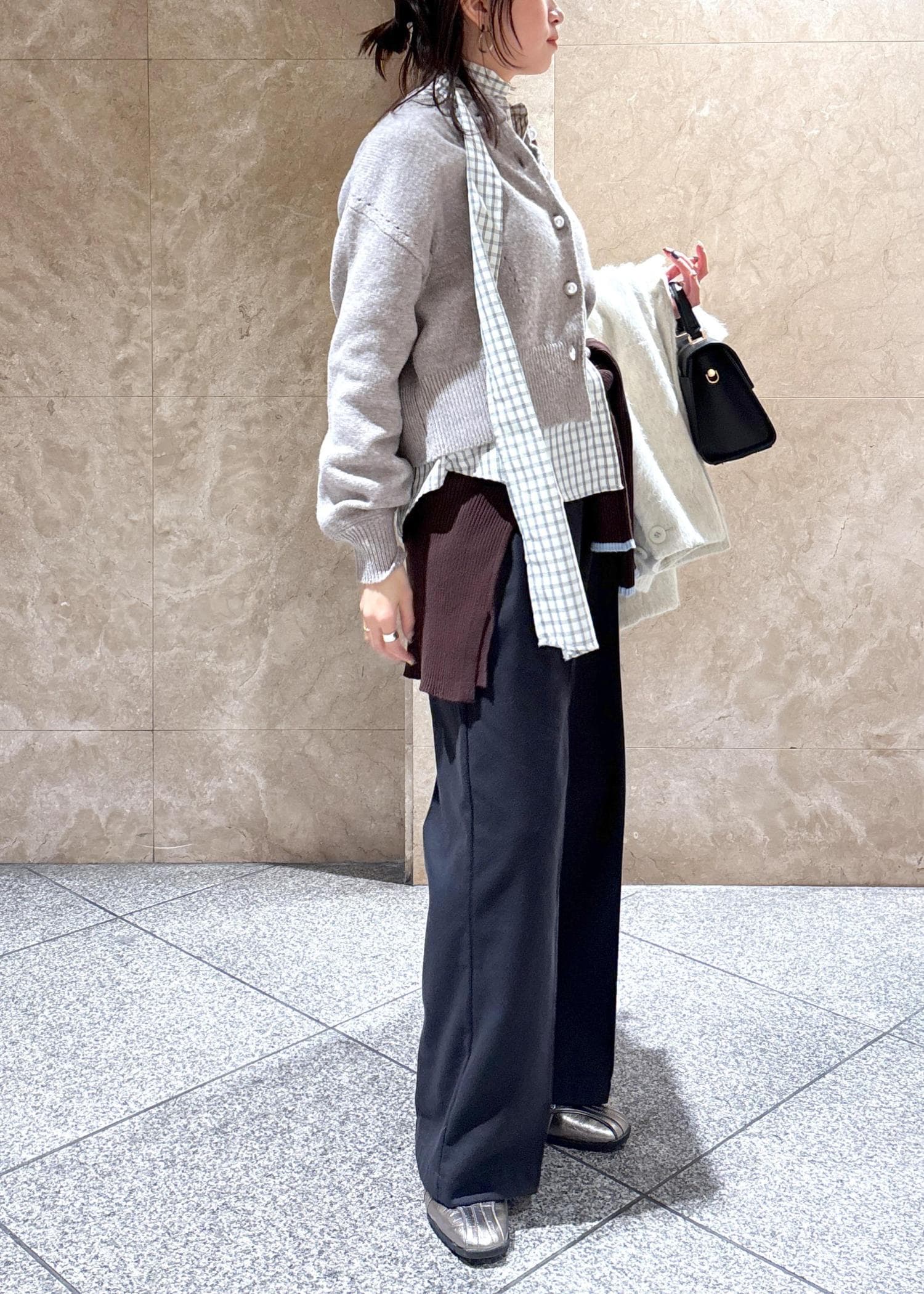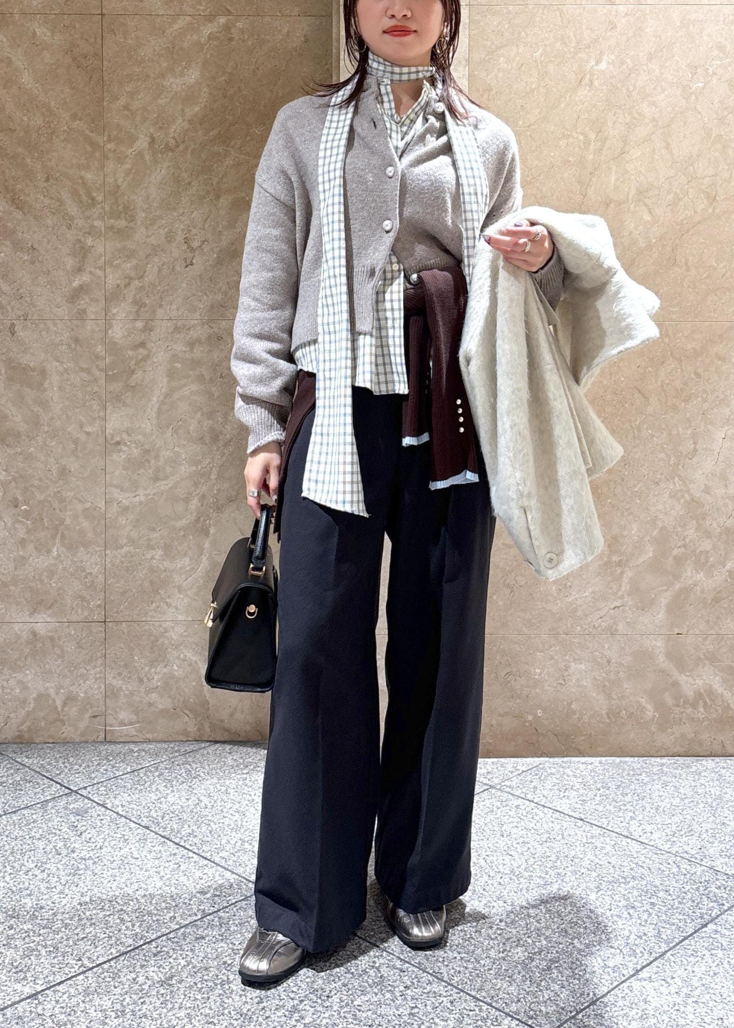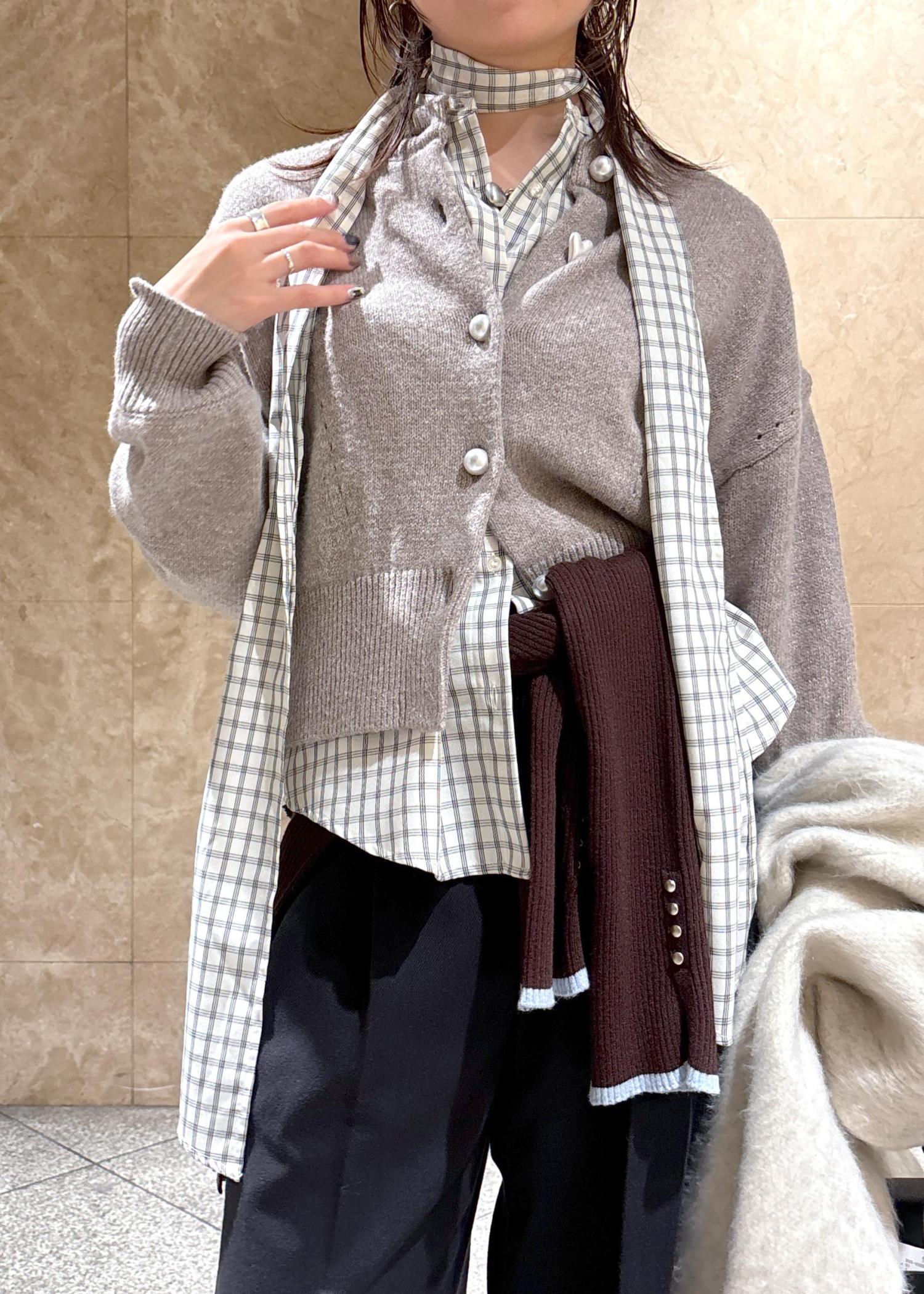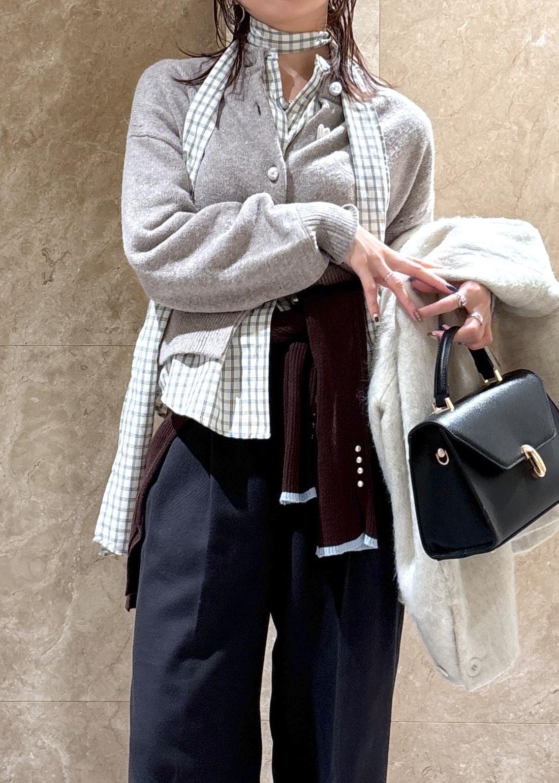VISチェック&デニムアソートボウタイリボン付きスタンドカラーシャツオフホワイト / F¥6,589レビューあっさりした素材感なので、重ね着してもごわつかずに着用できました。