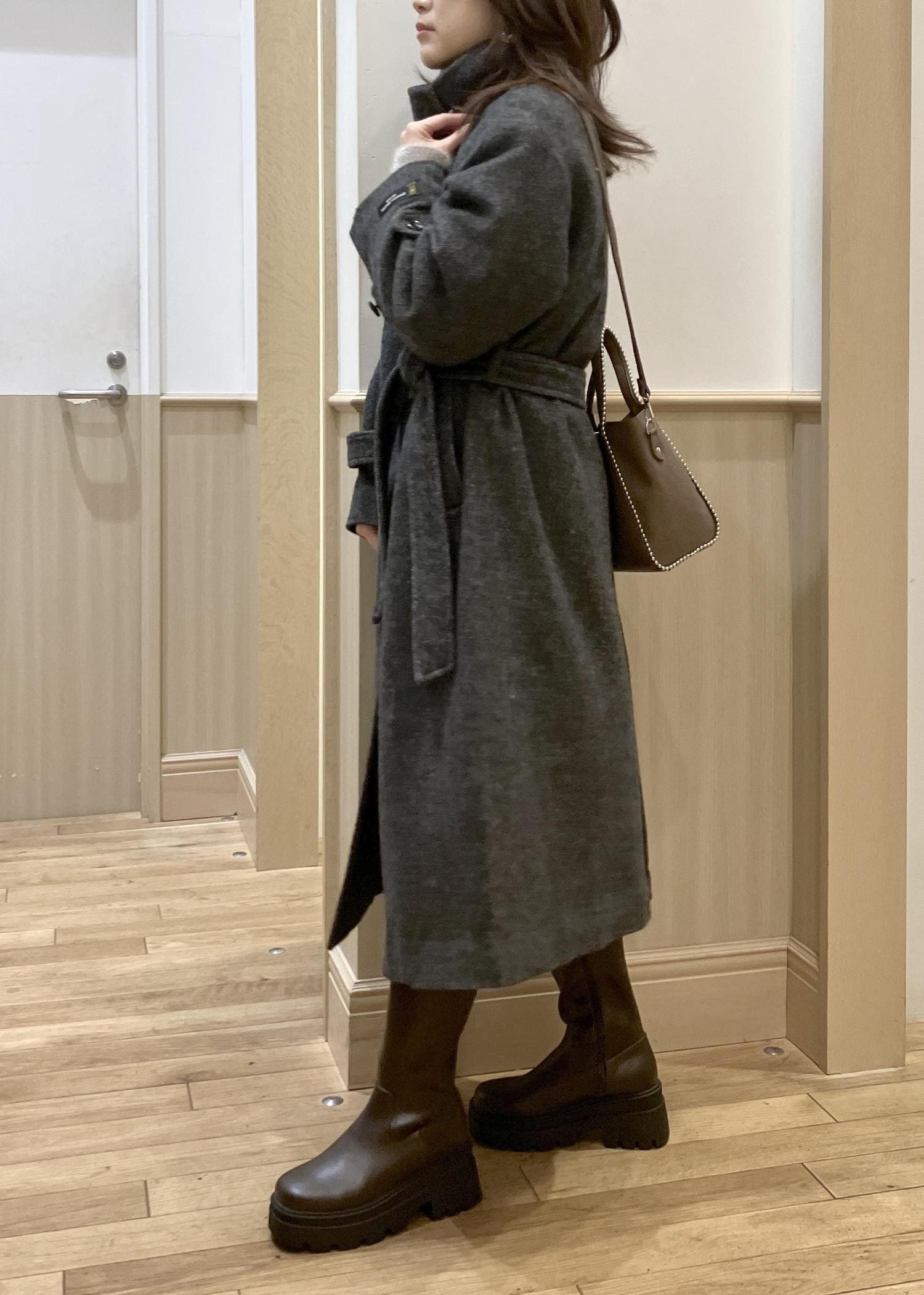 VIS尾州シャギースタンドカラーロングコート/静電気防止・WEB限定PS・TMサイズチャコール / S¥21,890レビュー国産ウールが68%しっかり入ったあったかくて軽量のロングコートです。
