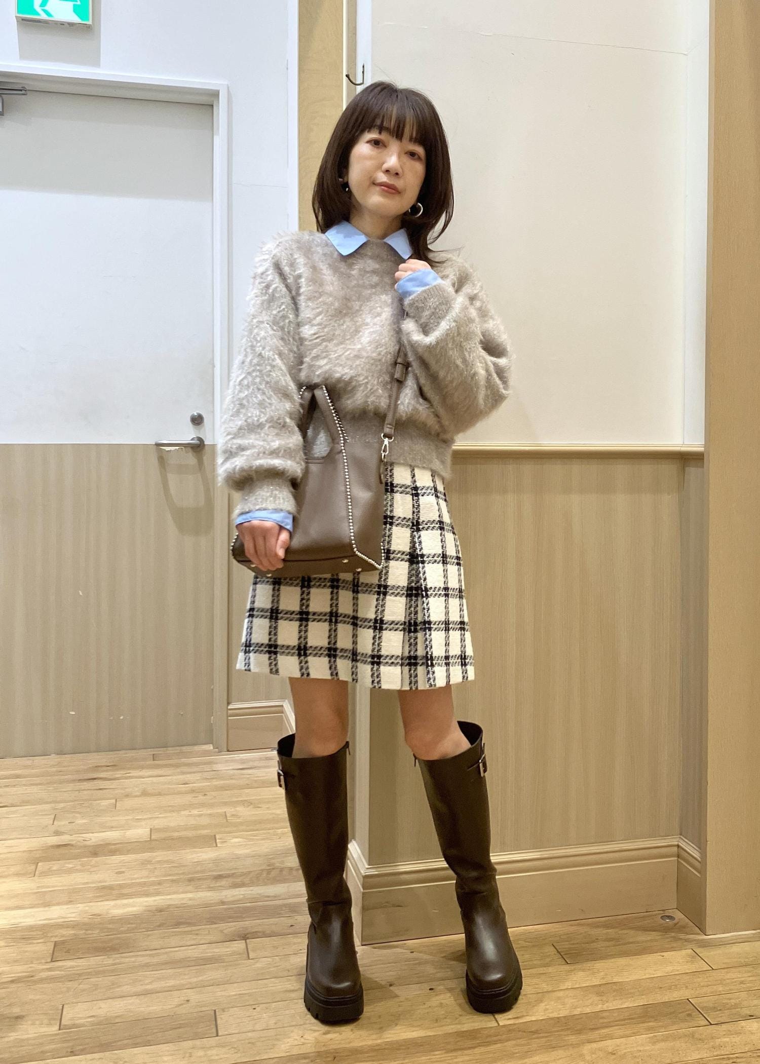 ミニスカートもブーツとコートをロングで合わせると少し落ち着いた雰囲気になるので大人女子にはオススメです。