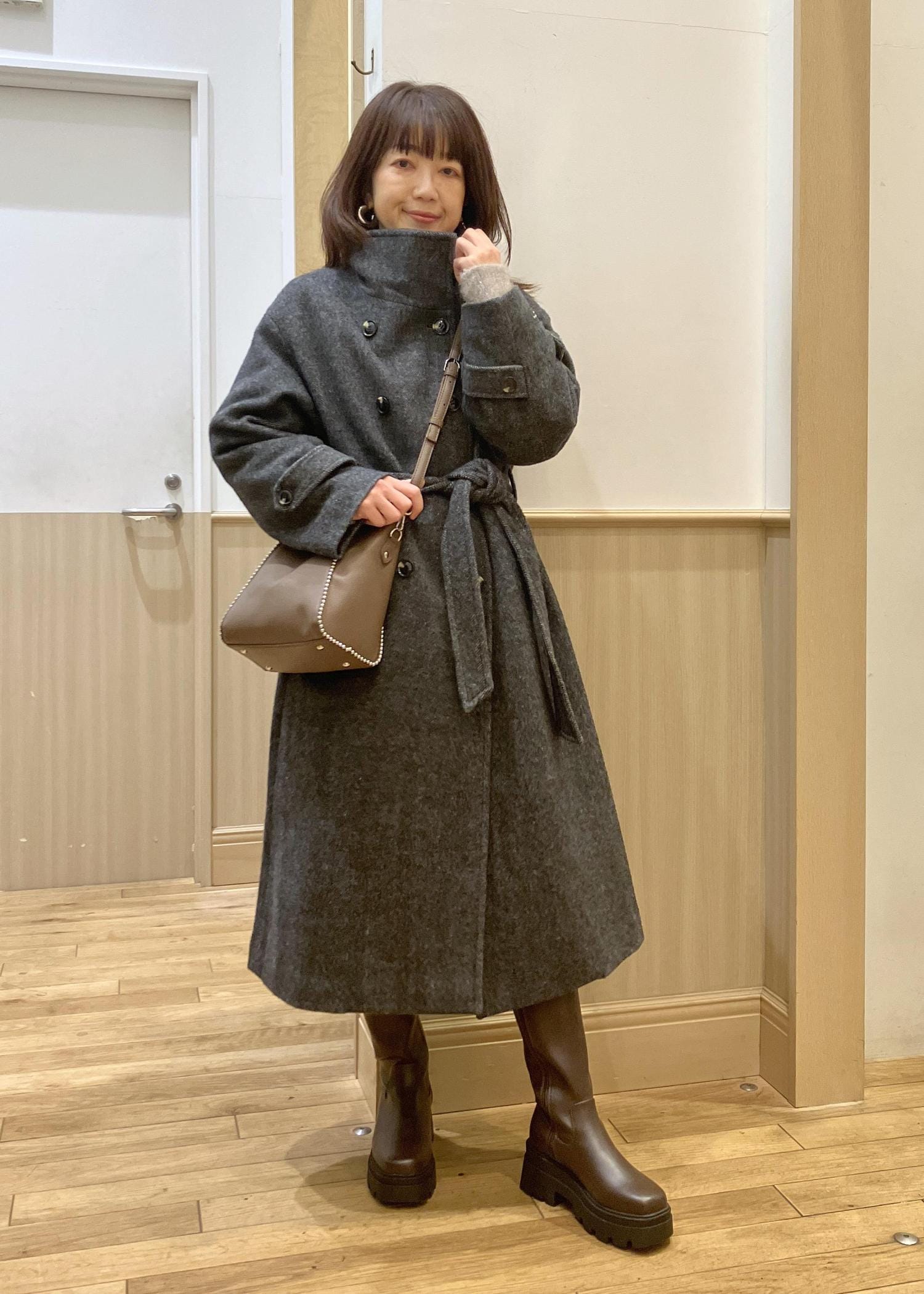 本格的に寒い日は、襟元を立ててスタンドデザインにする着方もオススメですよ。 -