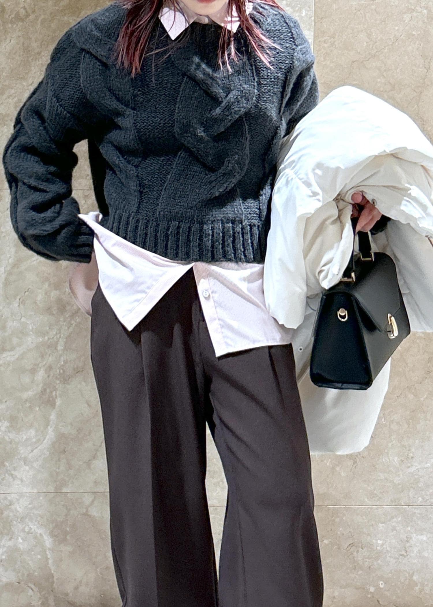 VISケーブルコンパクトニットチャコール / F¥5,929レビュー優しい肌触りのケーブルニットです。