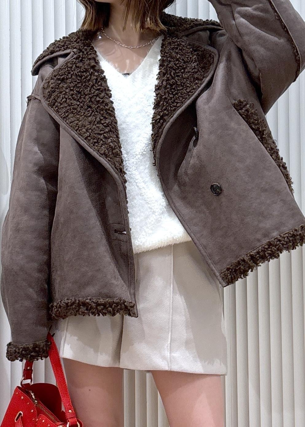 VISフェイクムートンジャケットダークブラウン / F¥14,080レビュー153センチ着用でヒップにかかるくらいの着丈でした。ボアにムートン素材でカジュアルながら可愛いデザインです!ゆったりしたサイズ感なので中にスウェットやニットなど厚手のトップスを合わせても問題なく着れます!