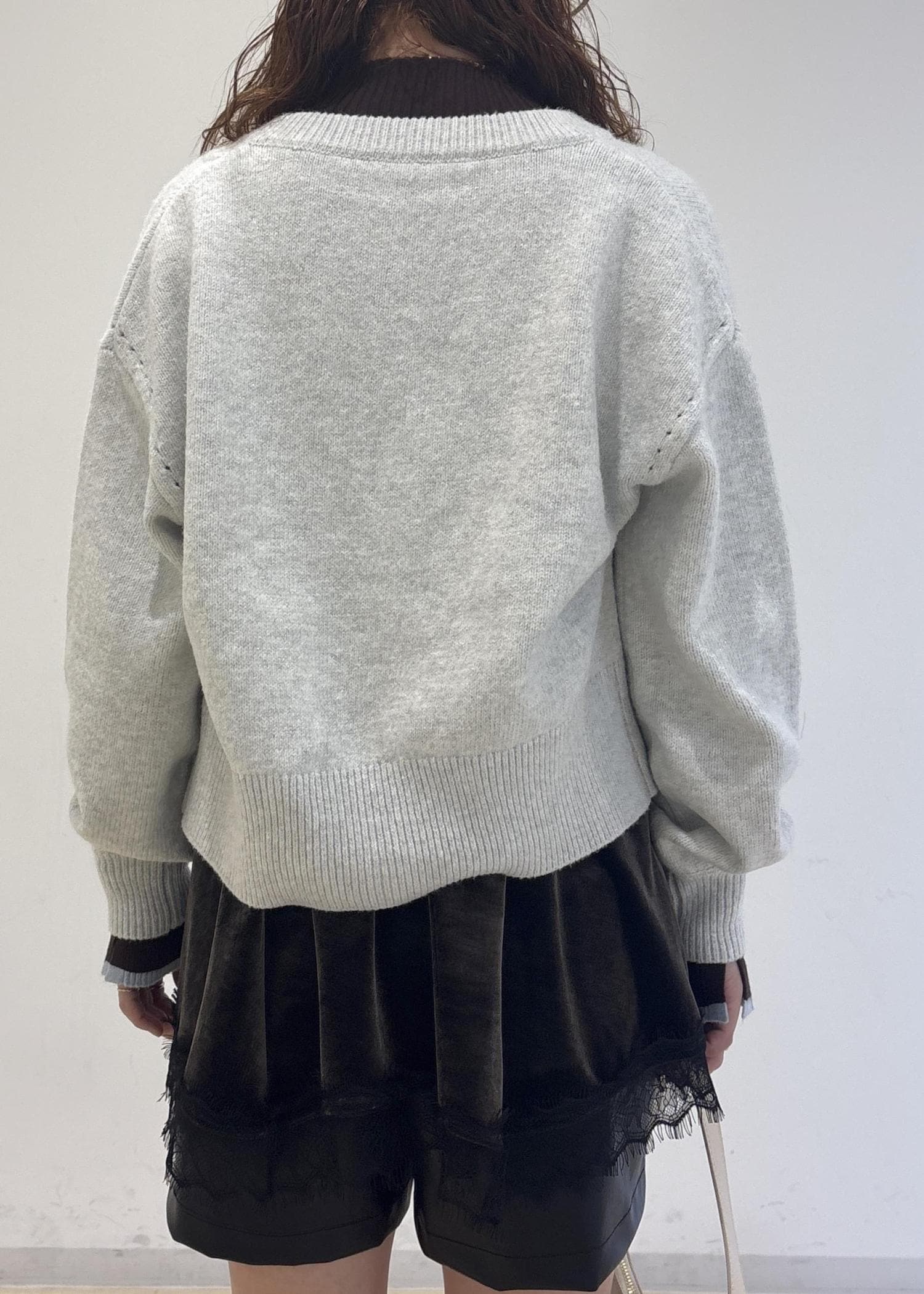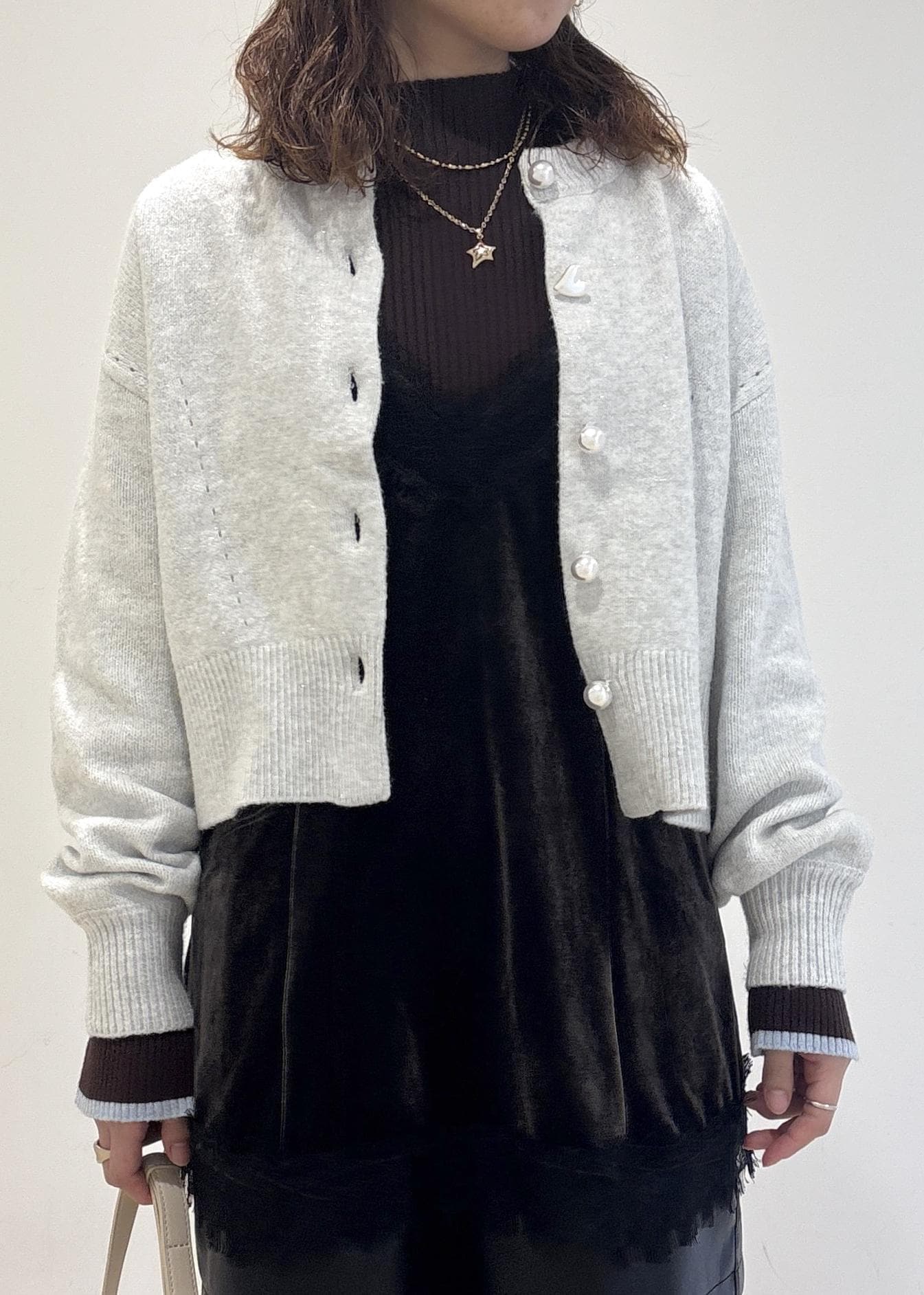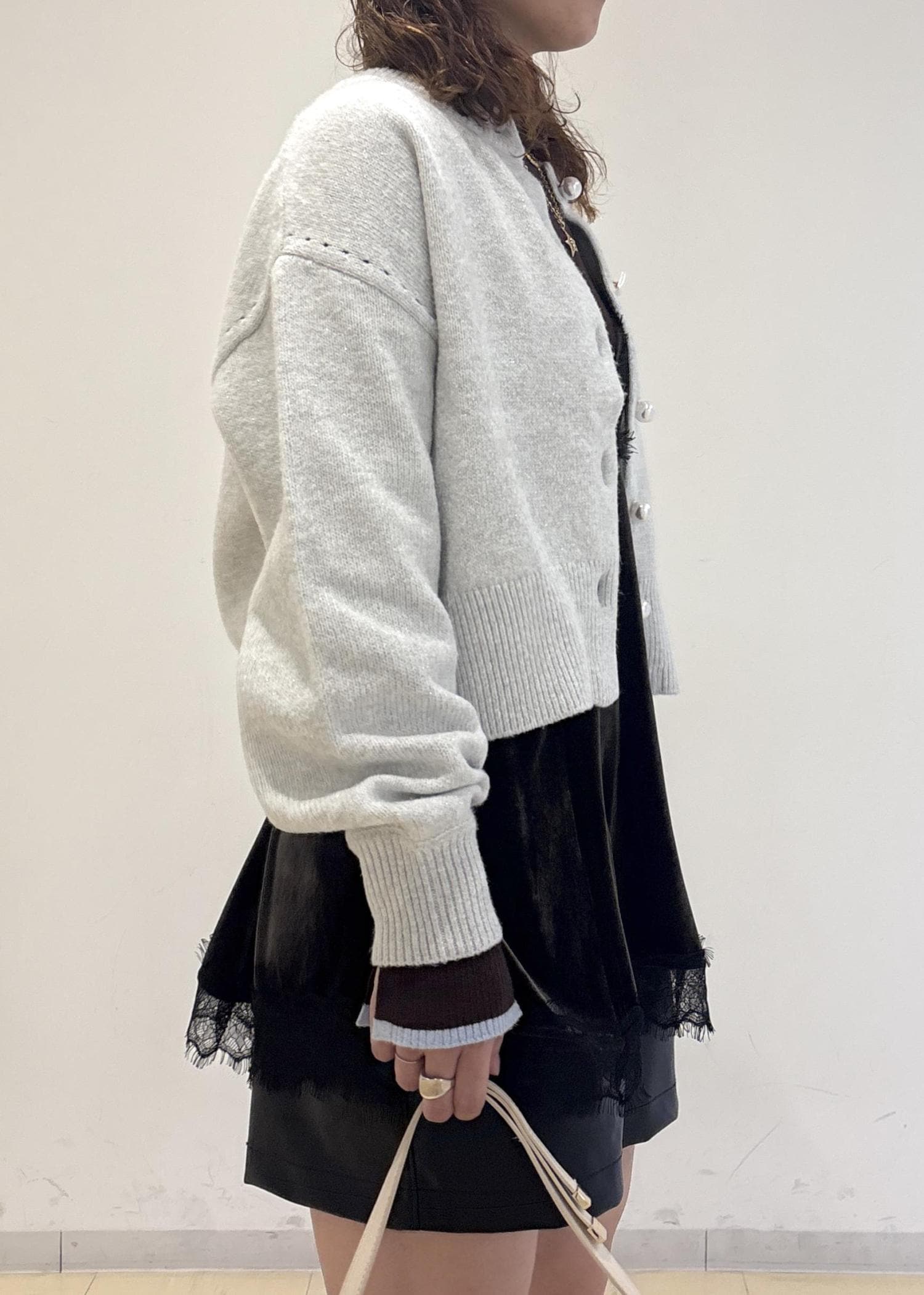 VISハートアソートパール釦ラメミックスカーディガン/イージーケア・一部WEB限定カラーライトグレー / F¥5,489レビュー160cm着用で骨盤が隠れる丈感でした。