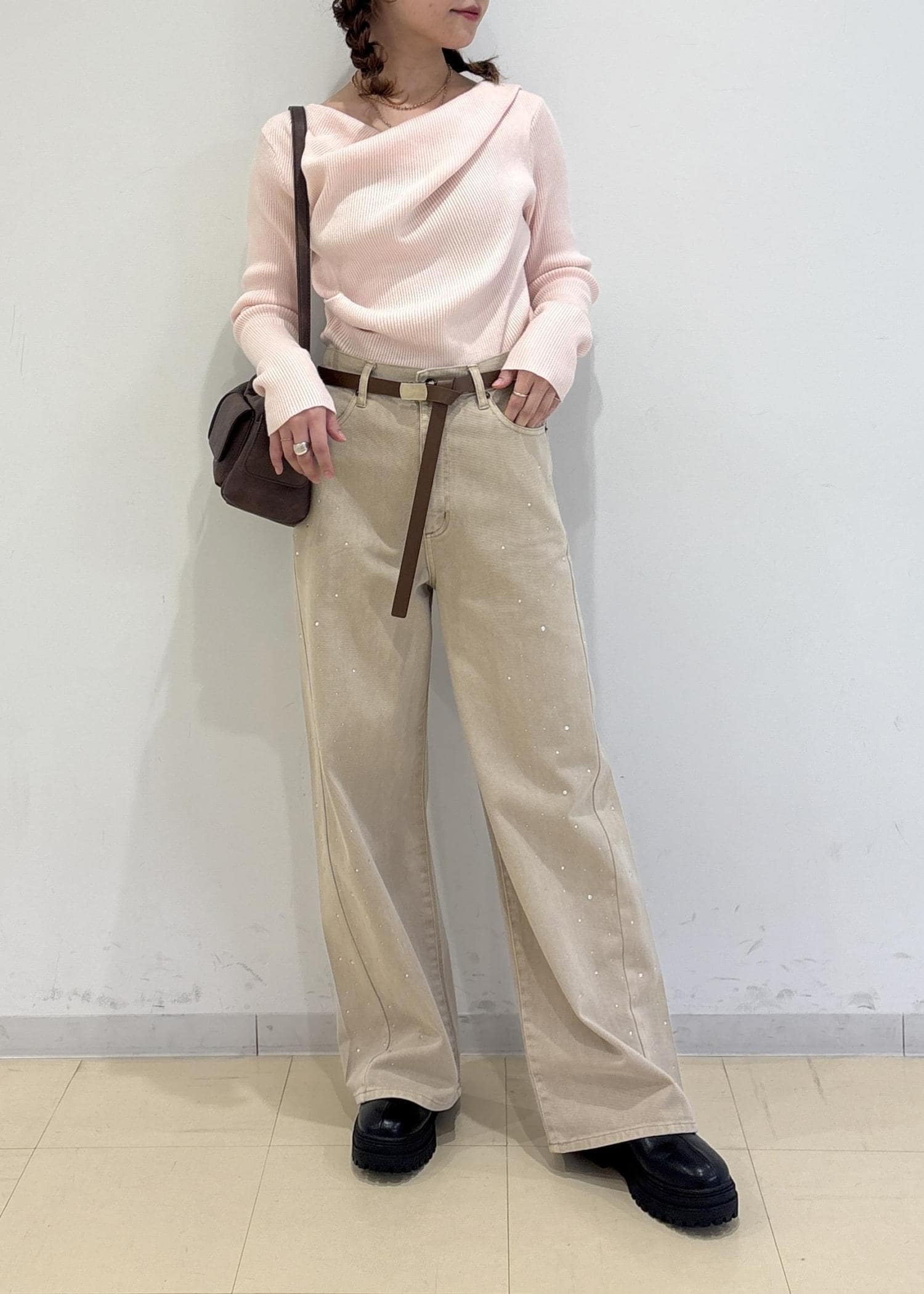 VISビジューデニムパンツベージュ / M¥7,909レビューサイドに付いたビジューが上品で控えめな配置なのでコーデにも取り入れやすかったです!