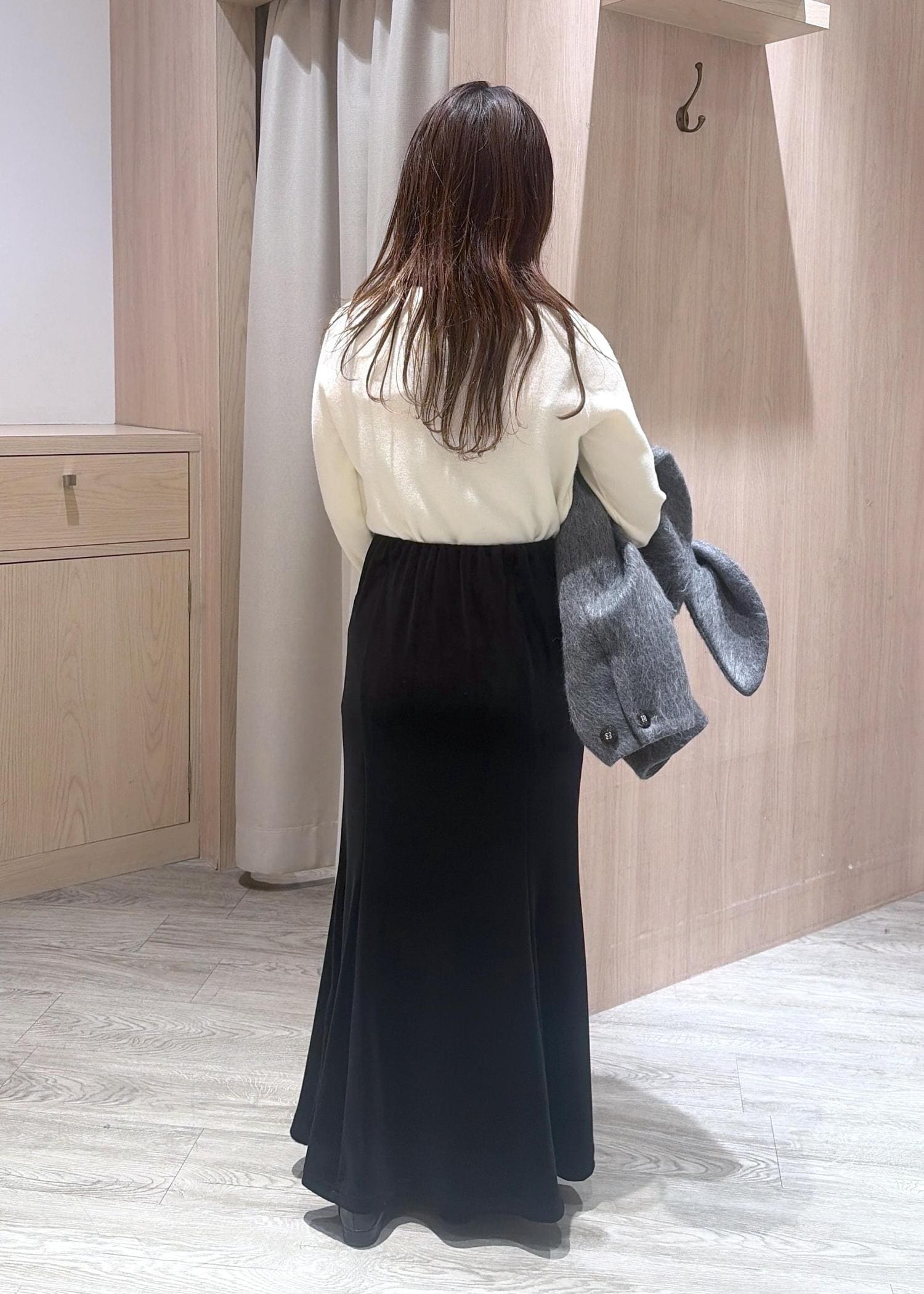 広がりすぎないマーメイドシルエットなので上品な印象になります♪ -