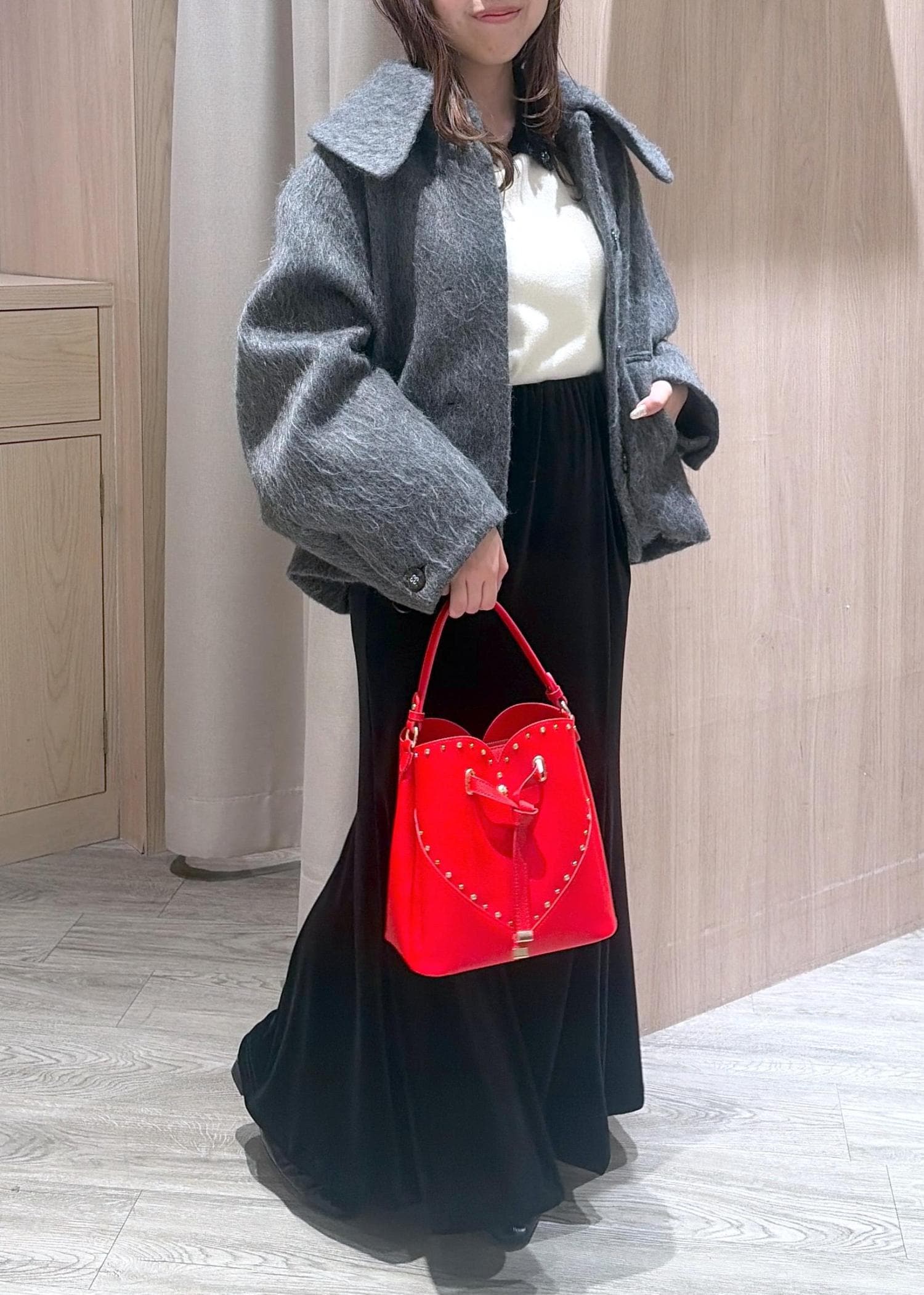 ギャザーのデザインが華やかなのでシンプルなコーデに合わせると映えます♪ -