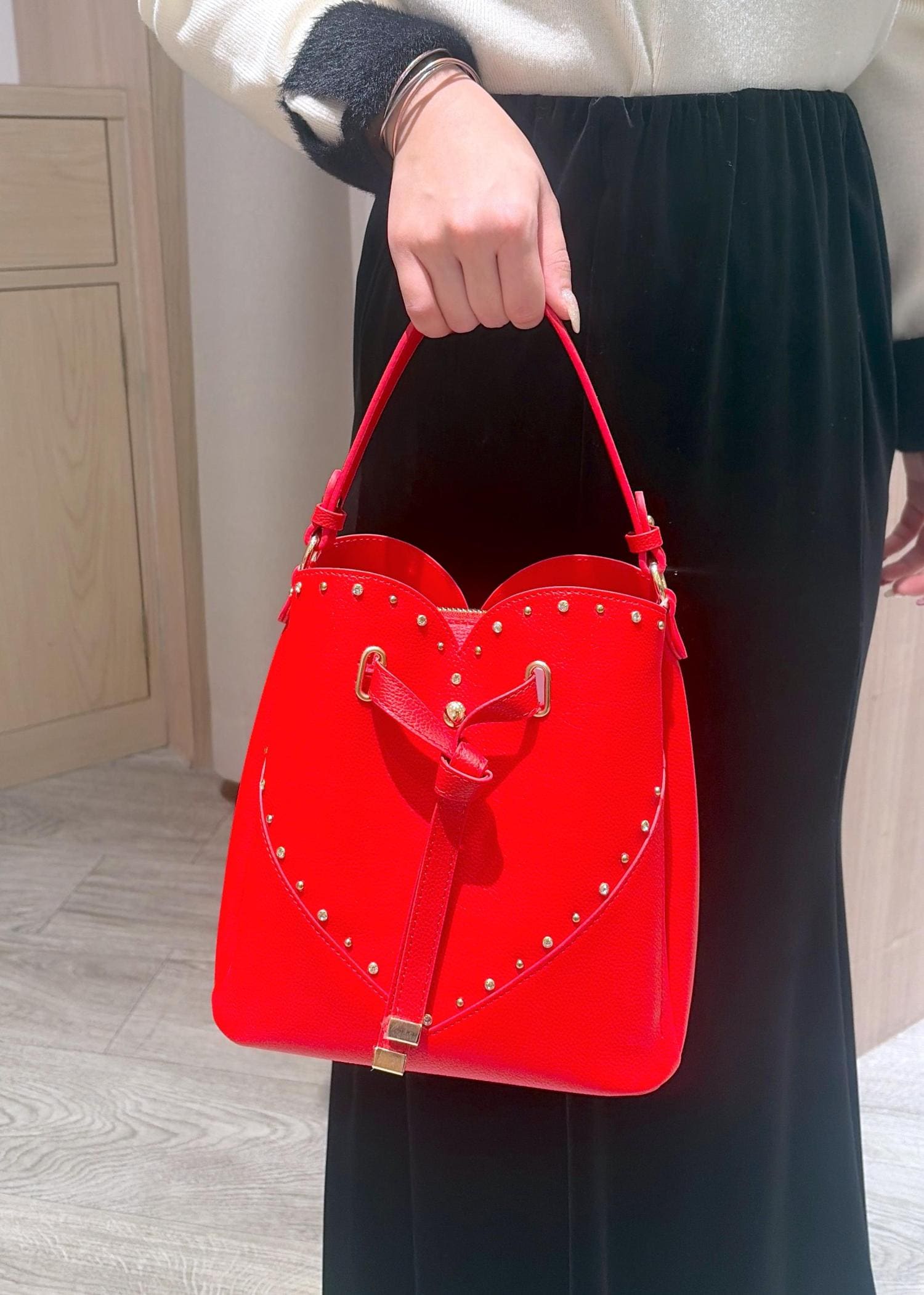 NEW!VISラインストーン&スタッズハートカットバッグレッド / F¥7,909レビュー人気のハートバッグから、スタッズとラインストーン付きの新デザインがでました♪