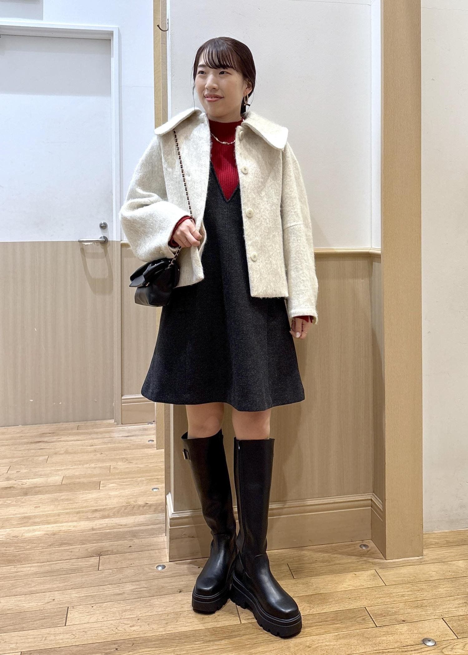 ハイネック等が苦手な方にも着やすいデザインです! -