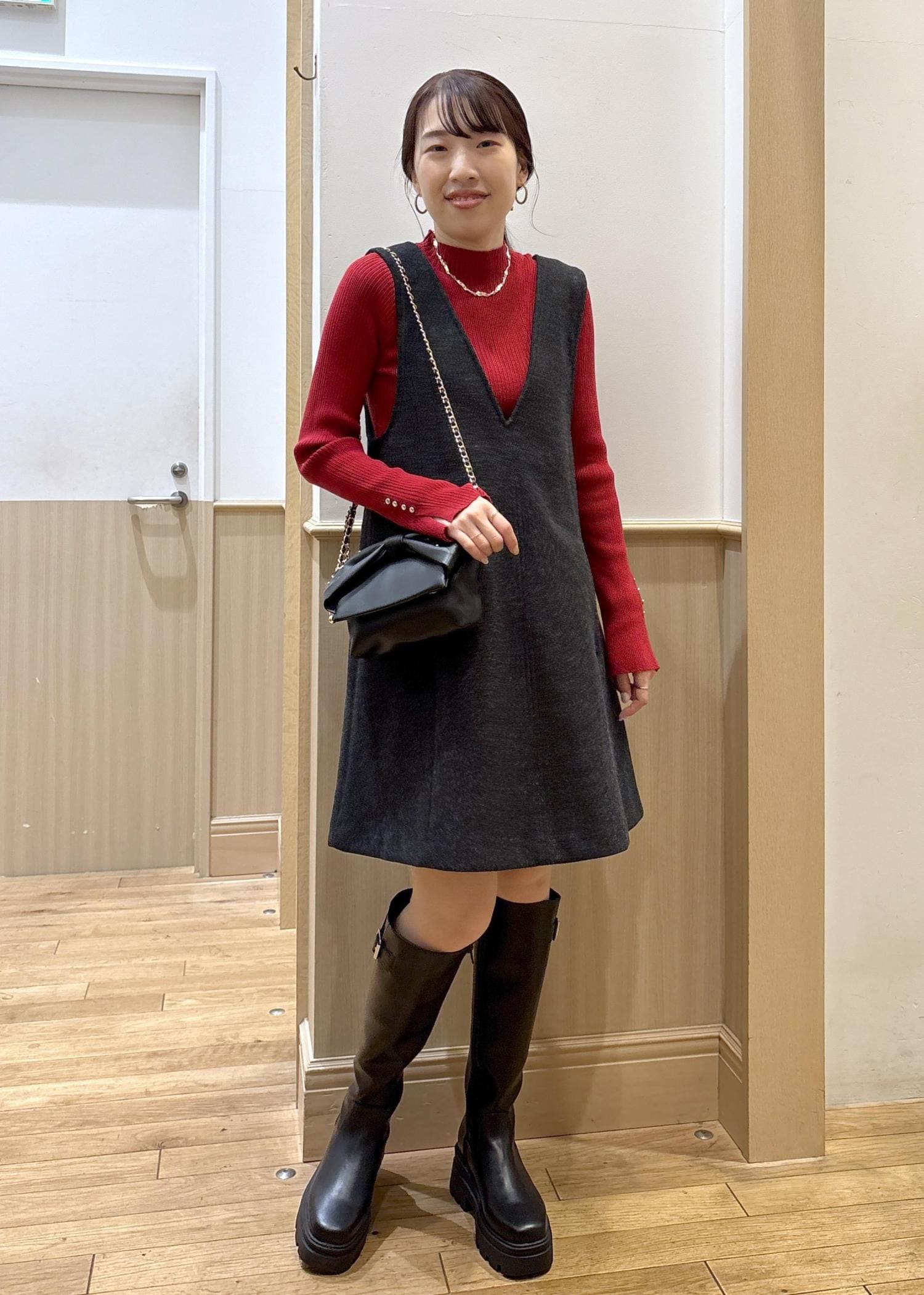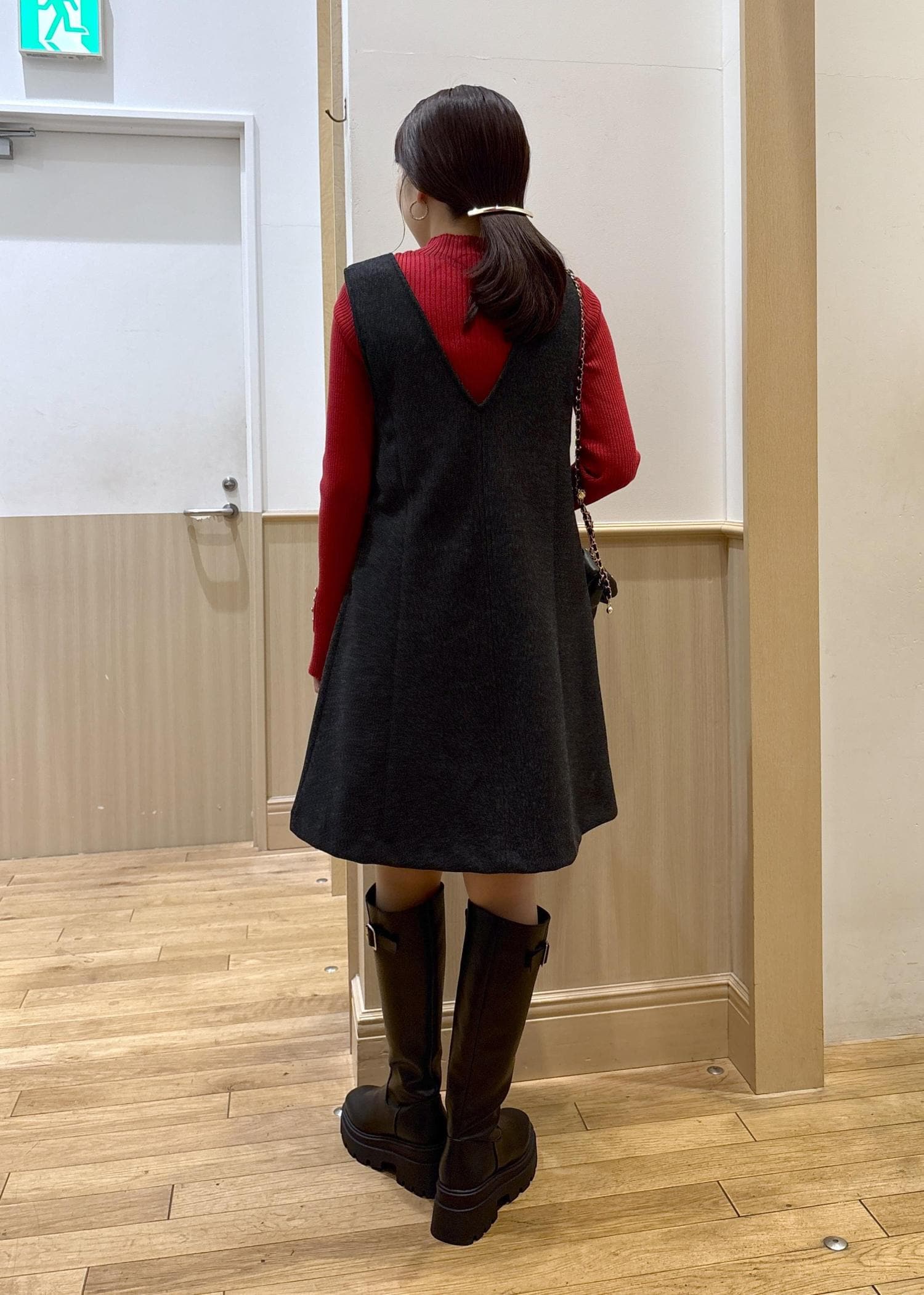 VISシャギーVネックミニ丈ジャンパースカートチャコール / F¥7,909レビューフレア感が綺麗なジャンスカです!