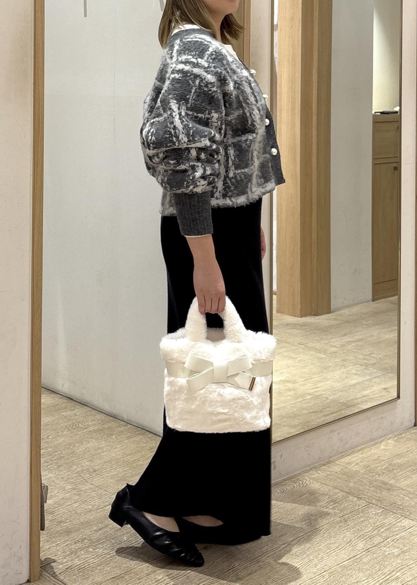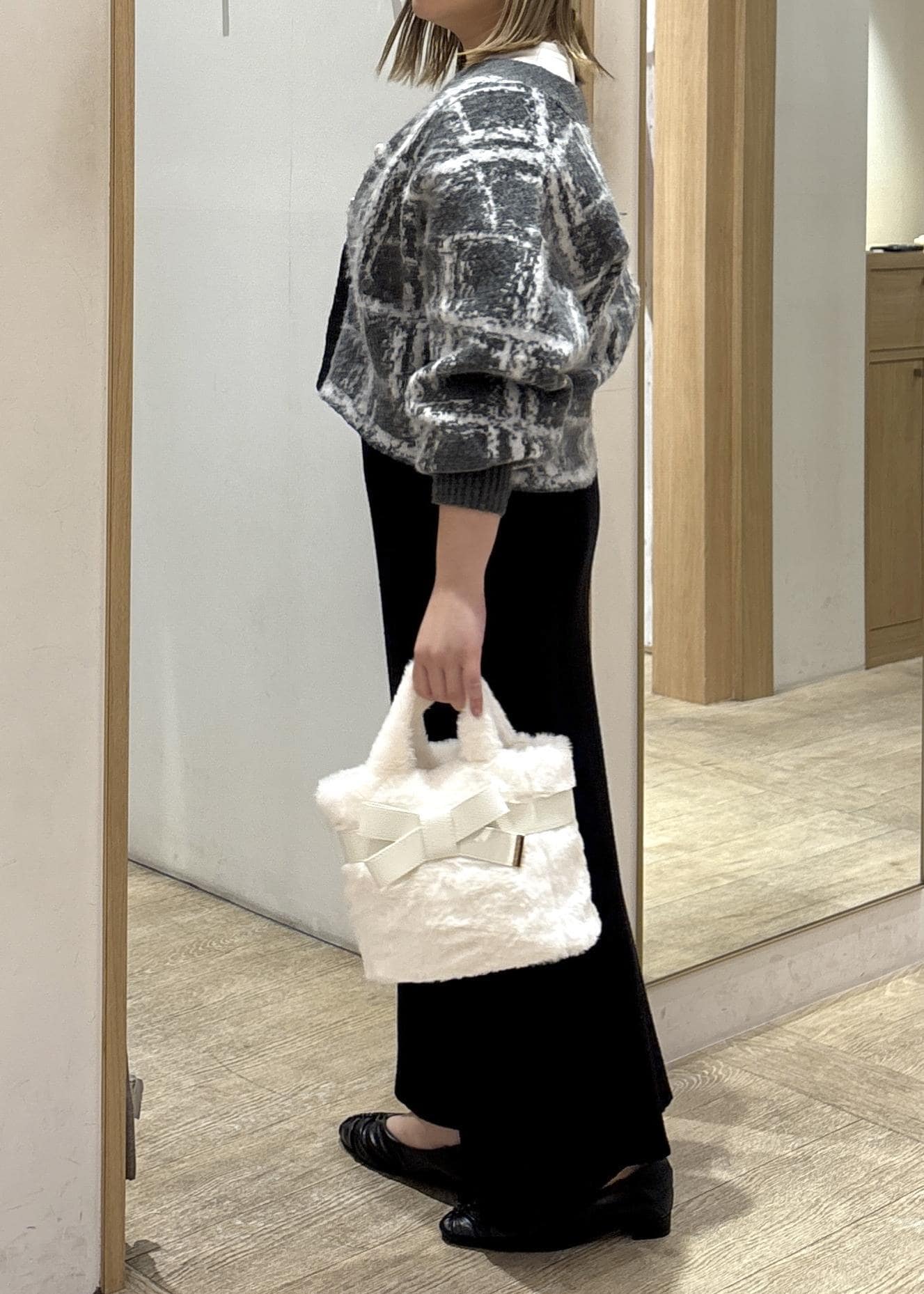肌触りのいいモコモコ感で、大きすぎないので可愛らしくかつ、女性らしく持っていただけます!