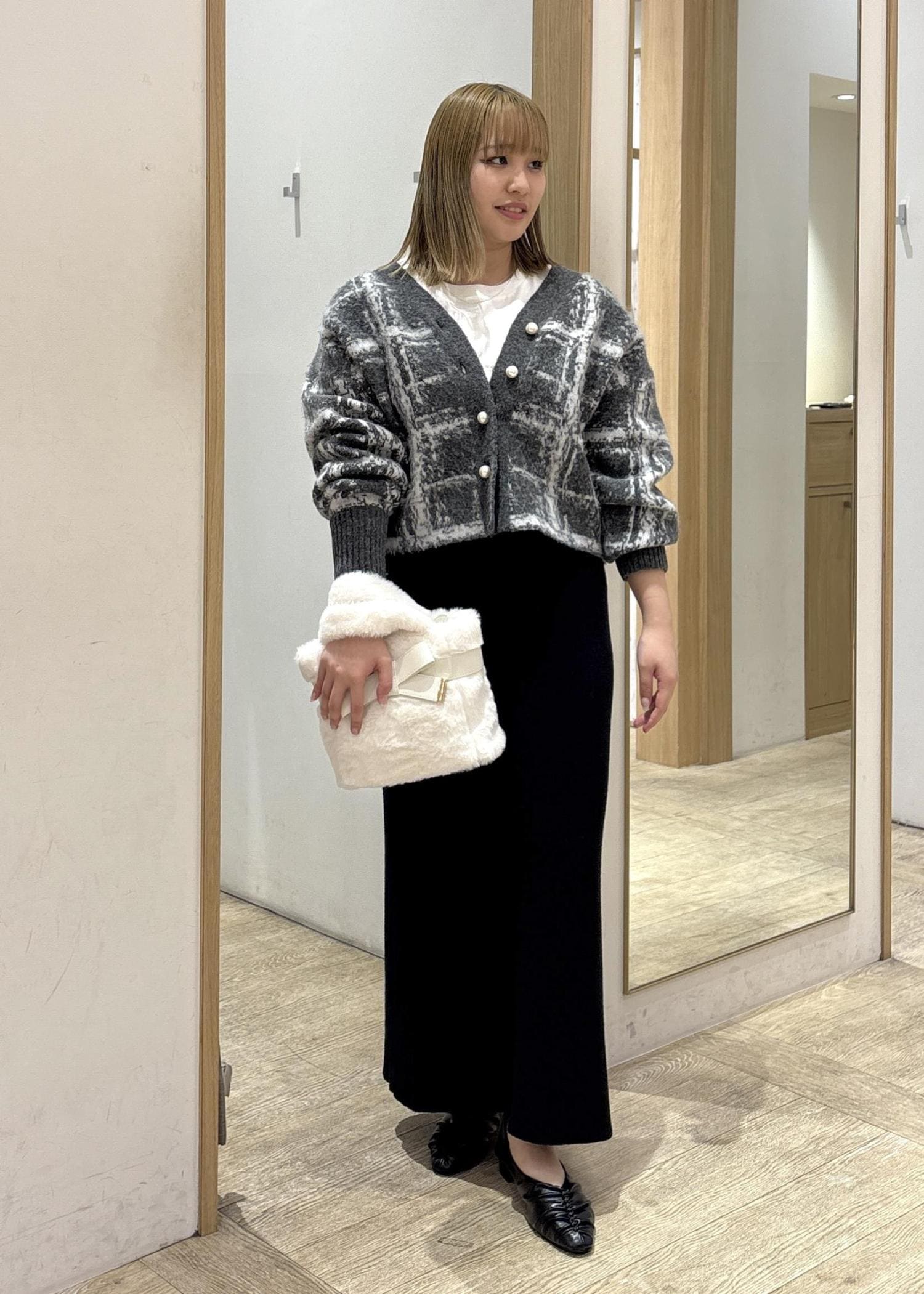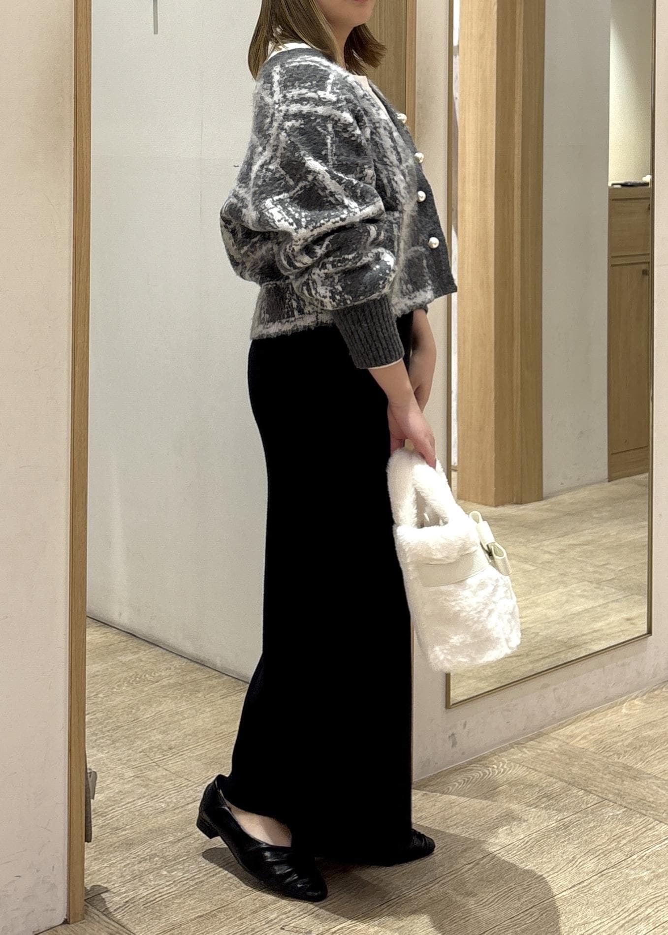 ゆったりしたカーディガンに少しタイトなロングスカートで大人っぽくしました!