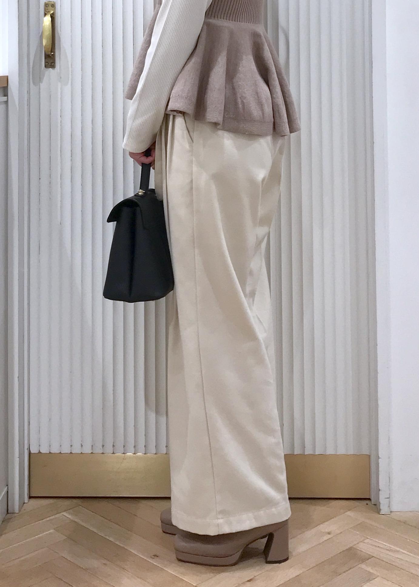 素材は、起毛感がある素材感でややシワにはなりやすいですが暖かく着用出来ます。 -