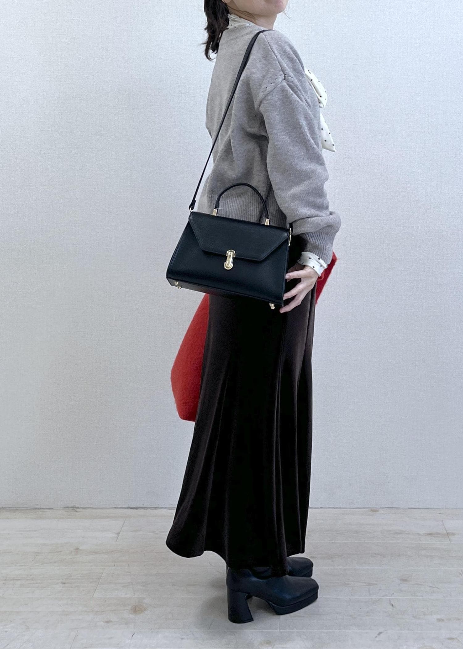 VIS楕円金具ワンハンドルバッグ/2WAYブラック / F¥7,909レビューコンパクトながらしっかり荷物も入れられます。リップ、ミニ財布、携帯など。カチッとしたデザインだけど、カジュアルスタイルに持って抜け感を出すのもお勧め!高見えしてくれる素材感なのも嬉しいポイント◎どのカラーにするか迷います。