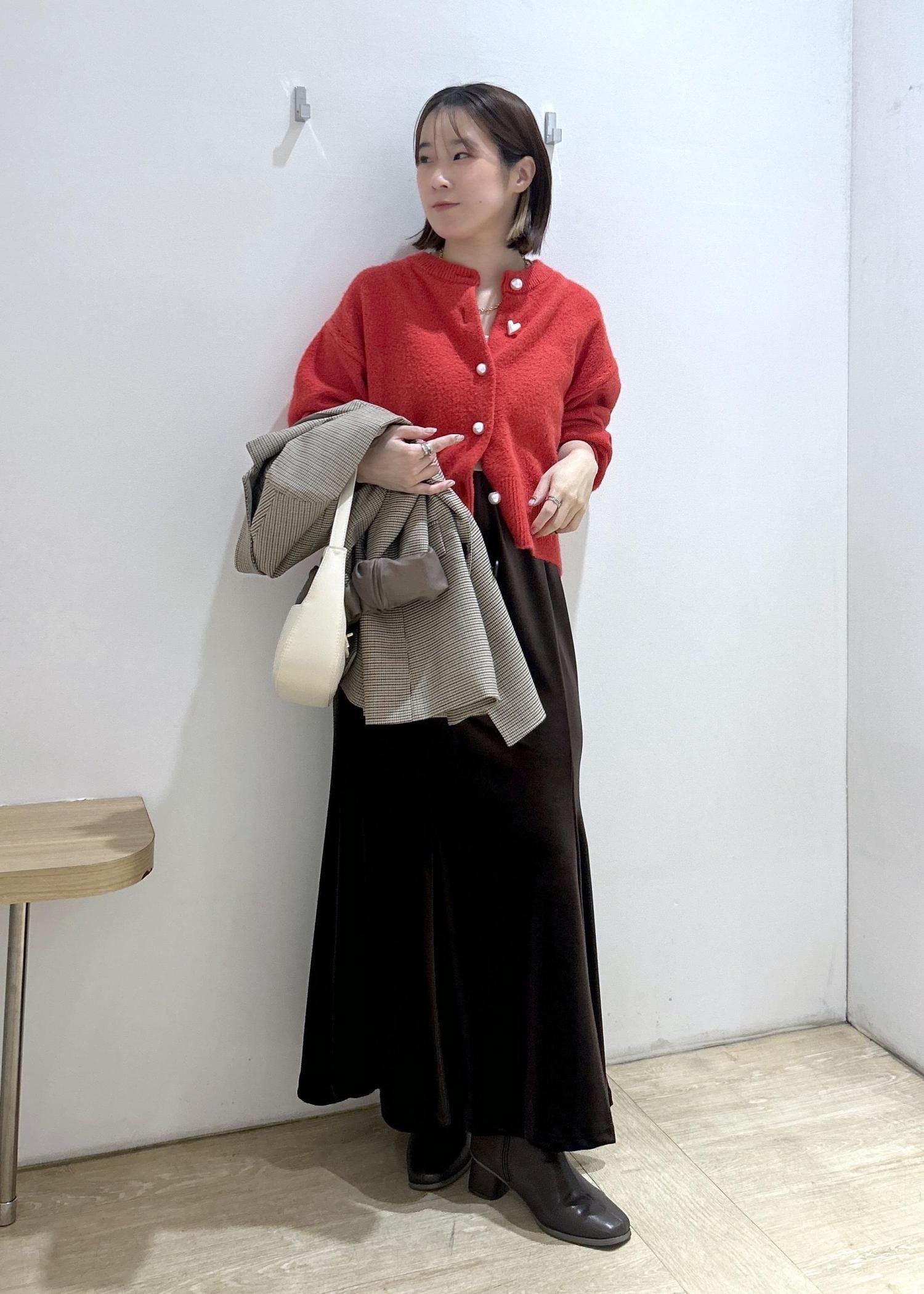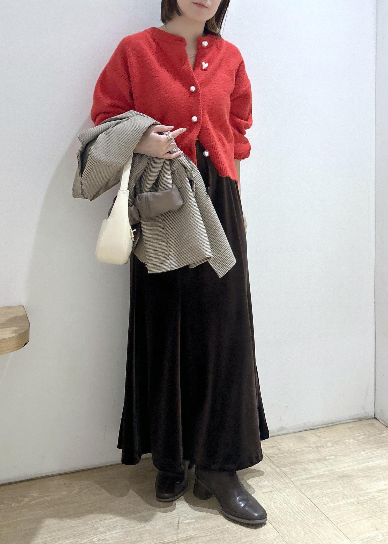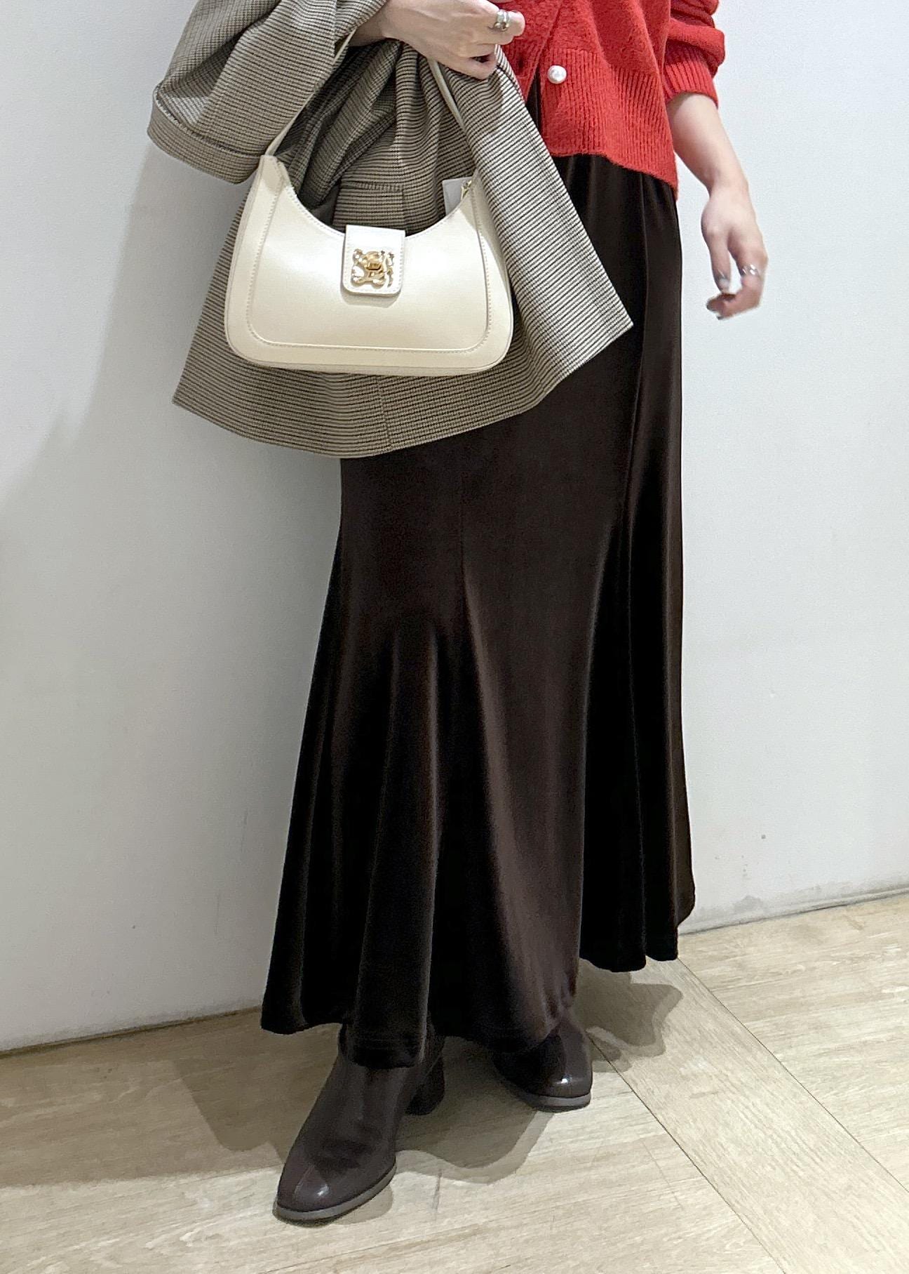 VISベロアナロースカートダークブラウン / S¥6,589レビューウエストゴムで楽に履けます。トレンドのベロア素材で、ナローシルエットなので低身長の方にもおすすめです。