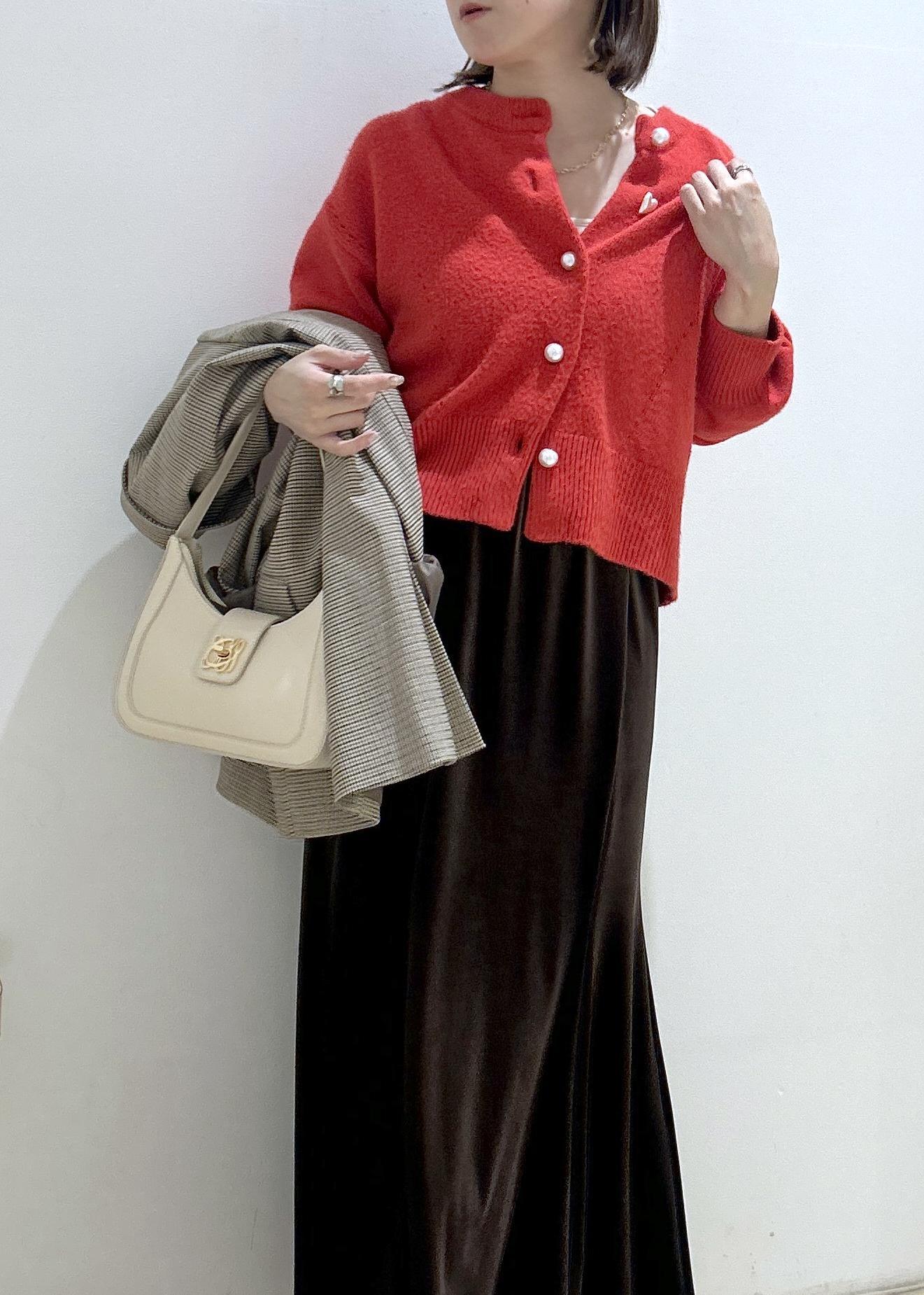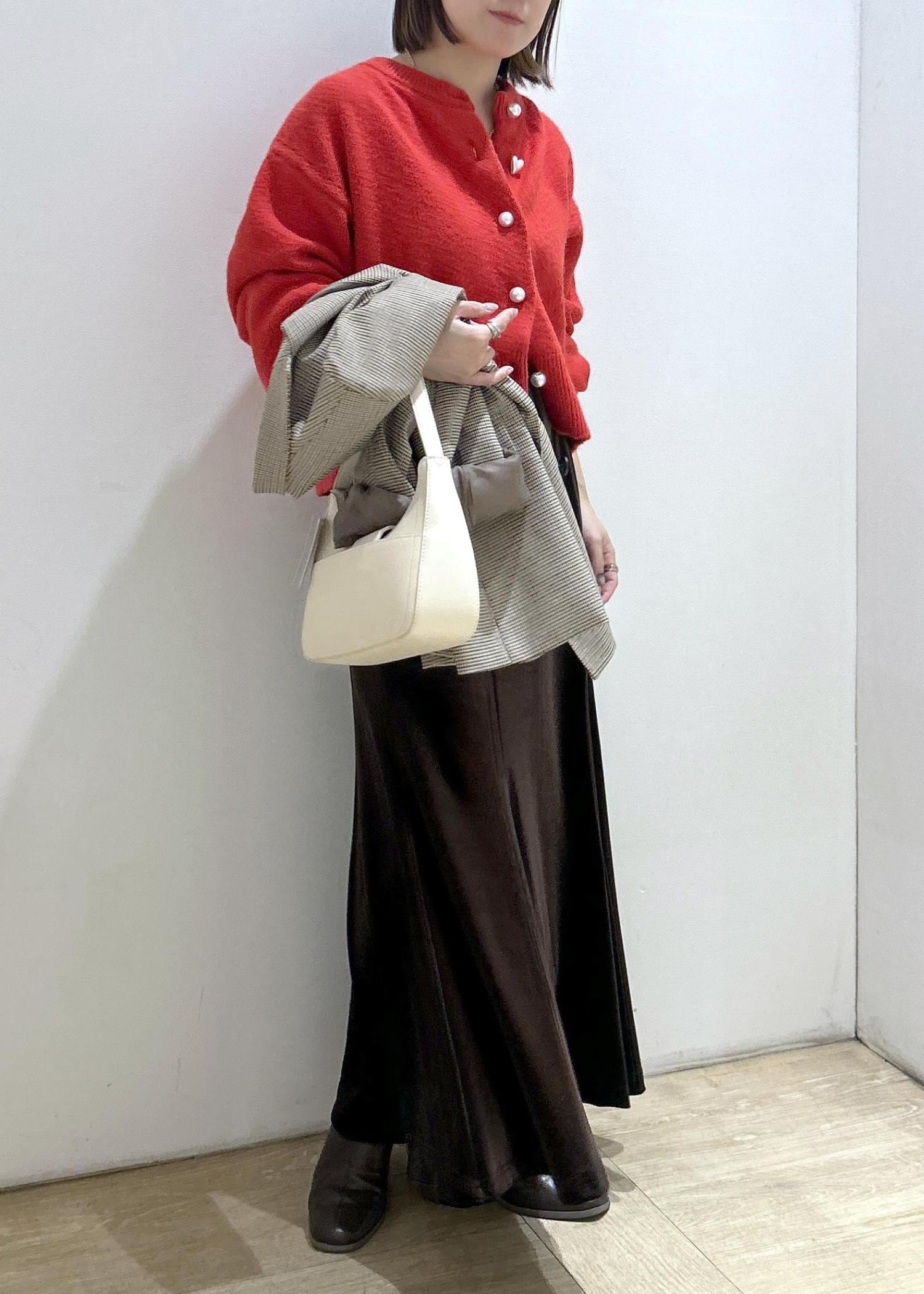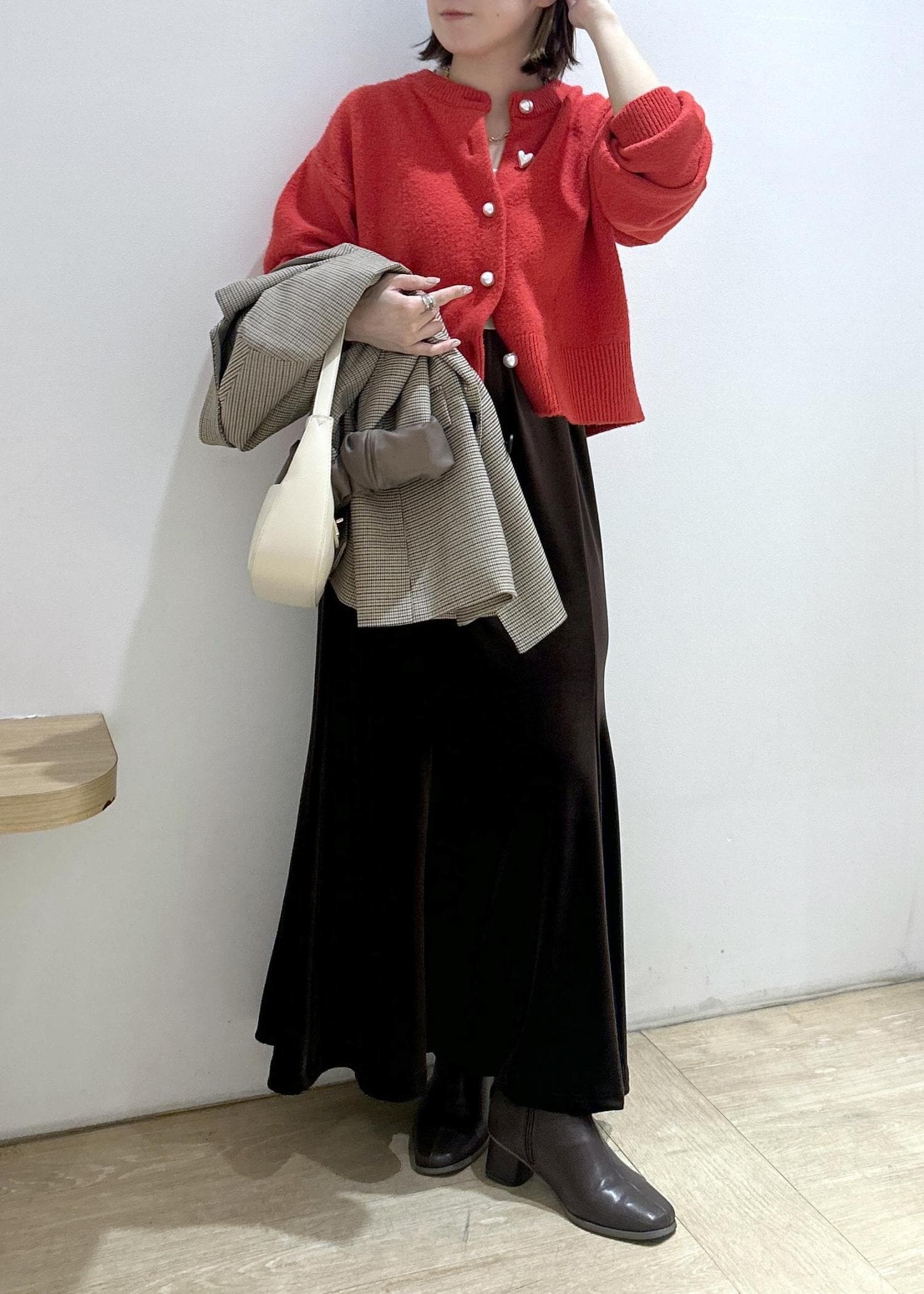 VISベロアナロースカートダークブラウン / S¥6,589レビューウエストゴムで楽に履けます。トレンドのベロア素材で、ナローシルエットなので低身長の方にもおすすめです。