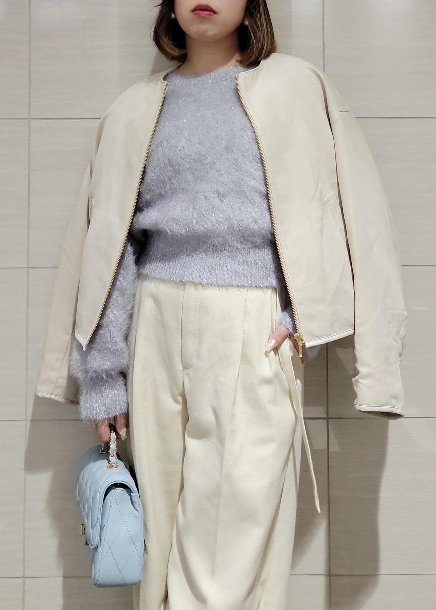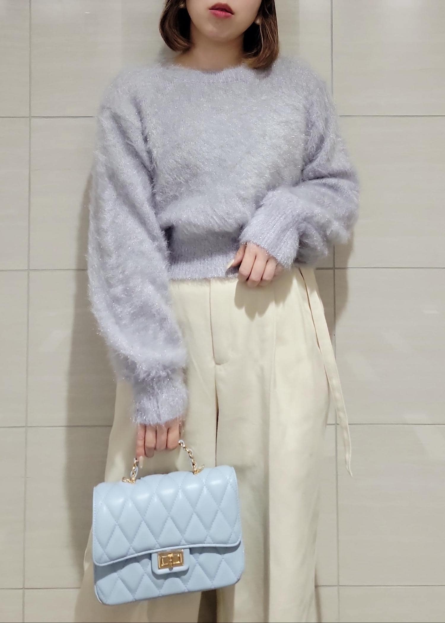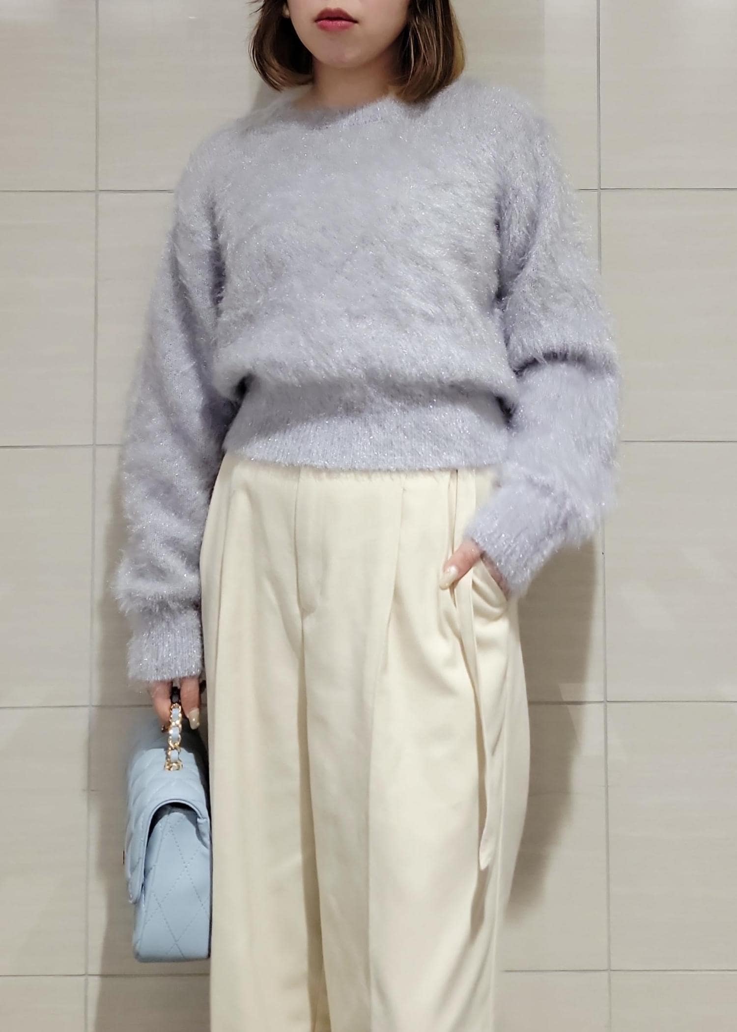 VISメタルシャギーネコヤーンニット/静電気防止サックス / F¥5,489レビューラメ感のあるニットですが、チクチク感はなく毛足のあるふわふわとした肌触りの素材です!