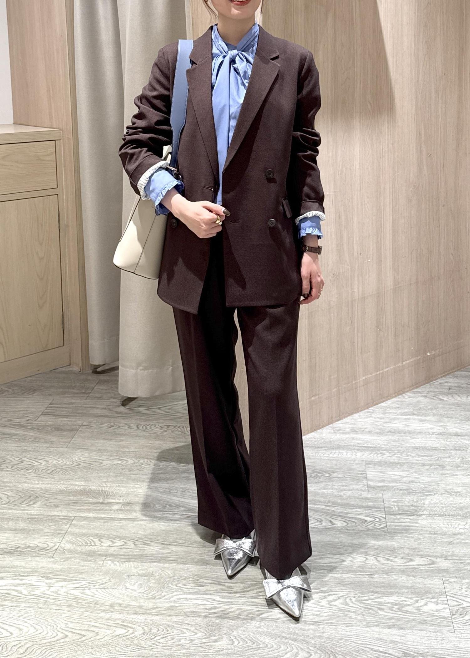 VIS【美easy】ウーリッシュダブルブレストテーラードジャケット【セットアップ対応/洗える】ダークブラウン / S¥8,899レビュー身長157cm / Sサイズ着用