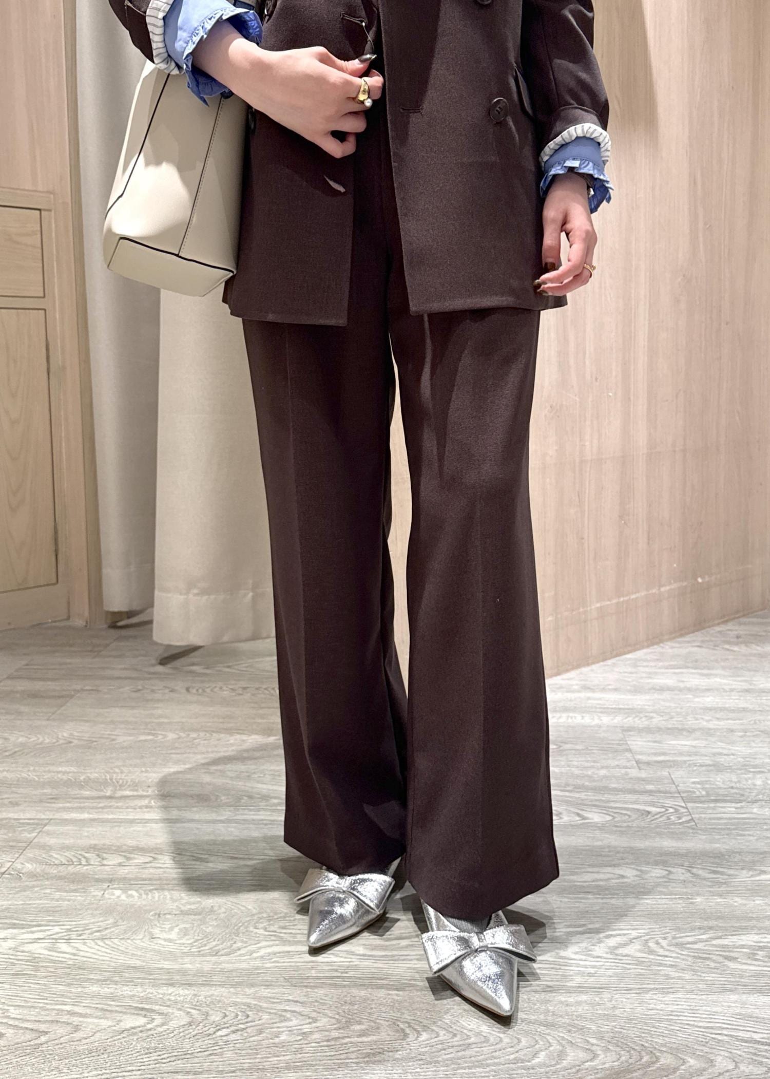 VIS【美easy】ウーリッシュワンタックワイドパンツ【セットアップ対応/洗える】ダークブラウン / S¥6,589レビュー身長157cm / Sサイズ着用 / 両サイドのボタンでウエストを縮めています。
