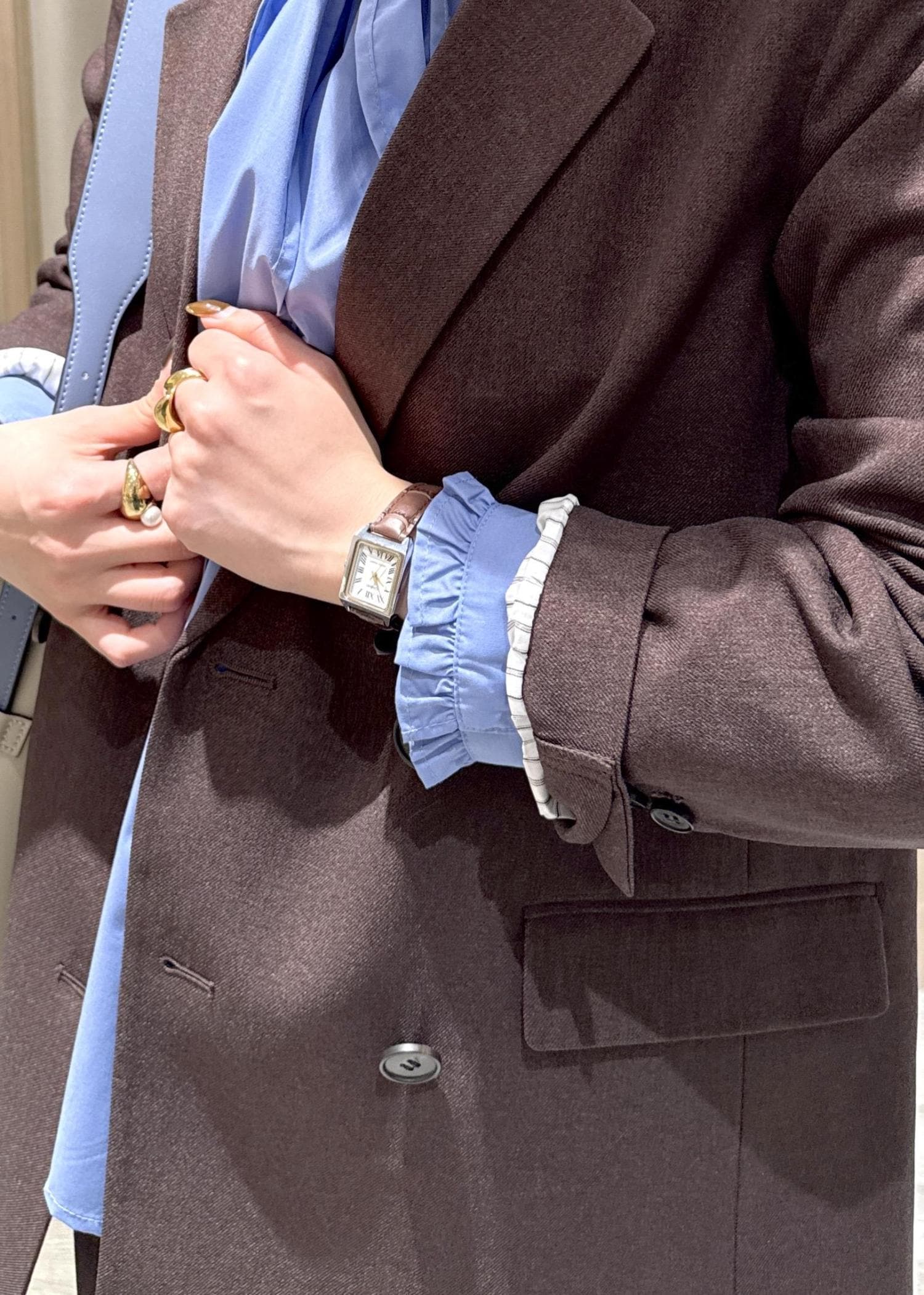 少しヒップにかかる丈感でした。コーディネートによってボウタイの付け外しができるところが嬉しいポイント!ジャケットやカーディガンの中に着用し、袖口のミニフリルを出すと本当に可愛いです!◎ -