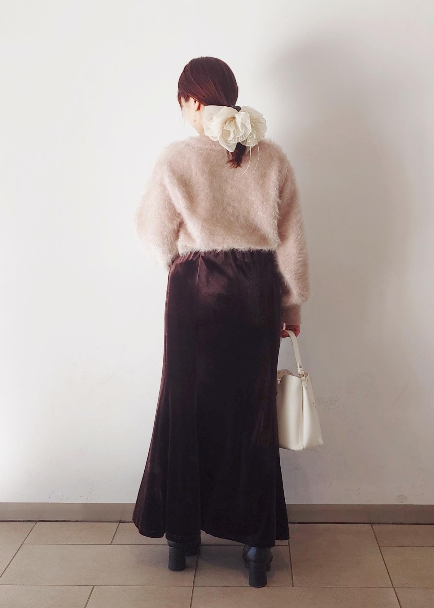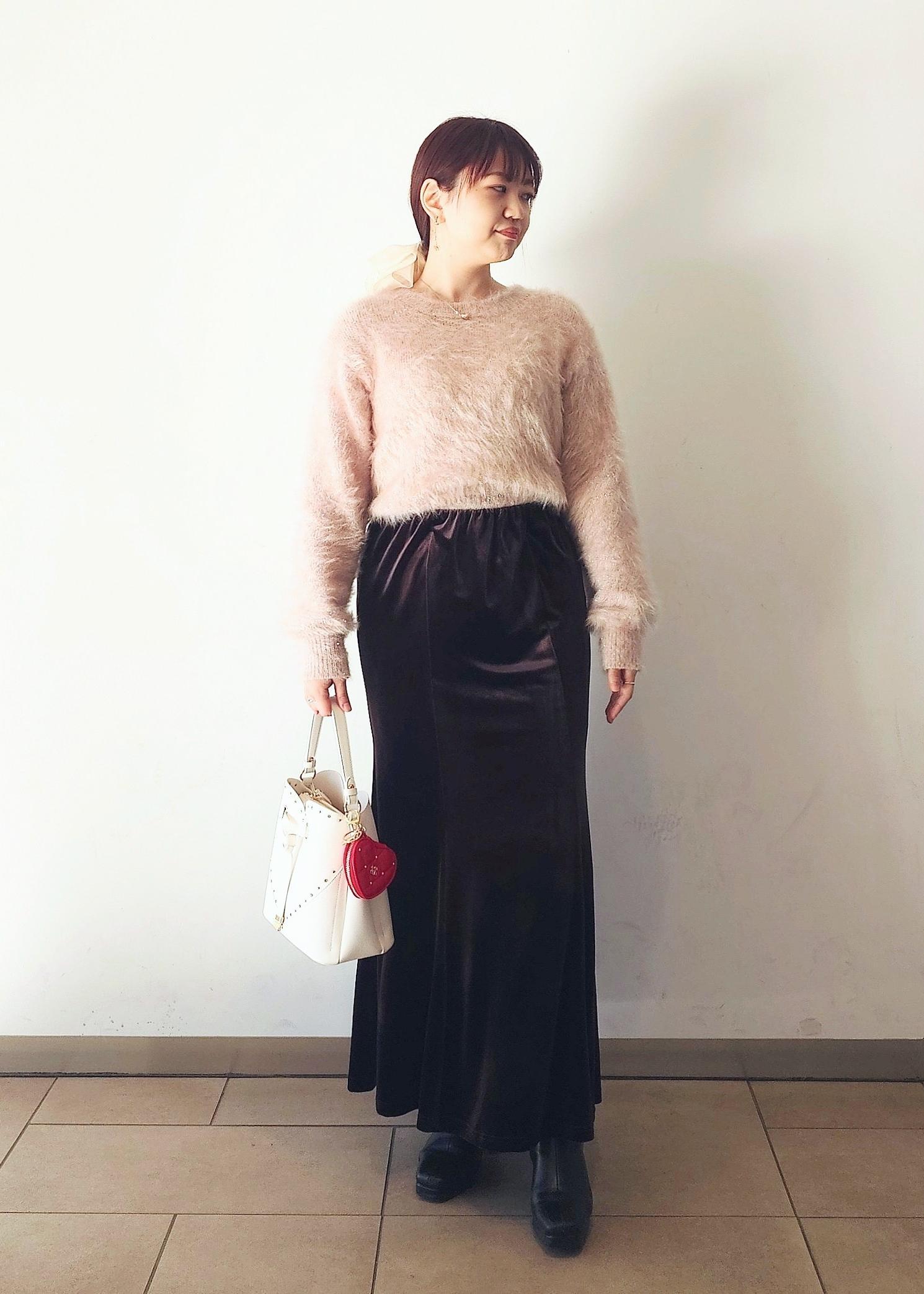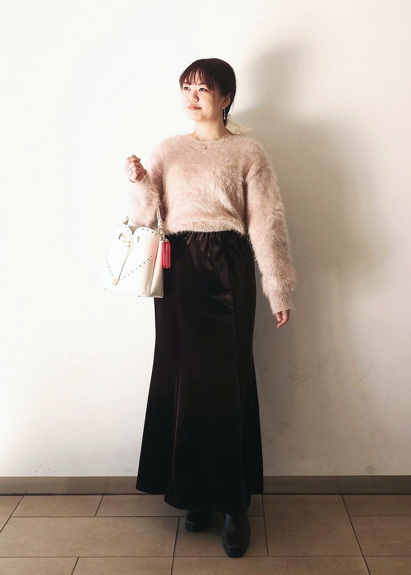 とってもお気に入りのベロアスカートを使ったリアルバイコーデ。