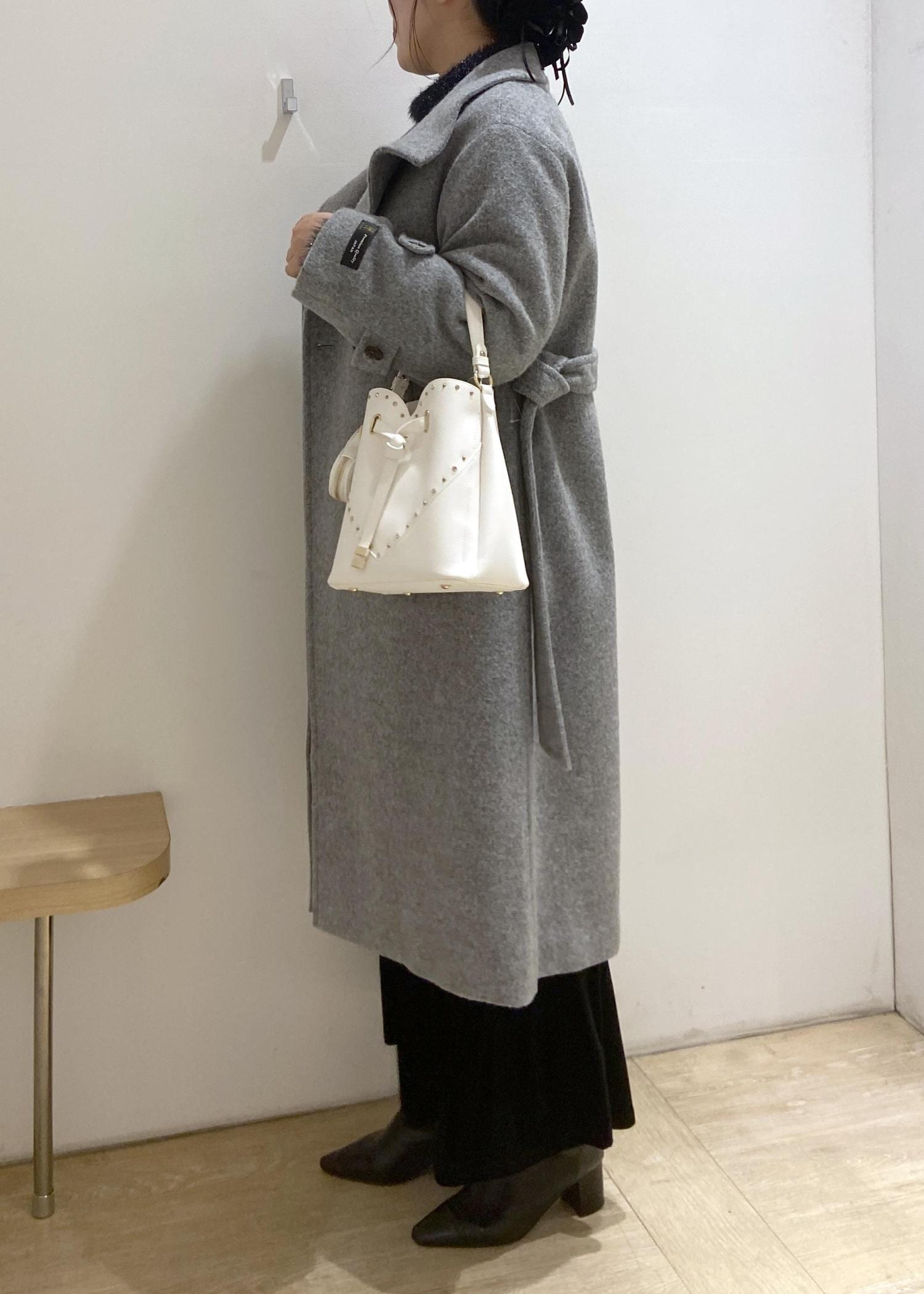 VIS尾州シャギースタンドカラーロングコート/静電気防止・WEB限定PS・TMサイズグレー系 / S¥21,890レビュー168cmでふくらはぎに少しかかる丈感です。