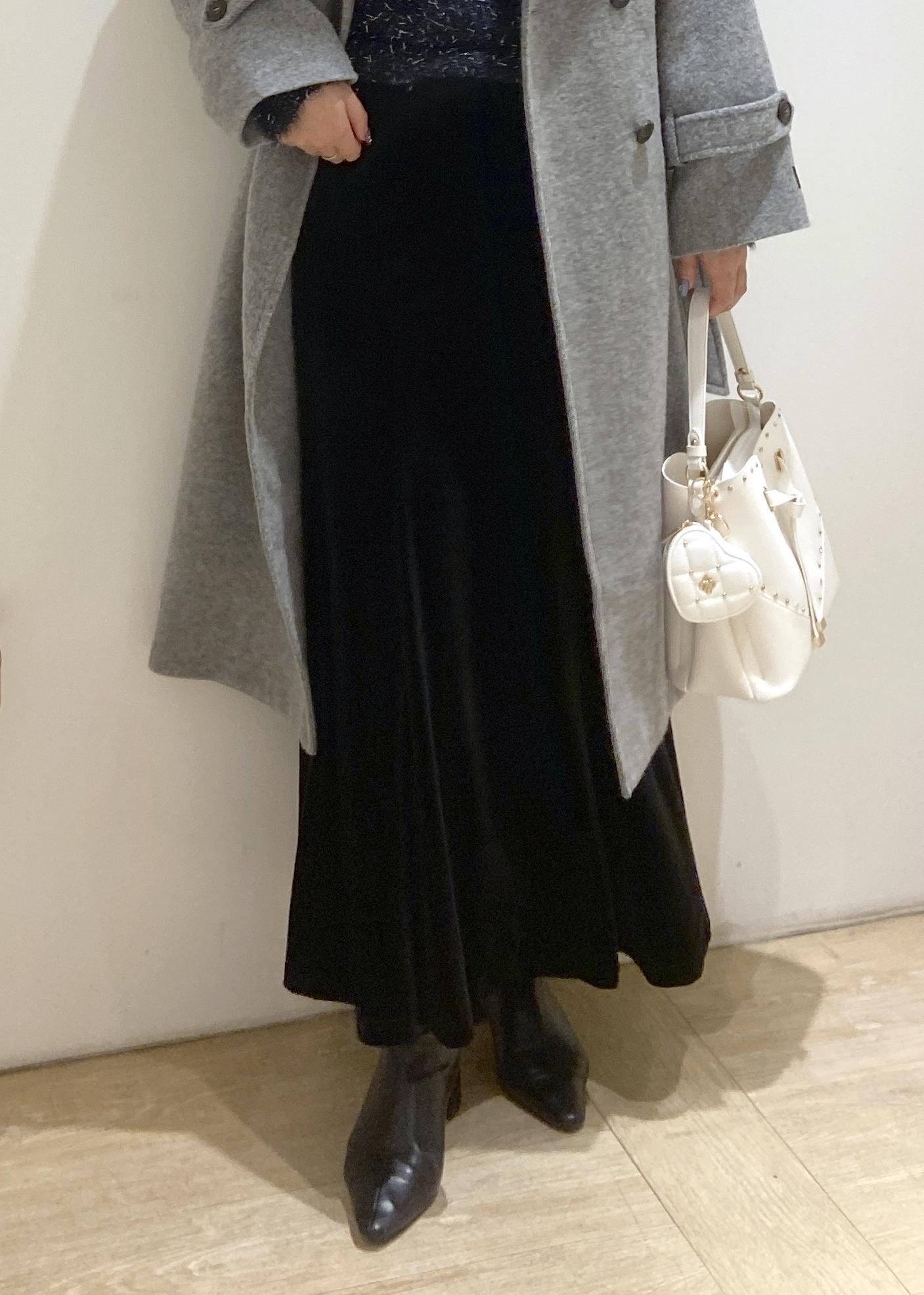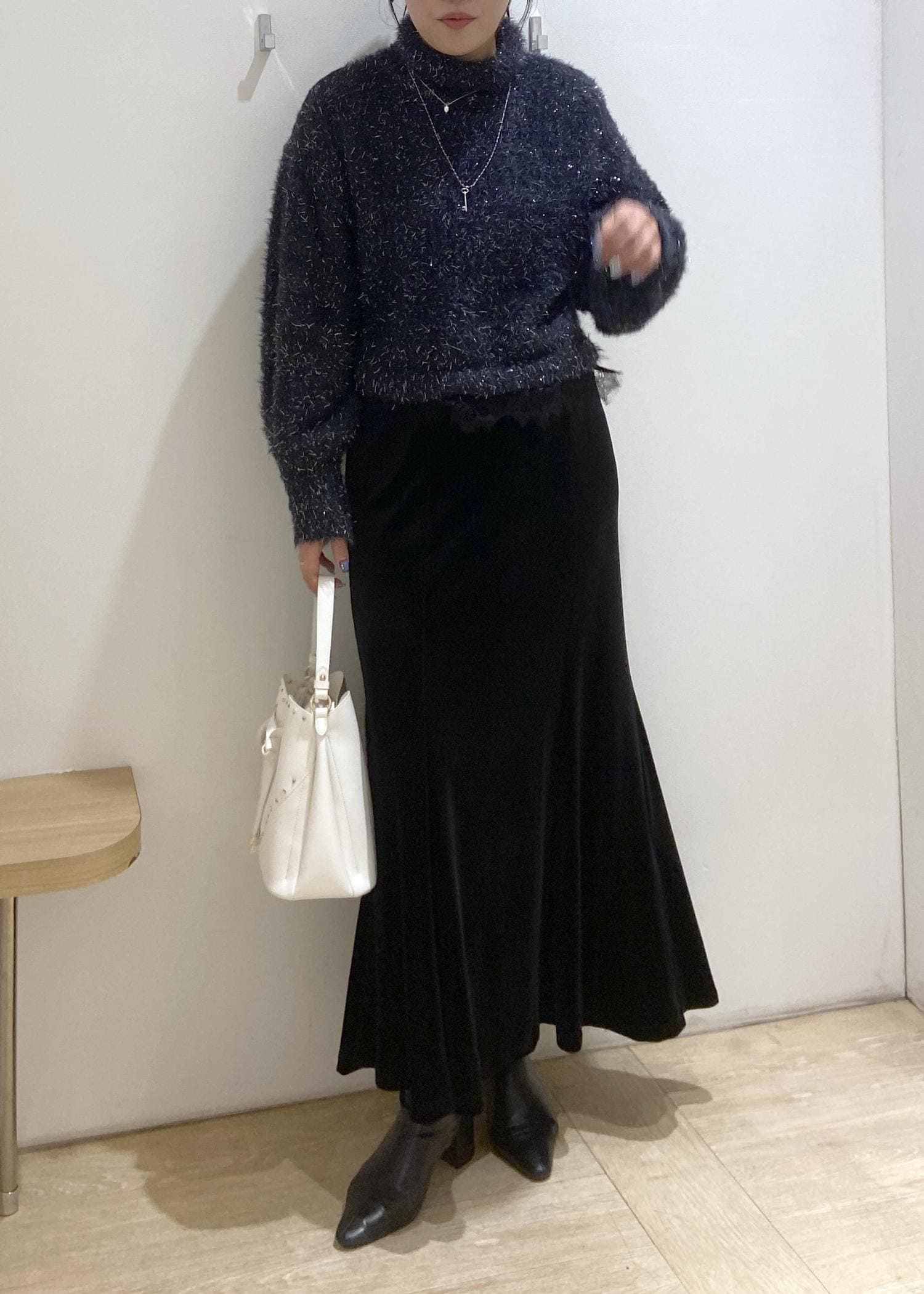 キラッと存在感あるラメニットを使ったスカートスタイルです♪