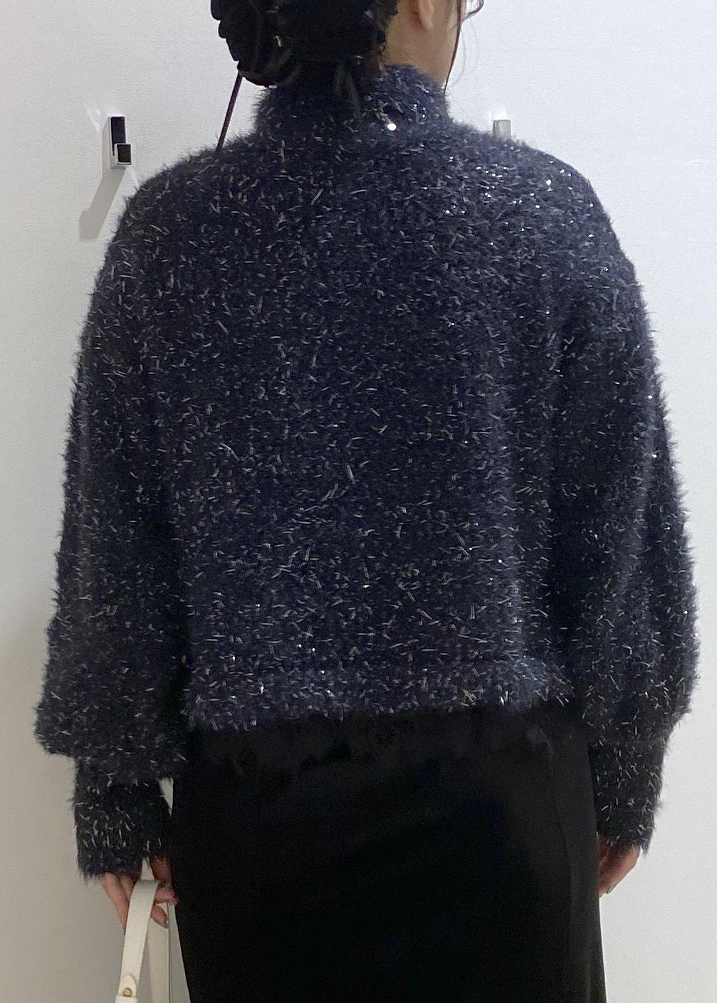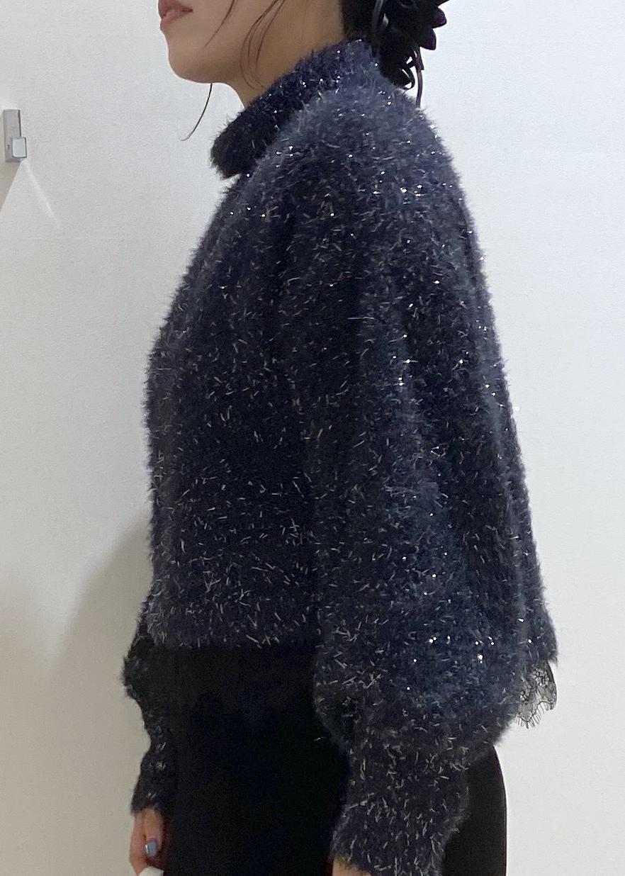 NEW!VISラメフェザー裾レースハイネックニットネイビー / F¥6,589レビューラメ入りですが、チクチクしにくい素材です。