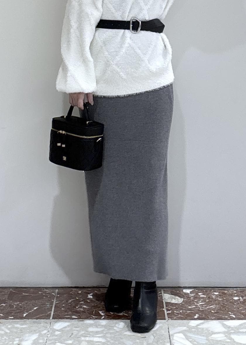 VISリブニットスカート/セットアップ対応チャコール / F¥5,929レビューなめらかな生地感で、太ももまでは裏地が付いてるので履き心地もよくインナーのシルエットを拾わないです◎