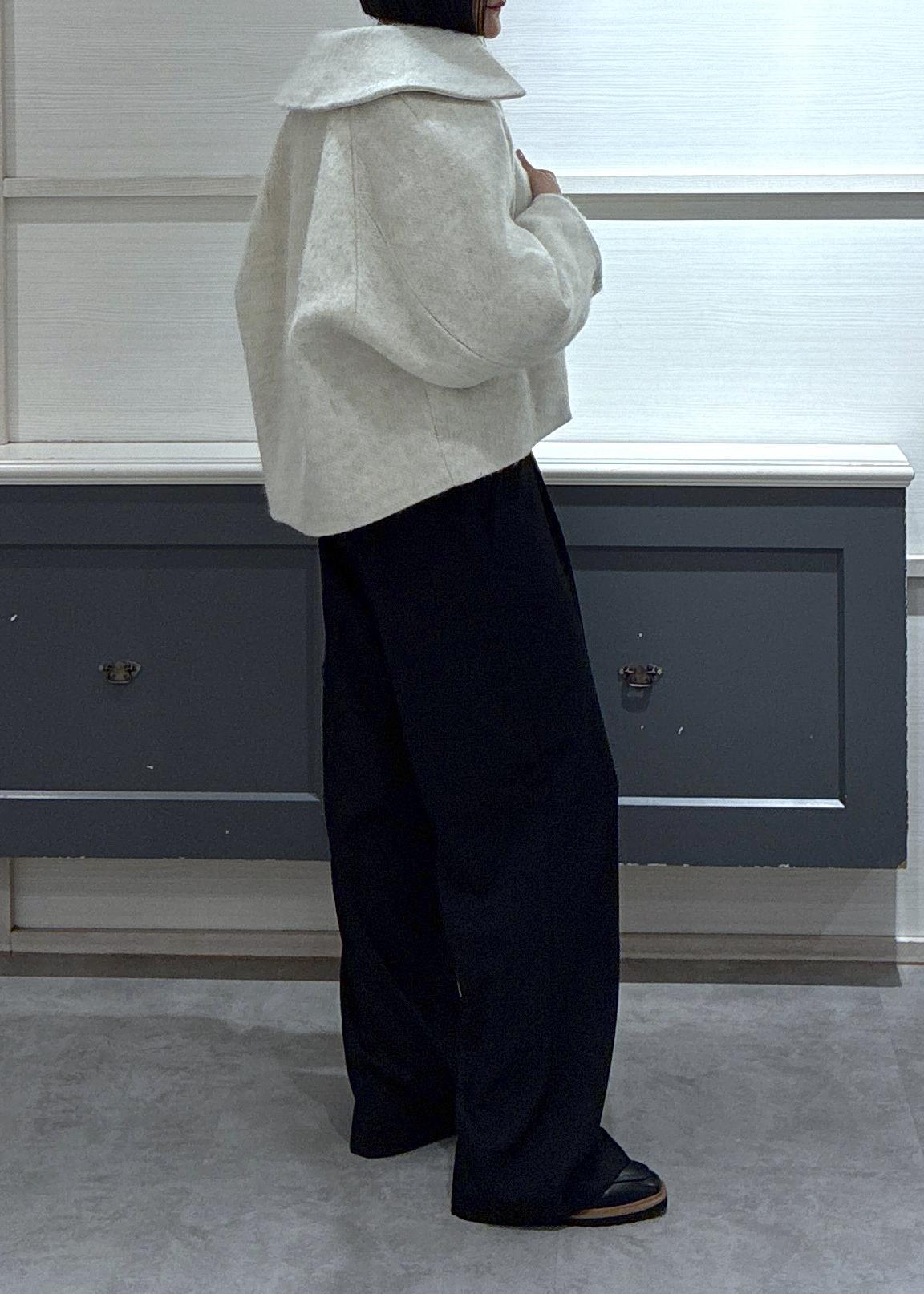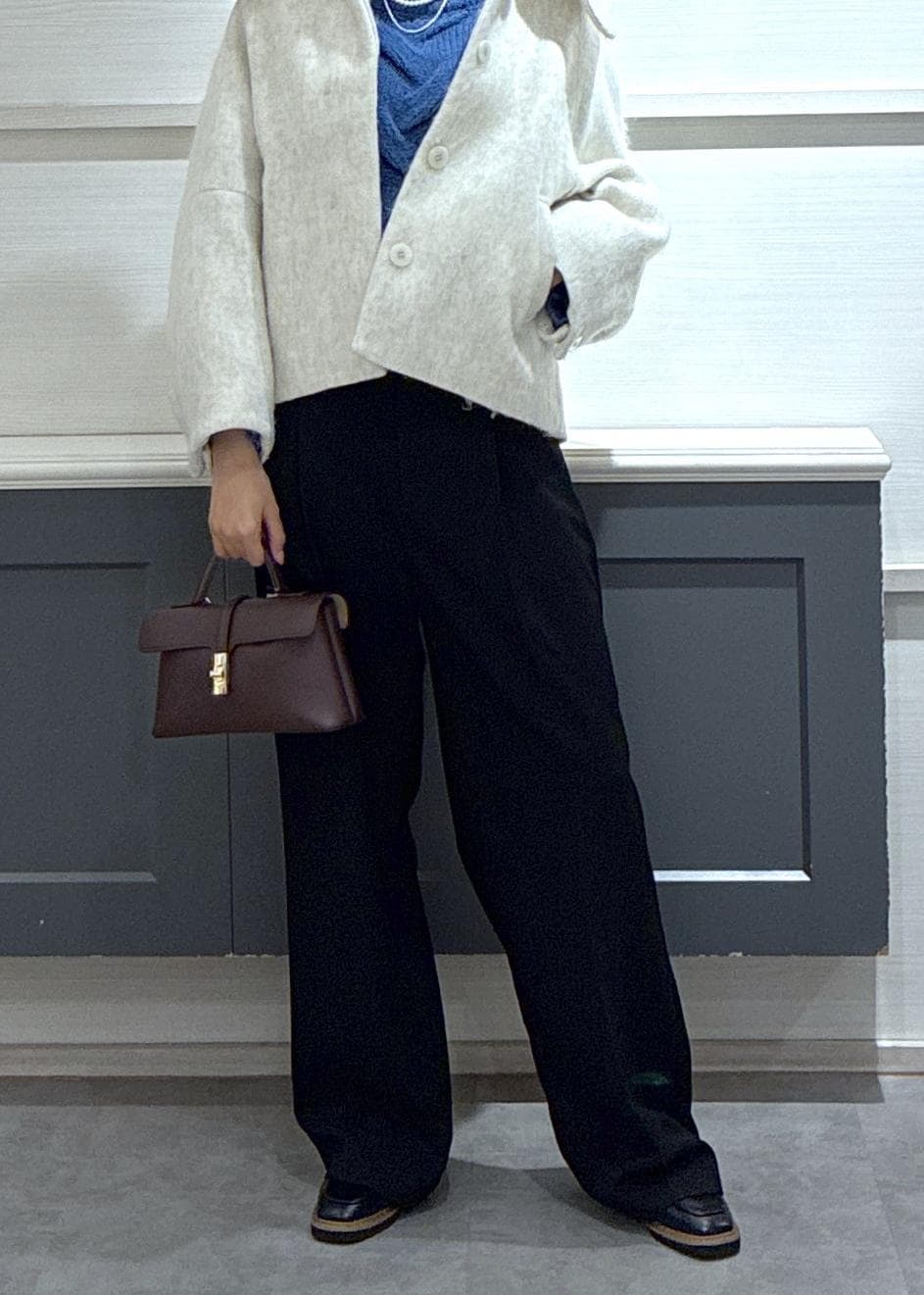 カジュアルなブルーのニットをワイドパンツと合わせて大人カジュアルなスタイリングにしました!