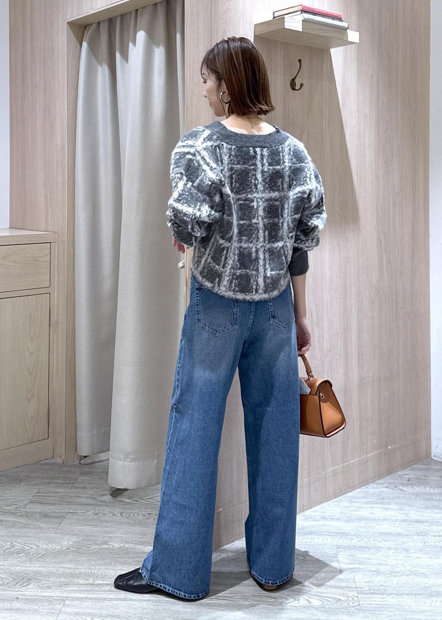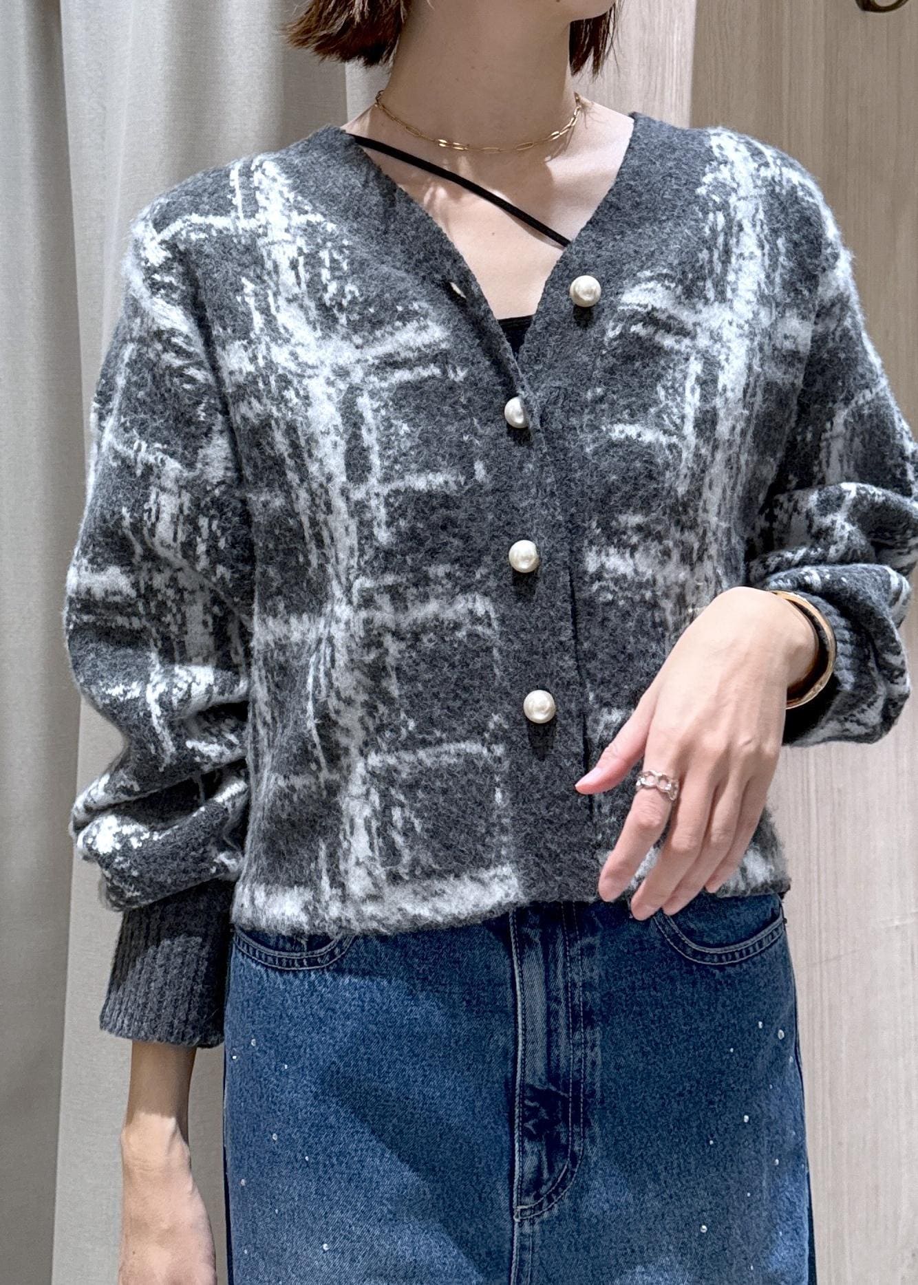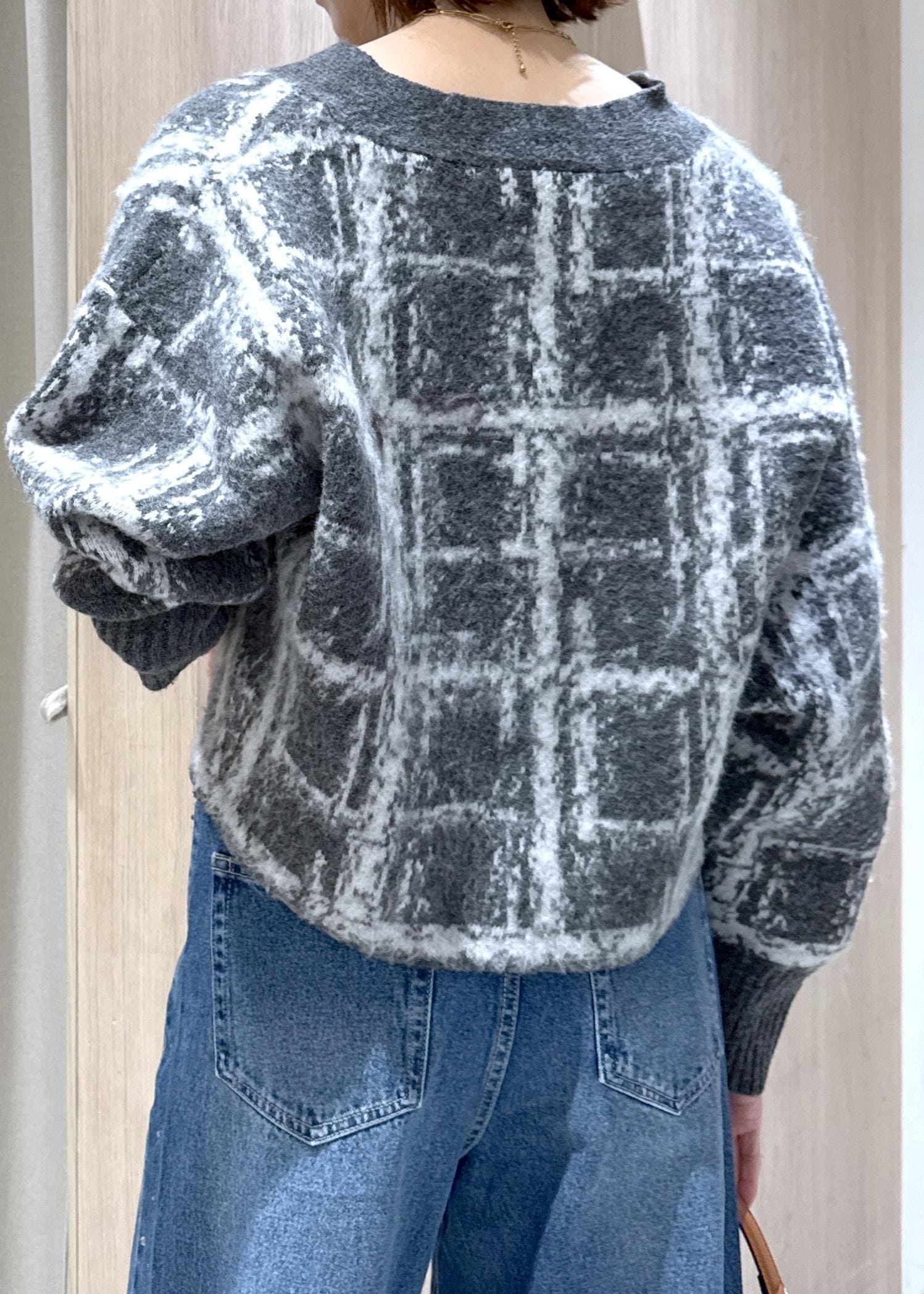 VISチェックアソートシャギーニットカーディガン/セットアップ対応グレー / F¥6,589レビュー身長166センチで腰下のコンパクトな丈感でした。