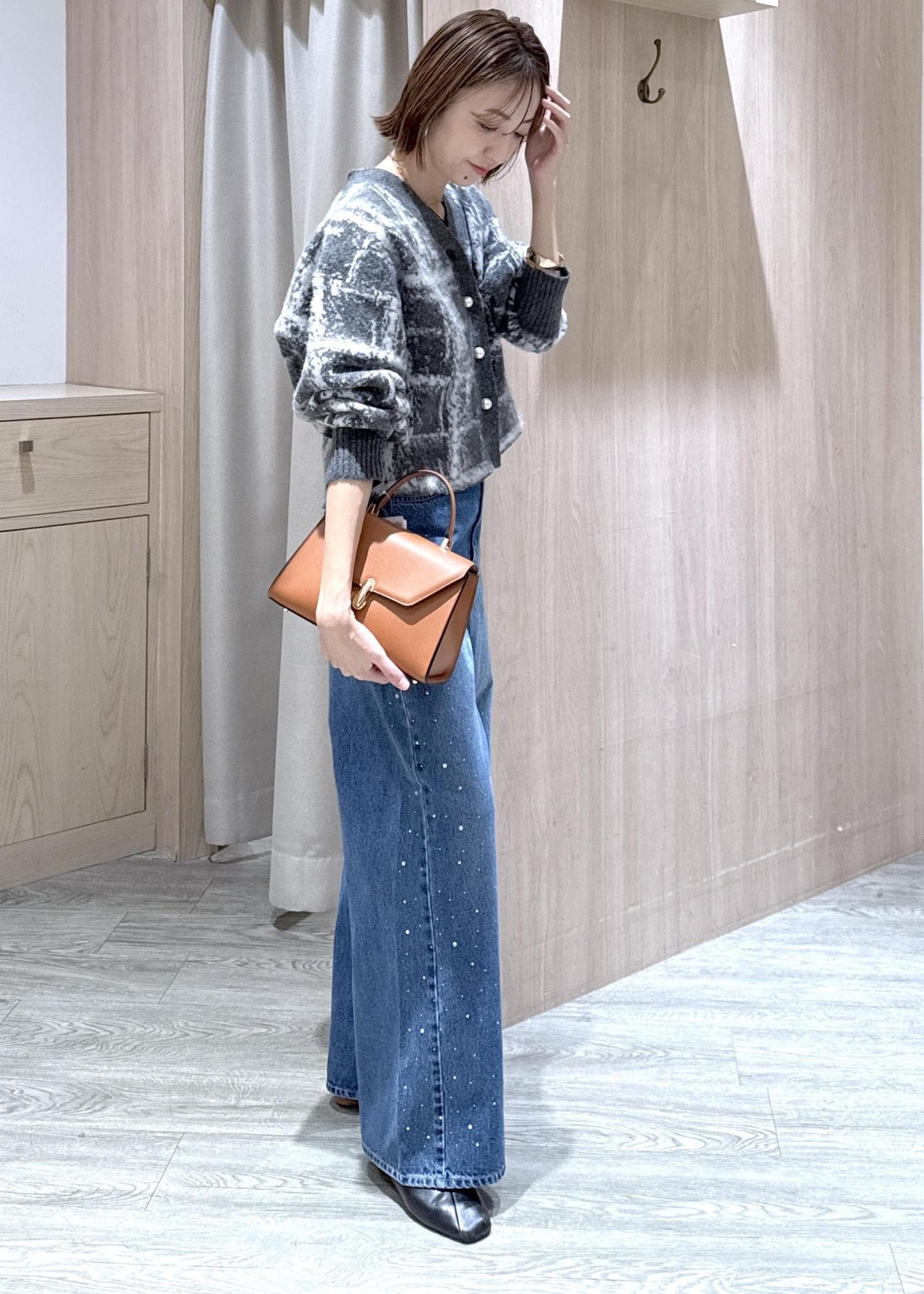 カーディガンにラフなデニムを合わせて大人の余裕あるシンプルコーデにしました♪