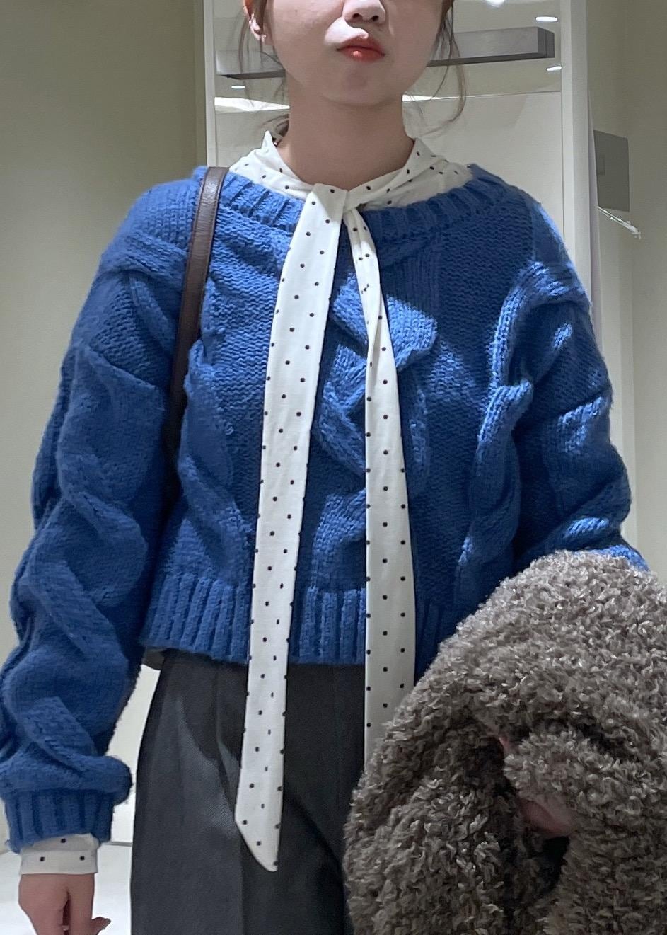 VISケーブルコンパクトニットブルー / F¥5,929レビュー太いケーブル編みが可愛いニットトップスです。