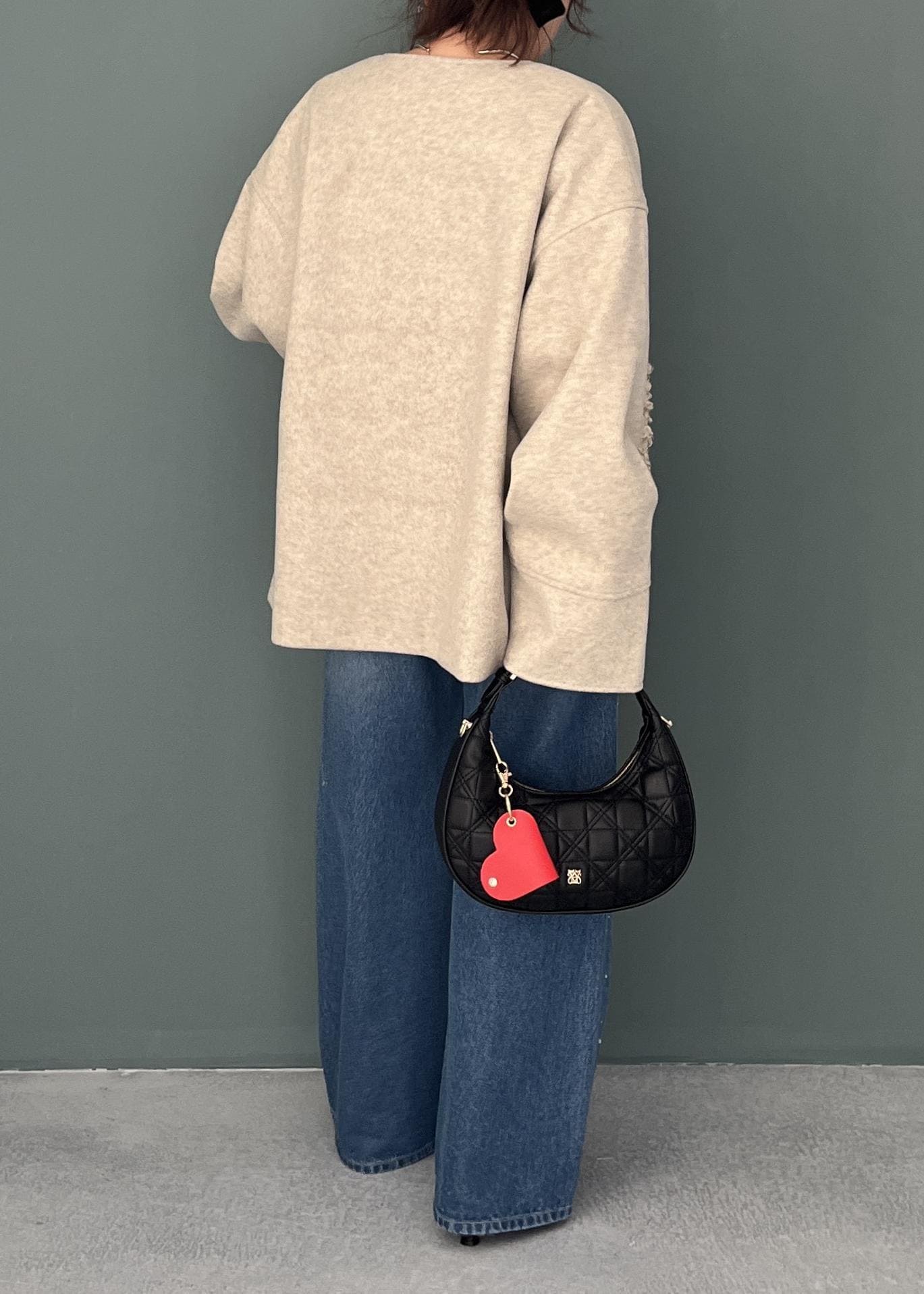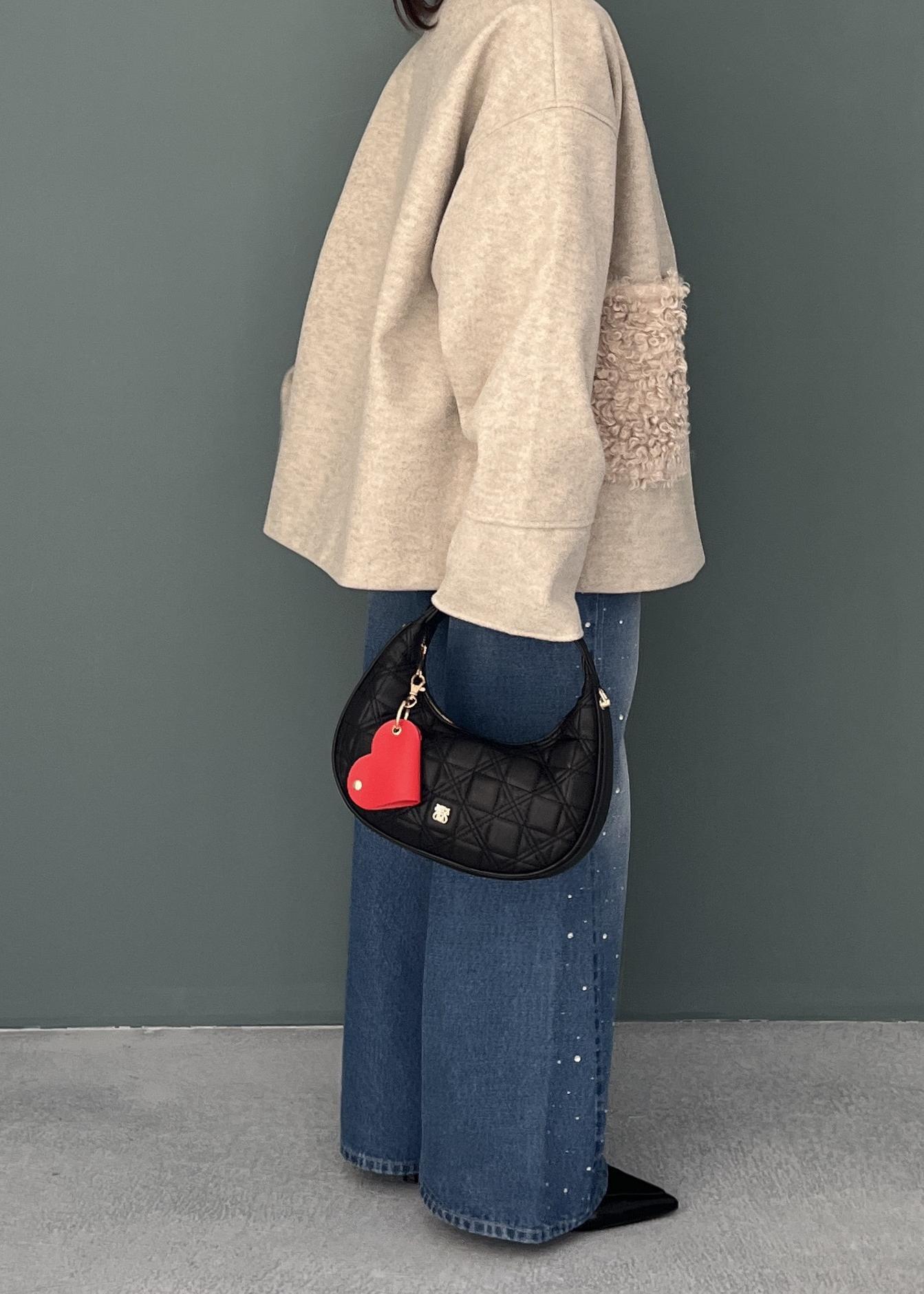 NEW! 予約VISハートチャーム付き2WAYキルトバッグブラック / F¥6,919レビューコロンとしたシルエットが可愛いキルティングバッグ。チャームもポイントになります。500mlのペットボトルや長財布も入れられます。柔らかい素材感で、とっても軽く、ショルダーもついているので荷物が増えても安心です。