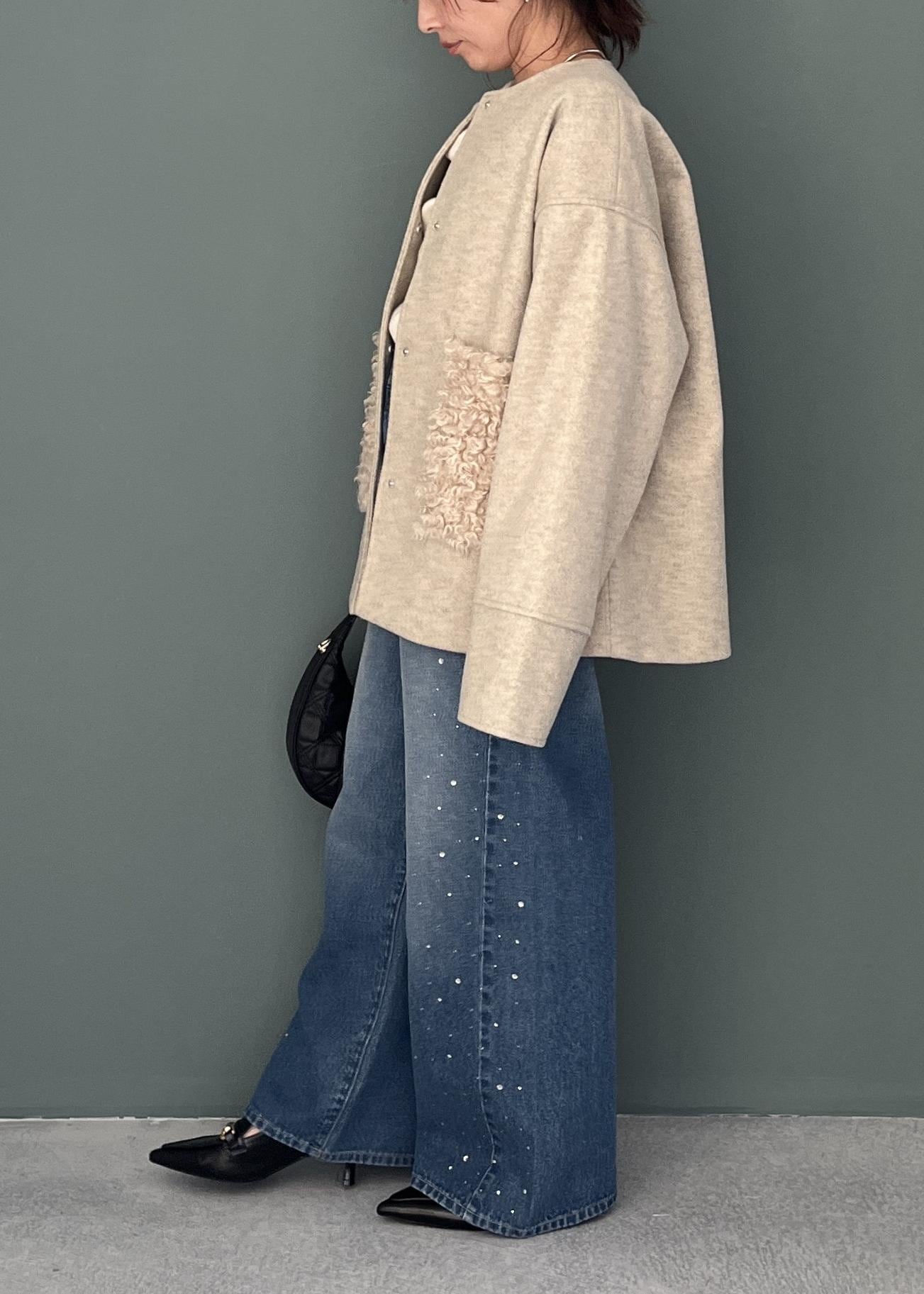 厚すぎない素材感で軽く羽織れるので春先までお召しいただけるアウターです。 -