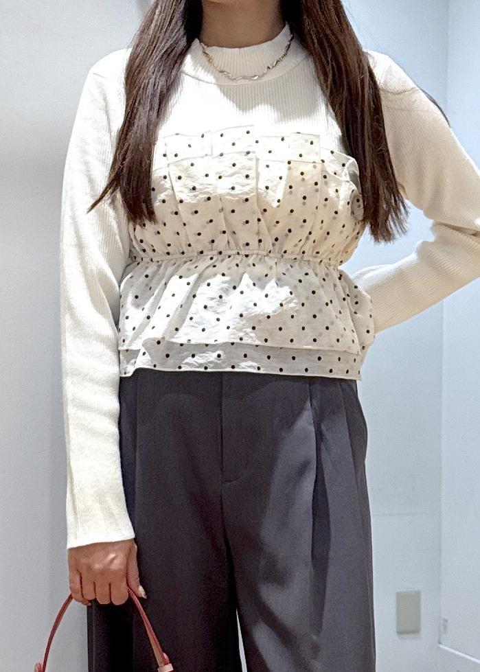 ビスチェがふんわり広がるシルエットがきれいなドッキングニットです。