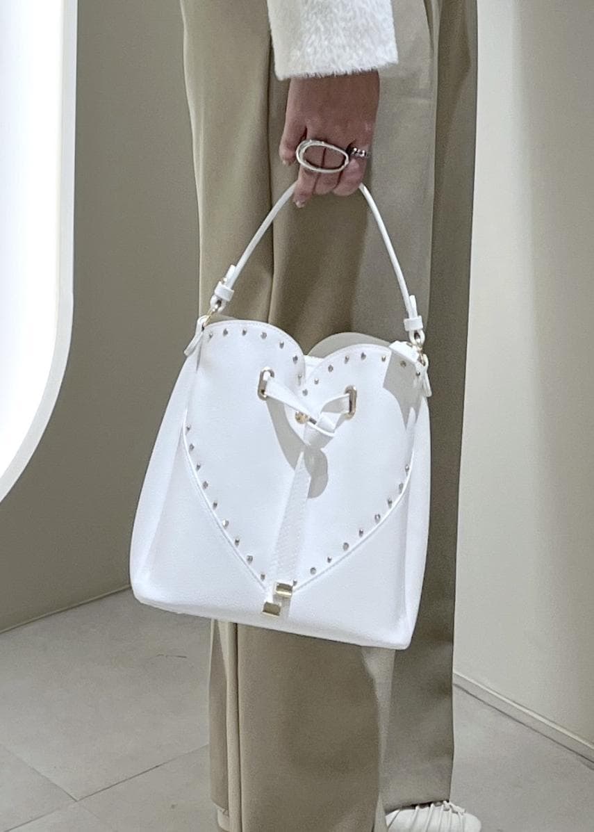 NEW!VISラインストーン&スタッズハートカットバッグオフホワイト / F¥7,909レビュー人気のハートカットバッグから華やかなキラキラバージョンが登場!