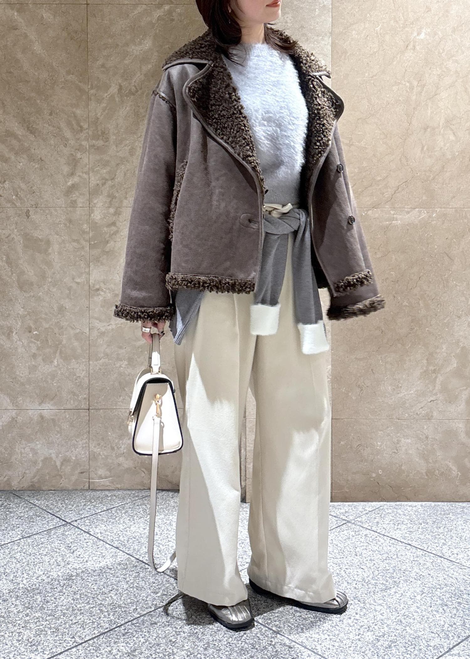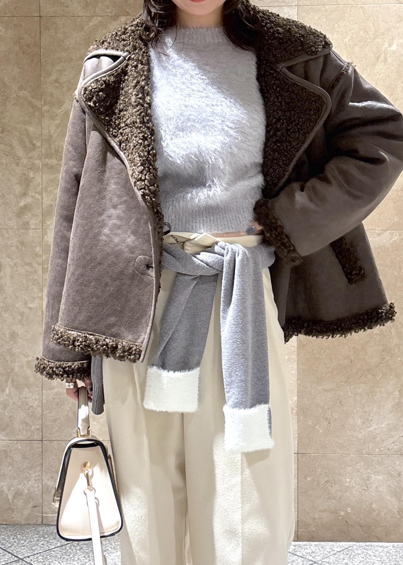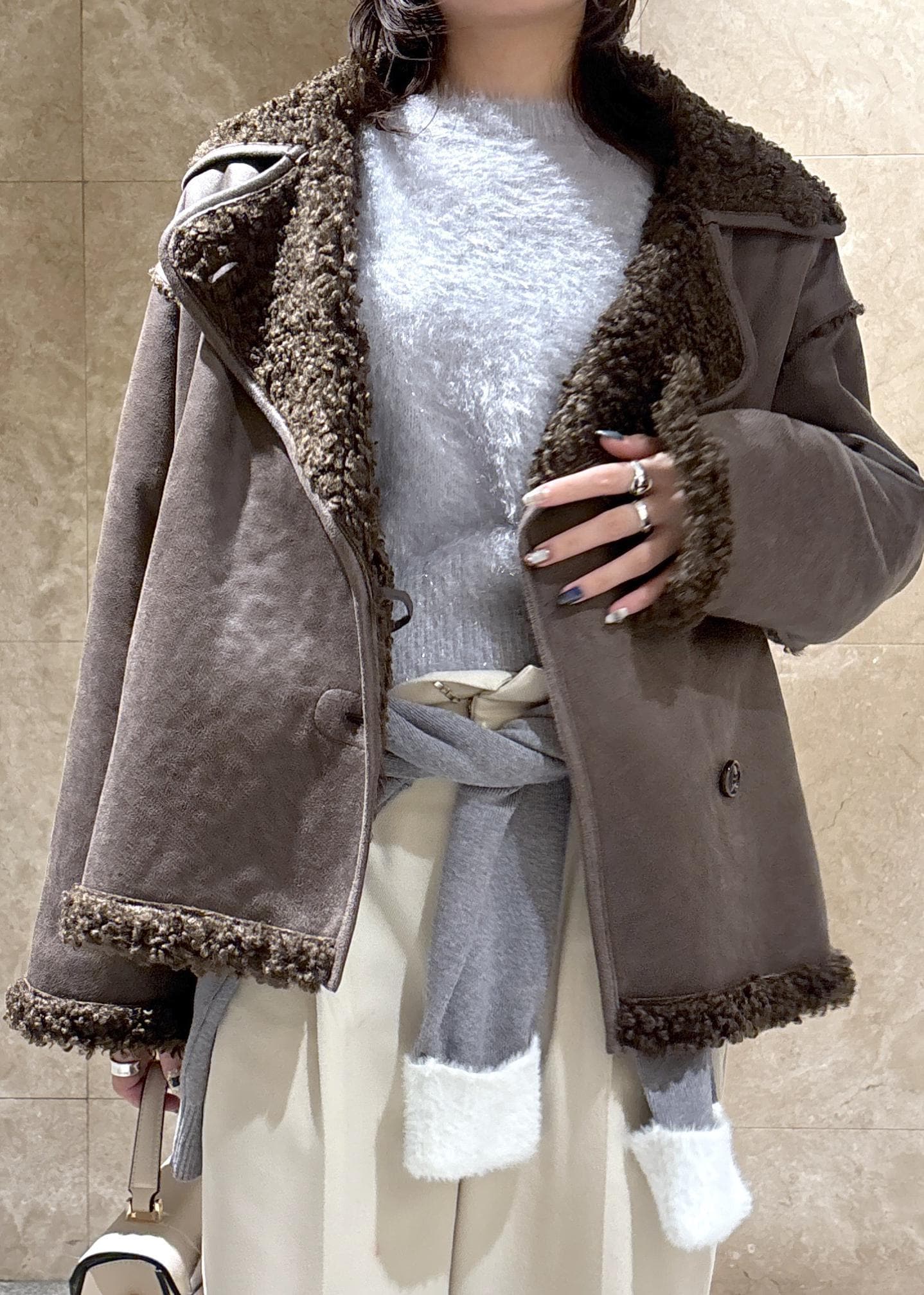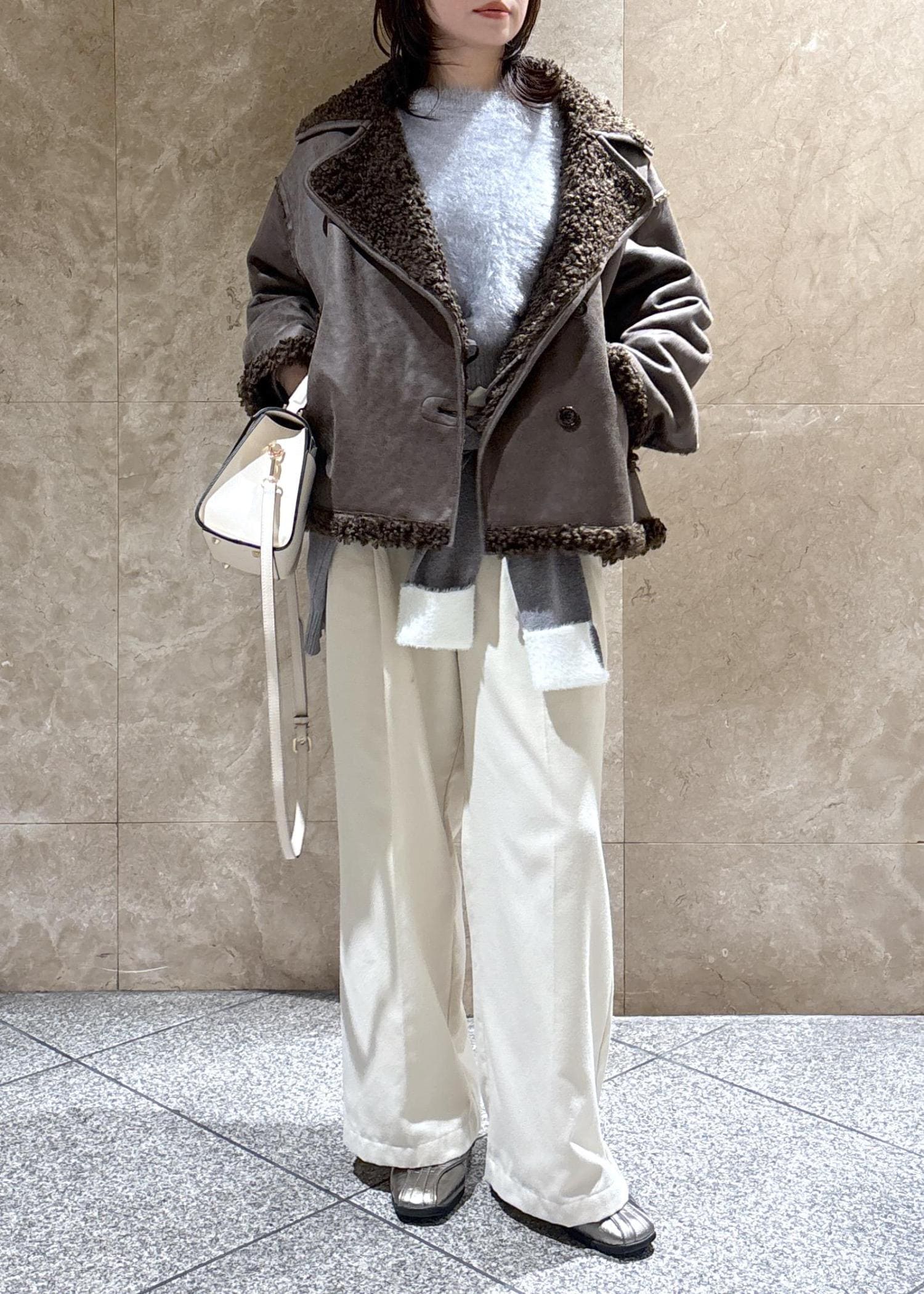 袖口と襟部分が短めのシャギー素材でアクセントになってかわいいです。 -