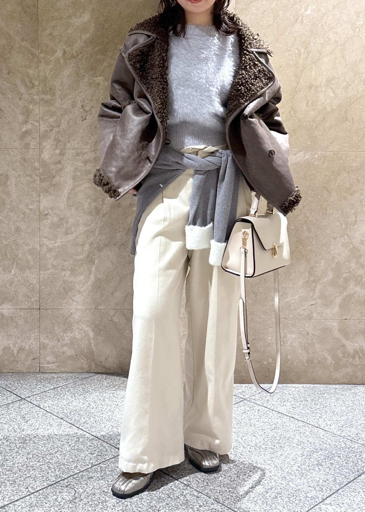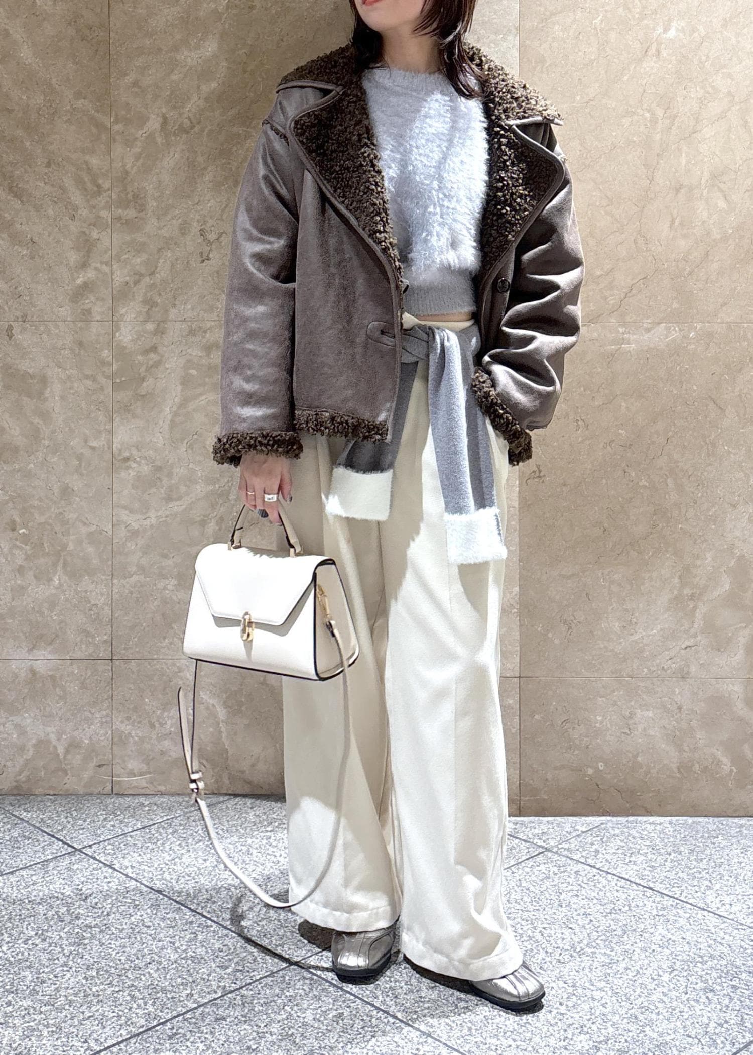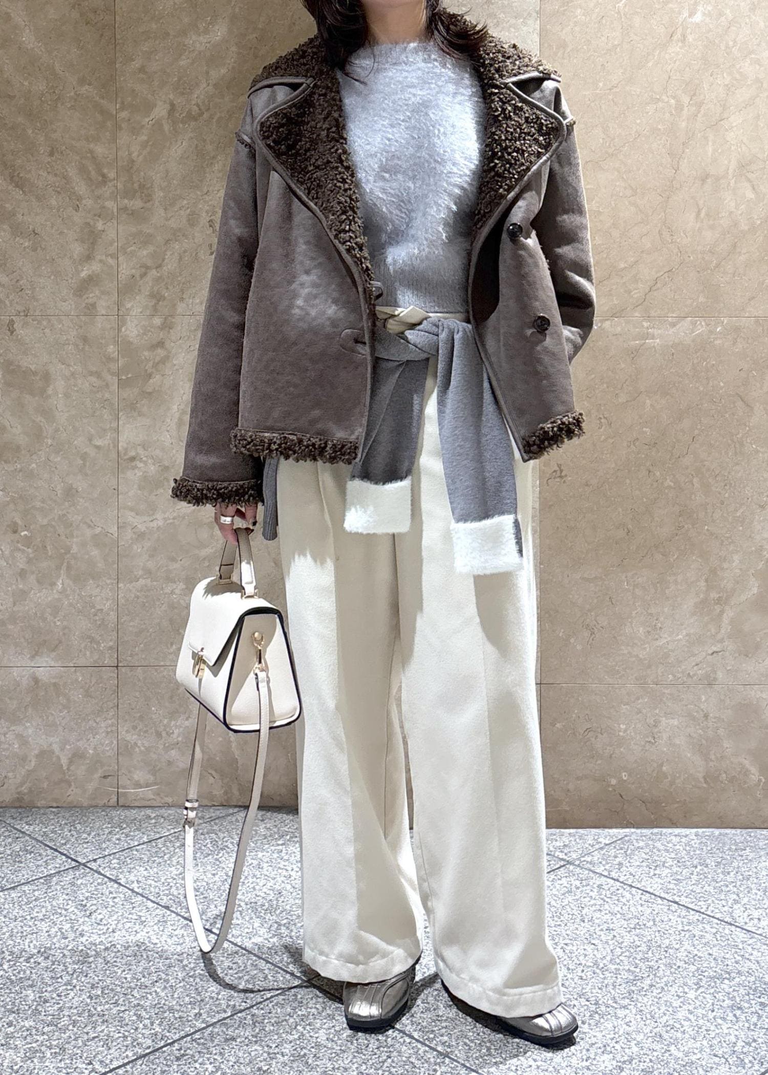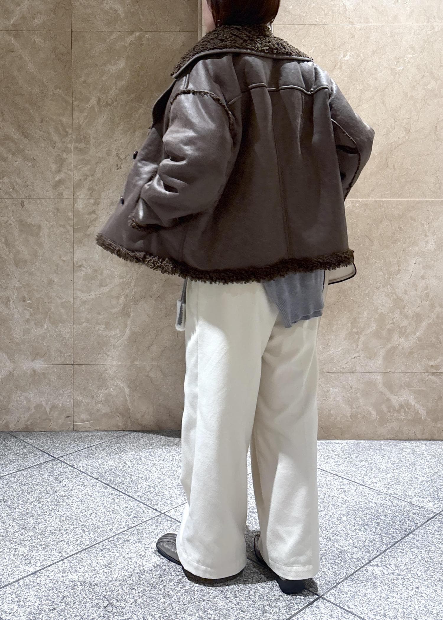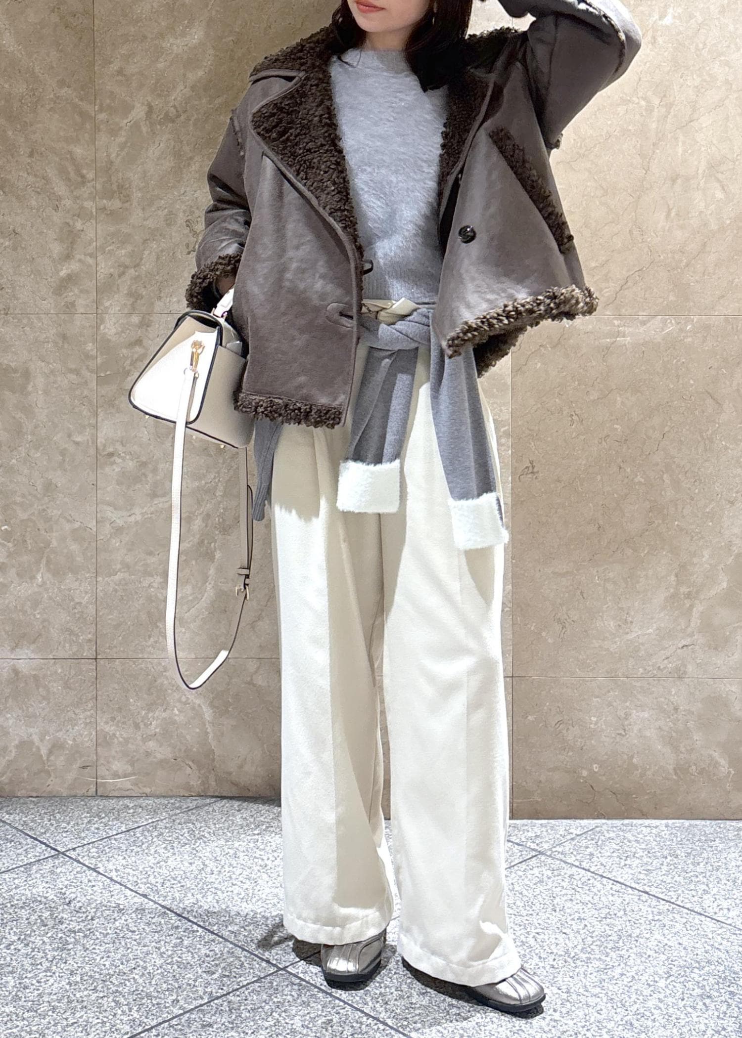 袖口と襟部分が短めのシャギー素材でアクセントになってかわいいです。 -