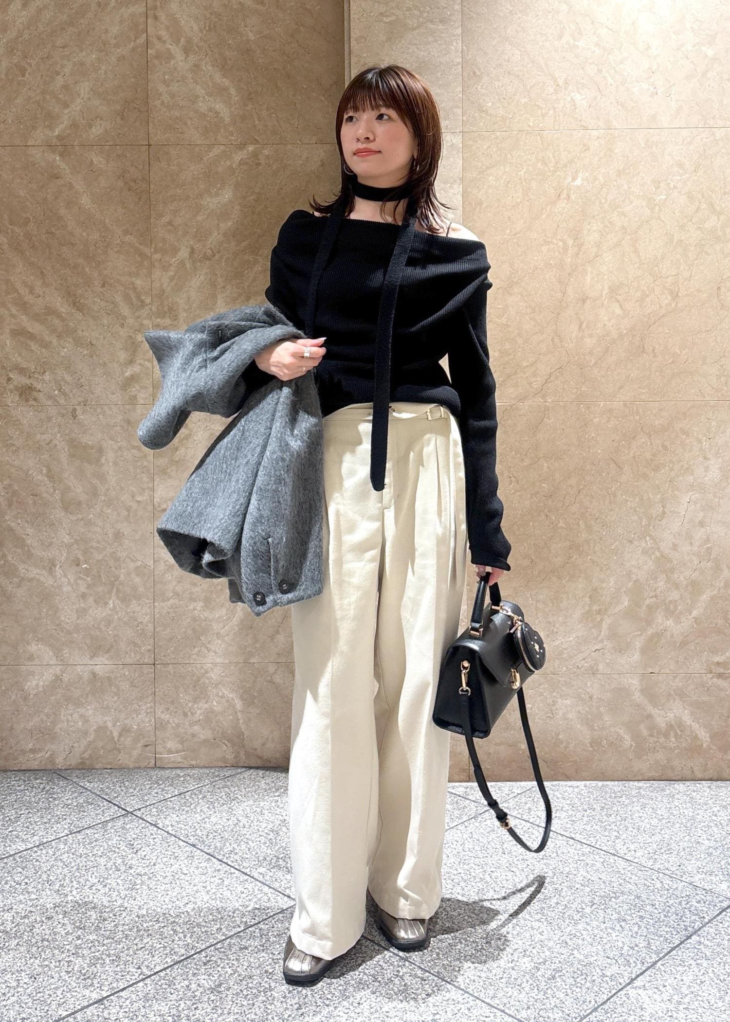 伸縮性も良いので、オフショルにもしやすいです。 -