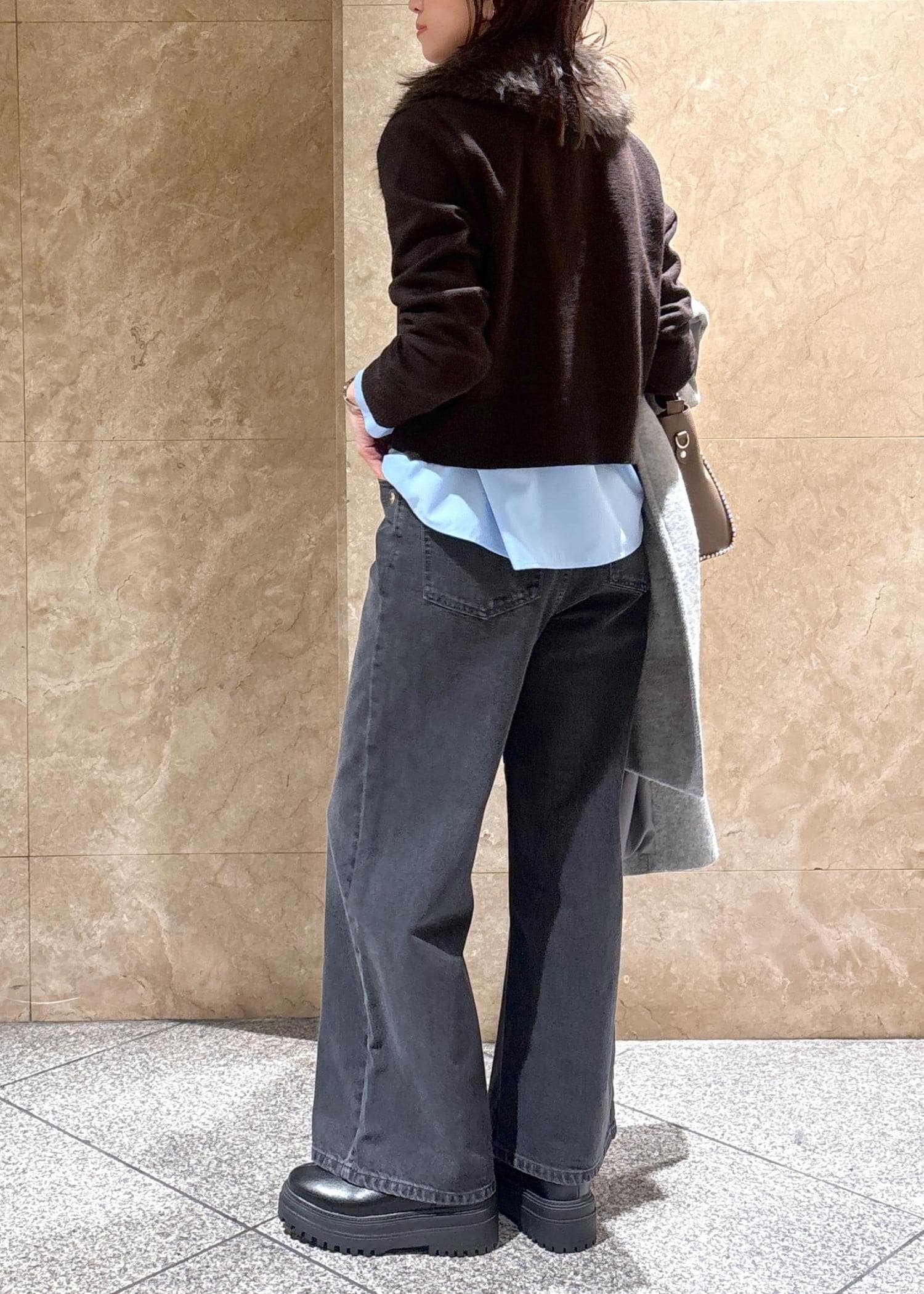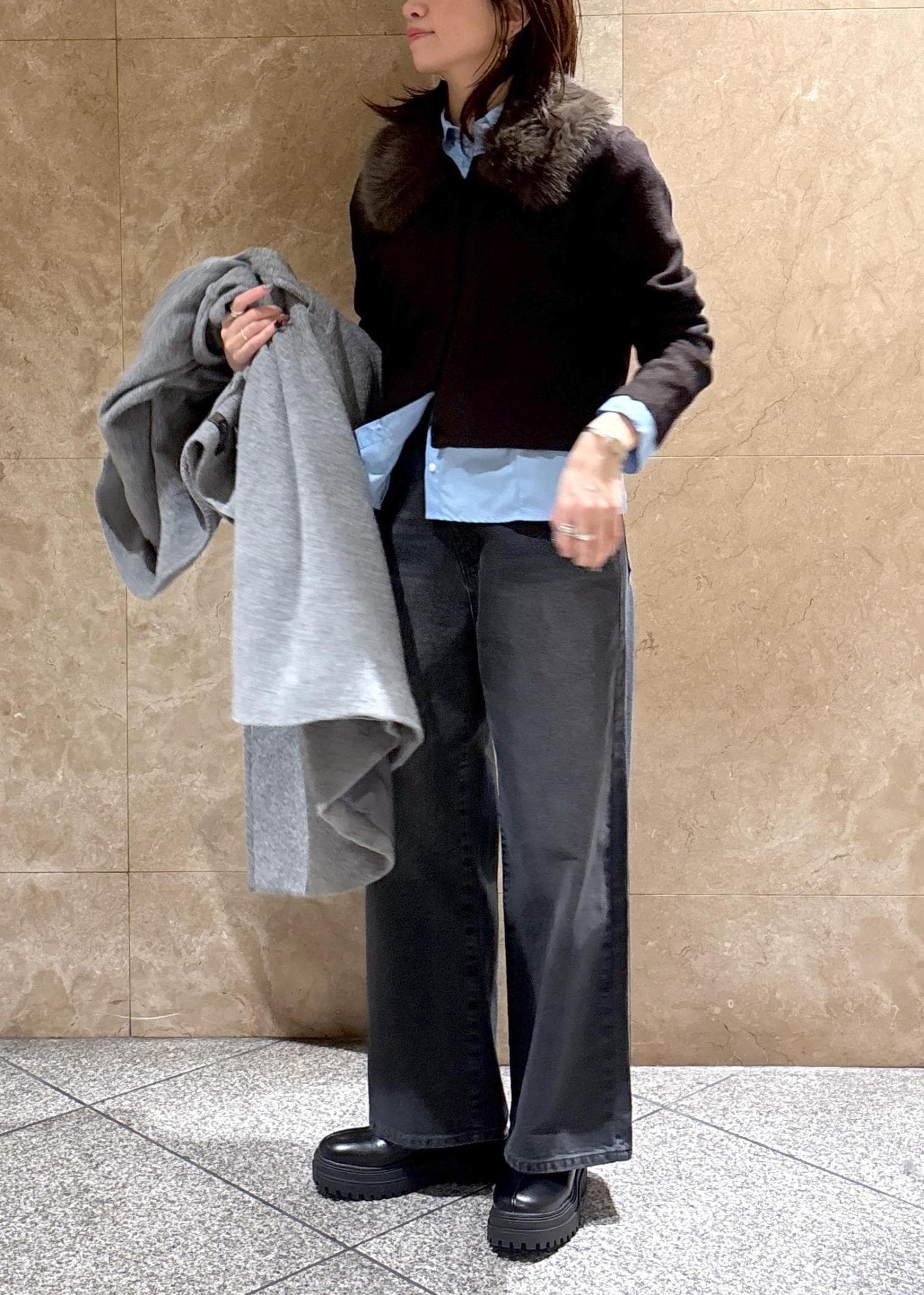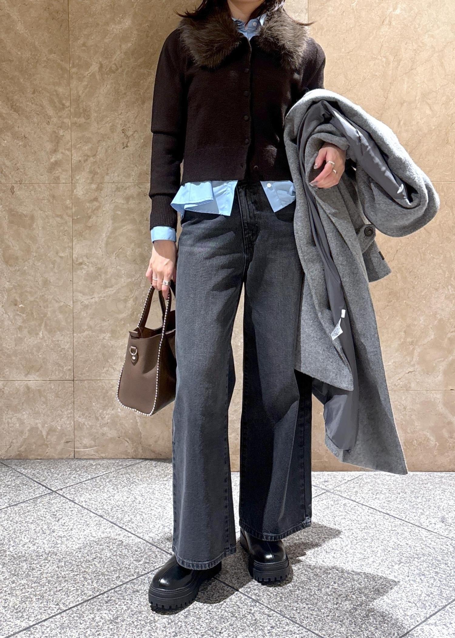 VIS衿ファー取り外しカーディガンダークブラウン / F¥6,589レビュー程よくスッキリ見えるサイズ感で、ニットの厚みも厚すぎずちょうど良いです。